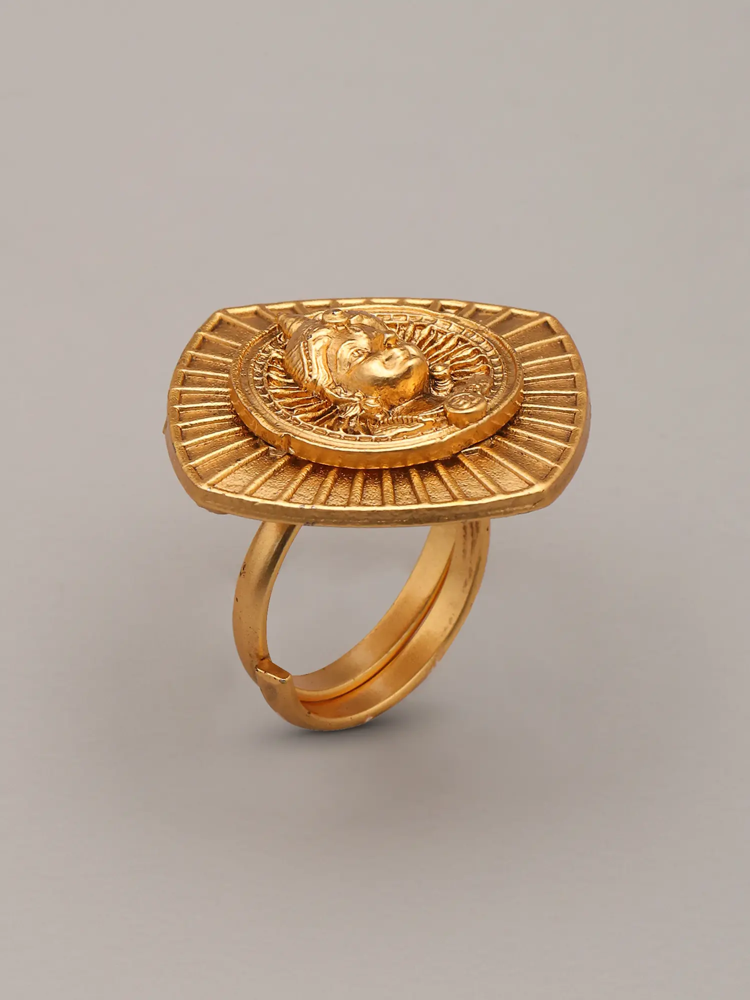 Adjustable Stone Studded Ram Darbar Round Shape Ring