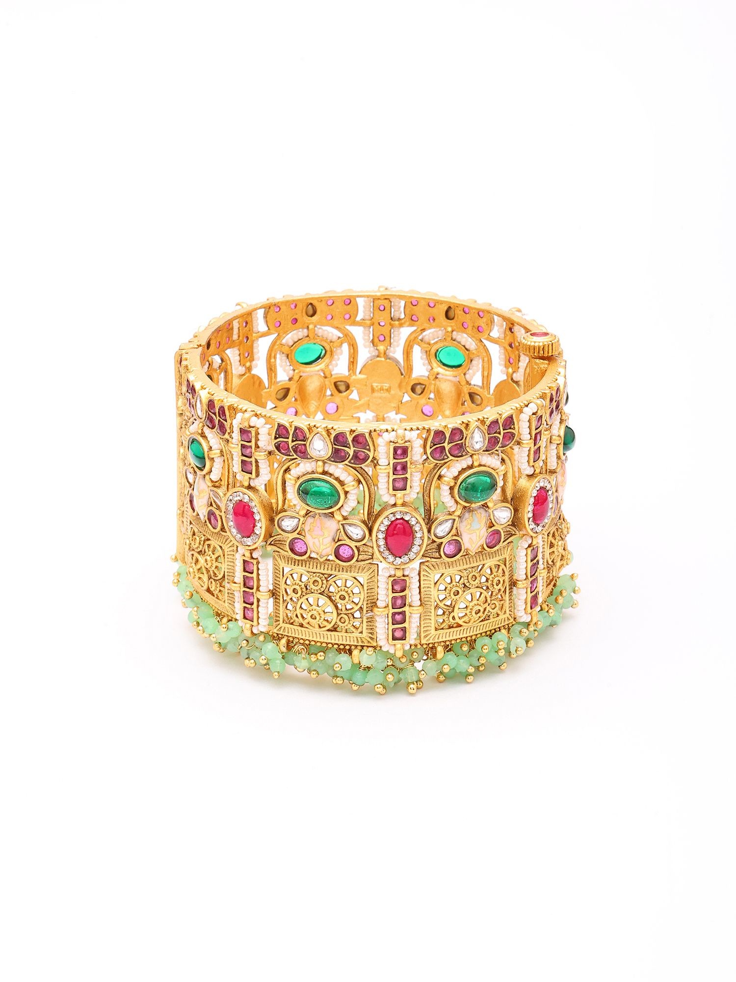 Openable Kundan Bangles with Multi-Color Stones - Temple Design