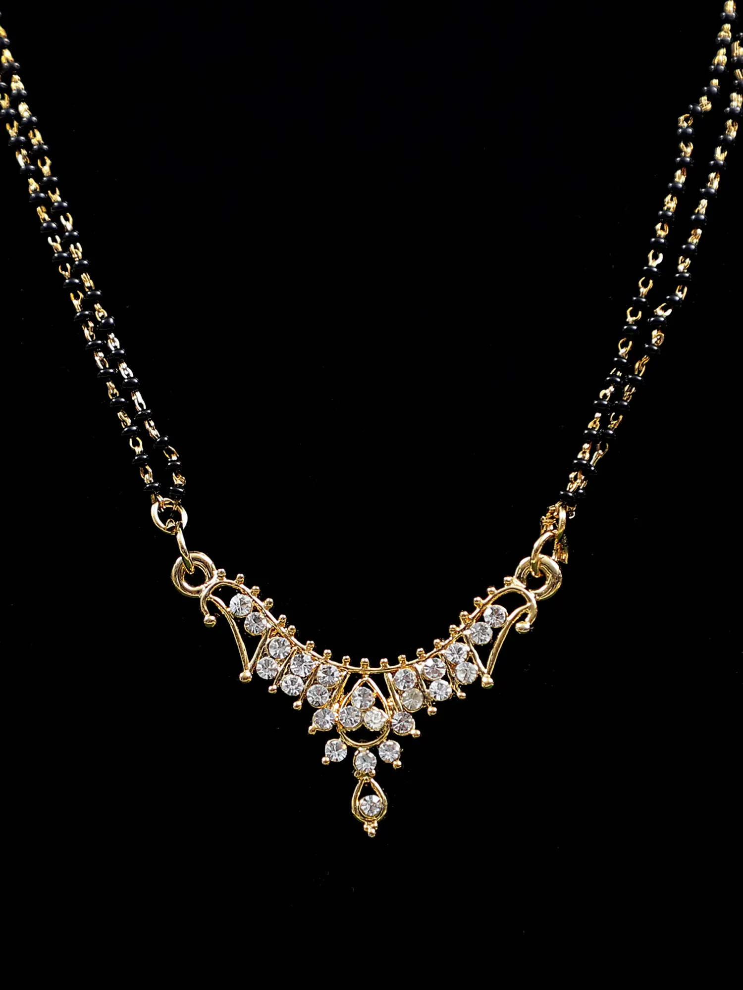 The Mangalsutra holds profound significance in Indian culture, symbolizing the marital bond and the sacred union between husband and wife. Traditionally worn by married women, it consists of a chain typically made of black beads or gold, often embellished with intricate designs, and a pendant, usually featuring symbols such as the sun, moon, or religious motifs.
