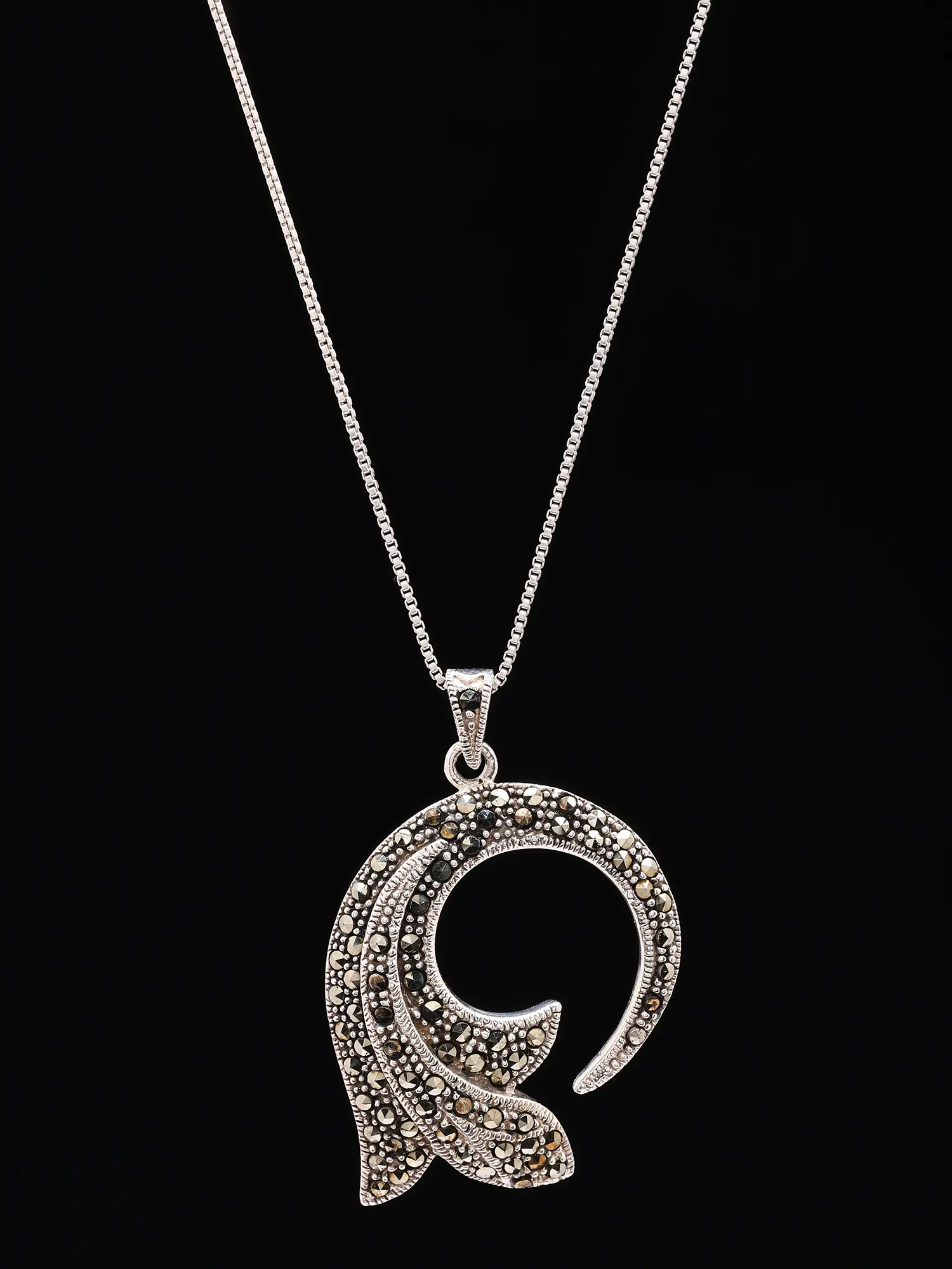 This exquisite silver pendant captures the essence of movement and light, designed to draw admiring glances and add a touch of timeless elegance to any ensemble. Its unique design, reminiscent of a celestial arc or a graceful swirl, offers a captivating focal point that speaks to sophisticated taste.