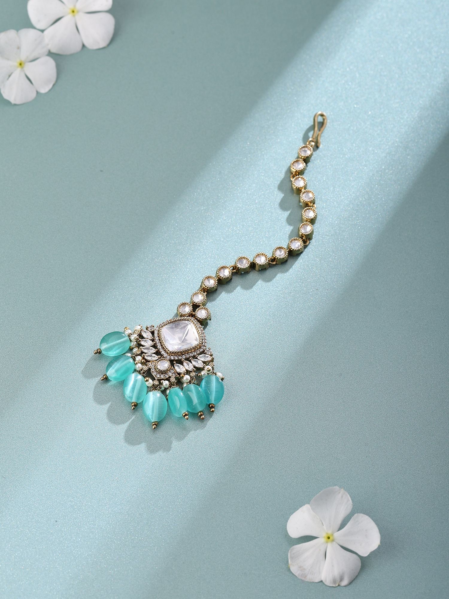 Teardrop Dangling Maang Tikka with Meenakari Stone Studs