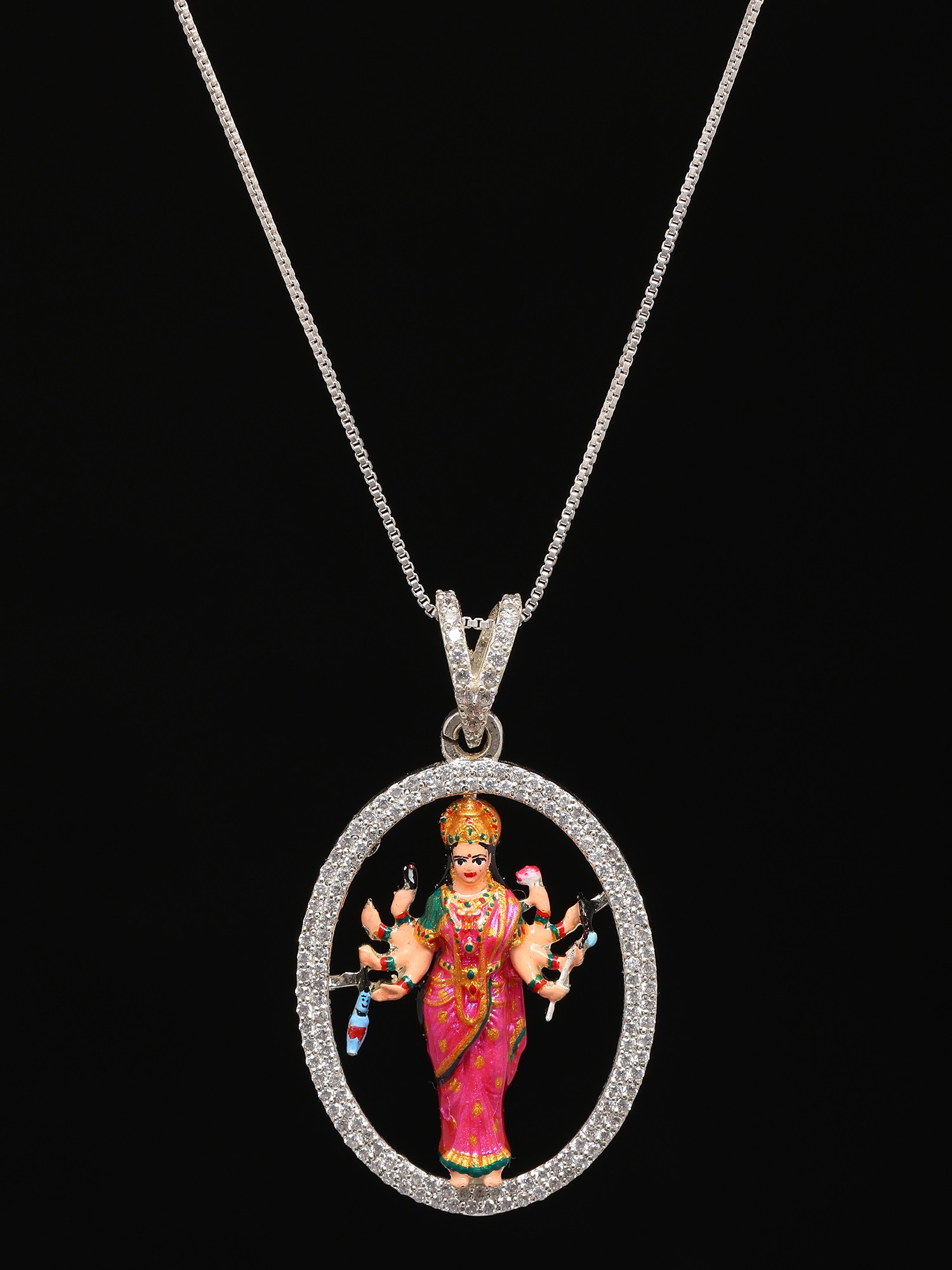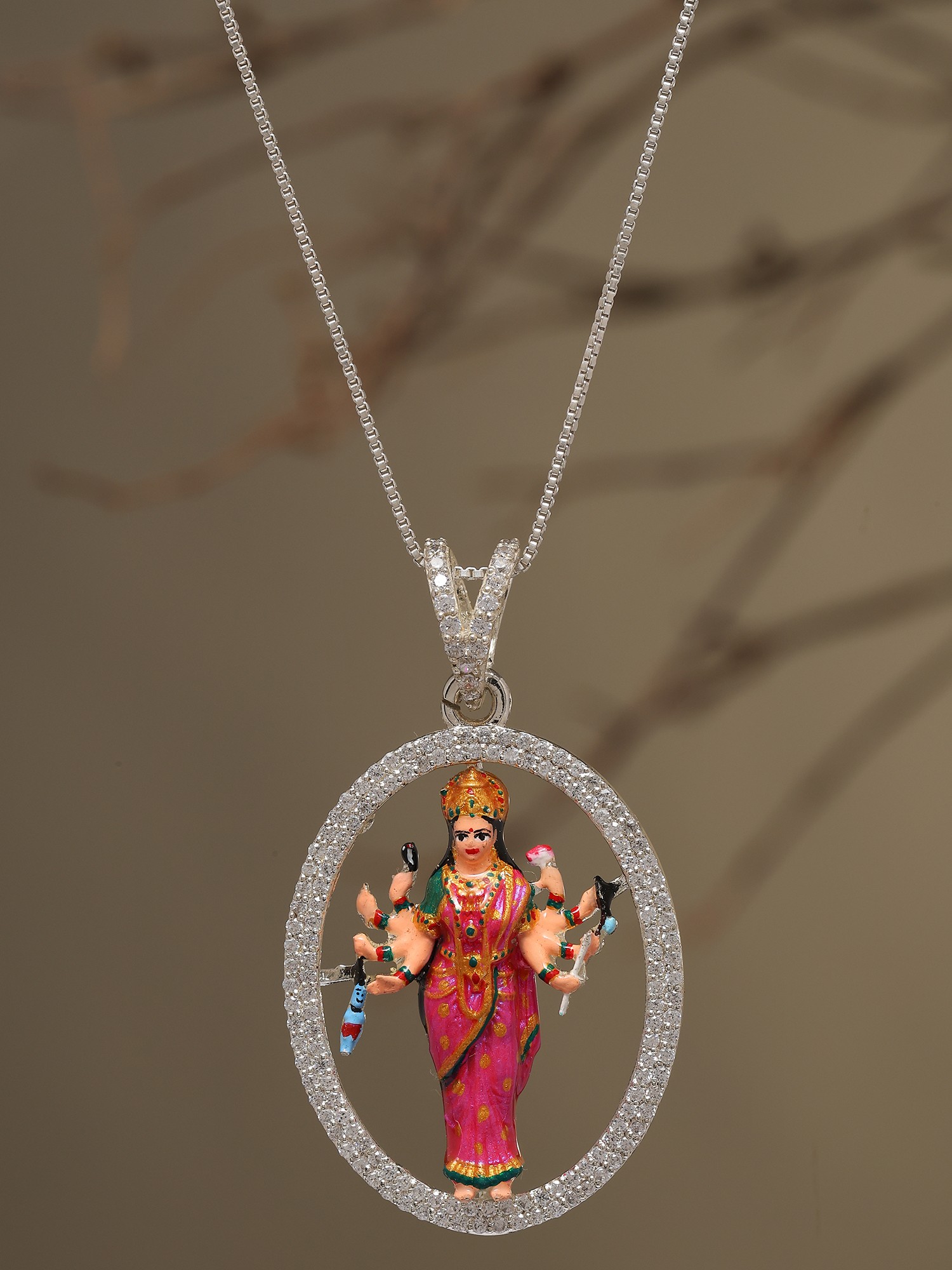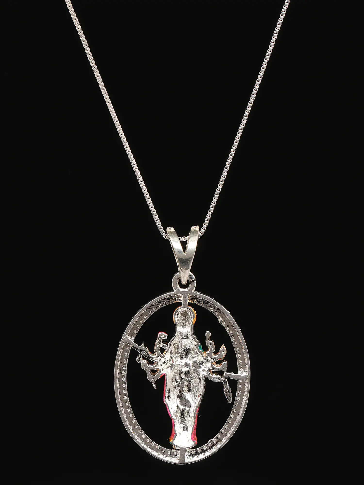 Drop Shaped Dangling Rainbow Moonstone (Cabochon) Studded Sterling Silver Pendant
