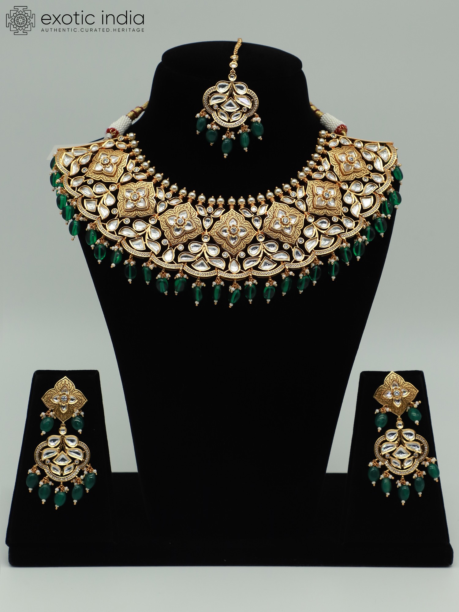 Traditional Meenakari Choker Set And Earrings For Bridal With Kundan And Brass