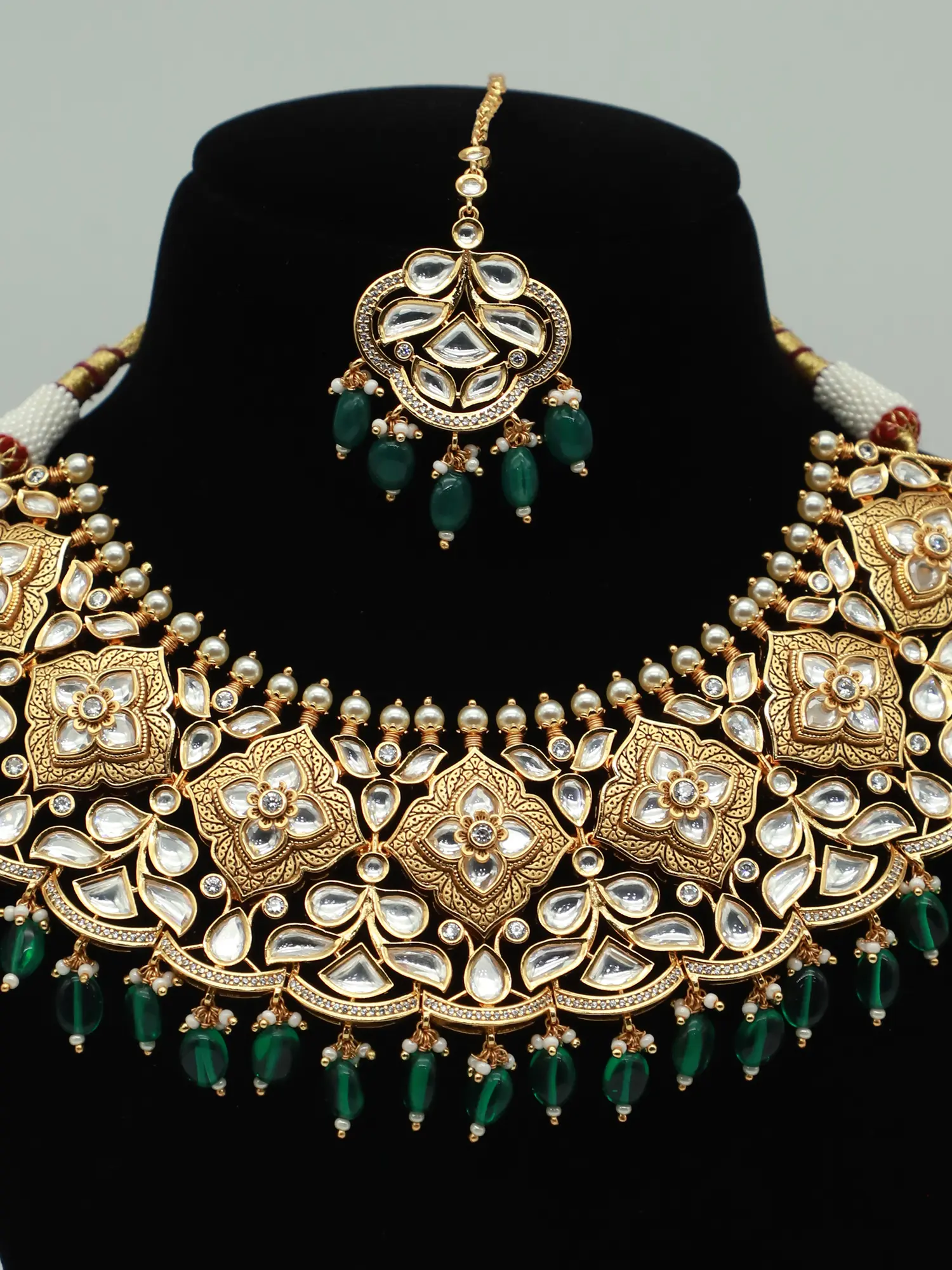NECKLACE : 13.5 INCH LENGTH X 7 INCH WIDTH EARRINGS : 3 INCH HEIGHT X 1.2 INCH WIDTH Mangtika - 3.5 Inch Length