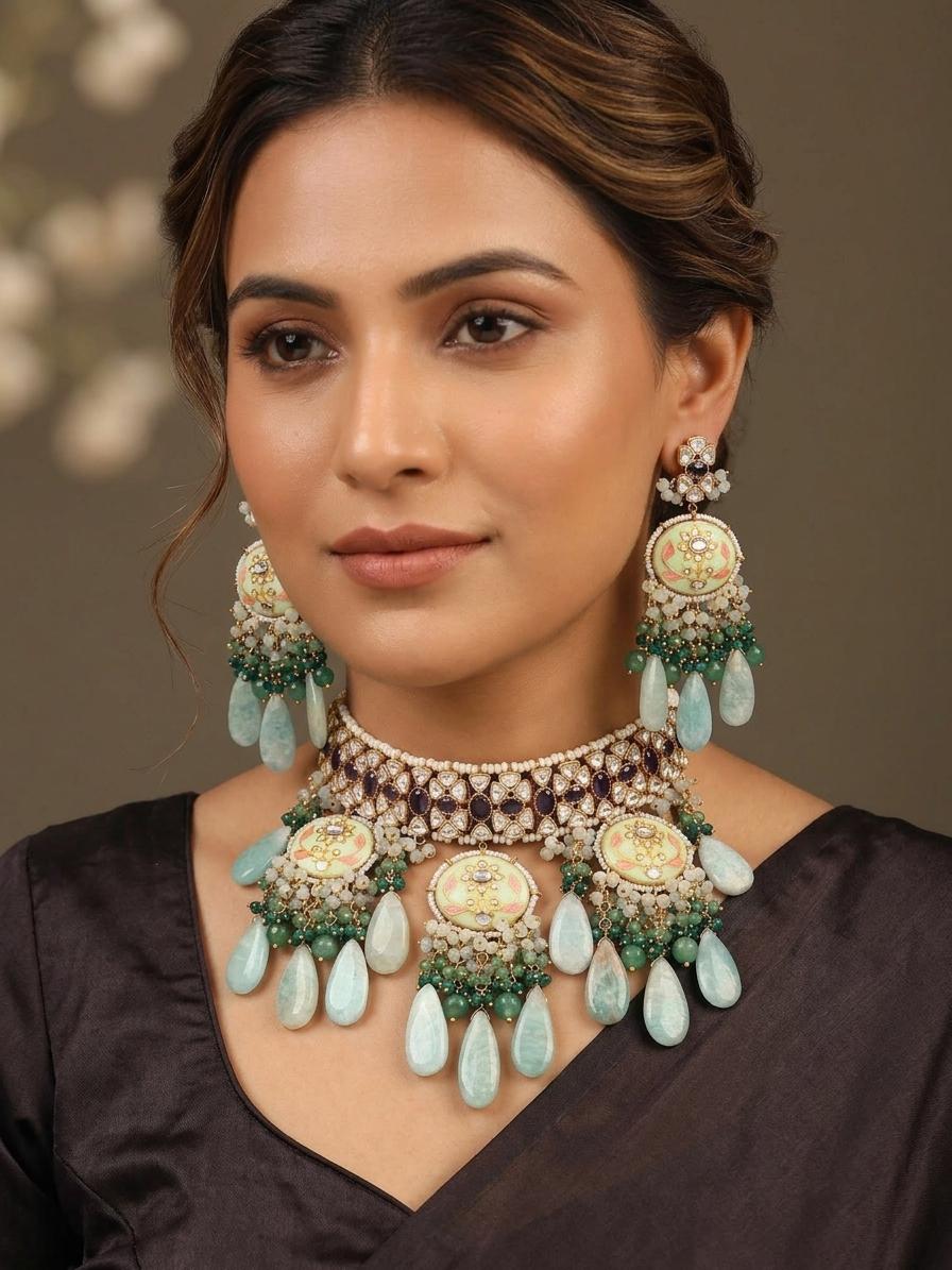 This choker necklace set is more than just jewelry; it's a wearable work of art designed to make you feel truly special. Its substantial presence ensures it will be a focal point of any outfit, while its thoughtful design ensures comfort and wearability. Whether you're attending a wedding, a festive gathering, or a glamorous evening event, this set will elevate your style, imbuing your presence with an aura of regal charm and refined taste. It’s an heirloom-quality piece that promises to be cherished for years to come, a symbol of enduring beauty and cultural richness.