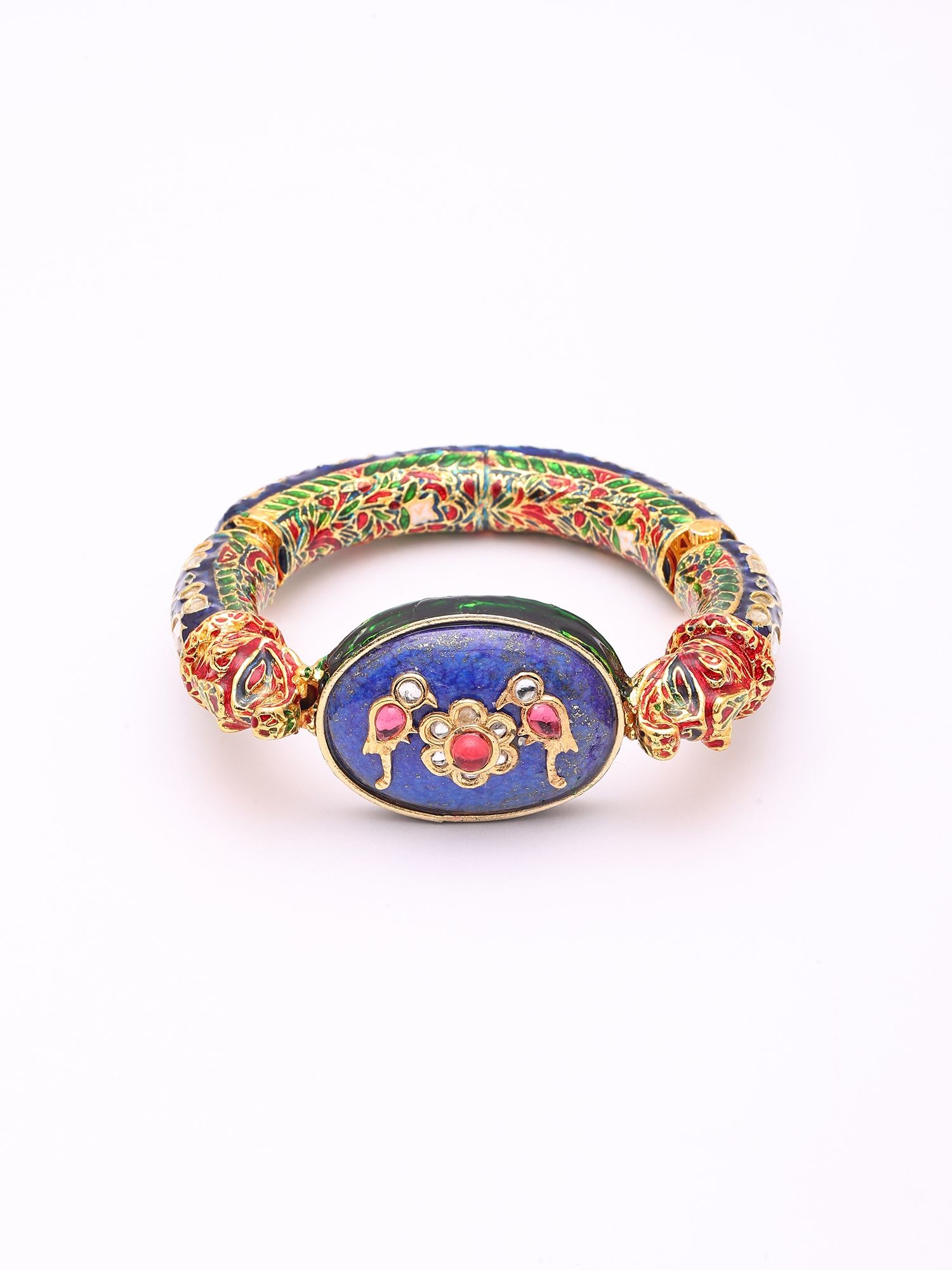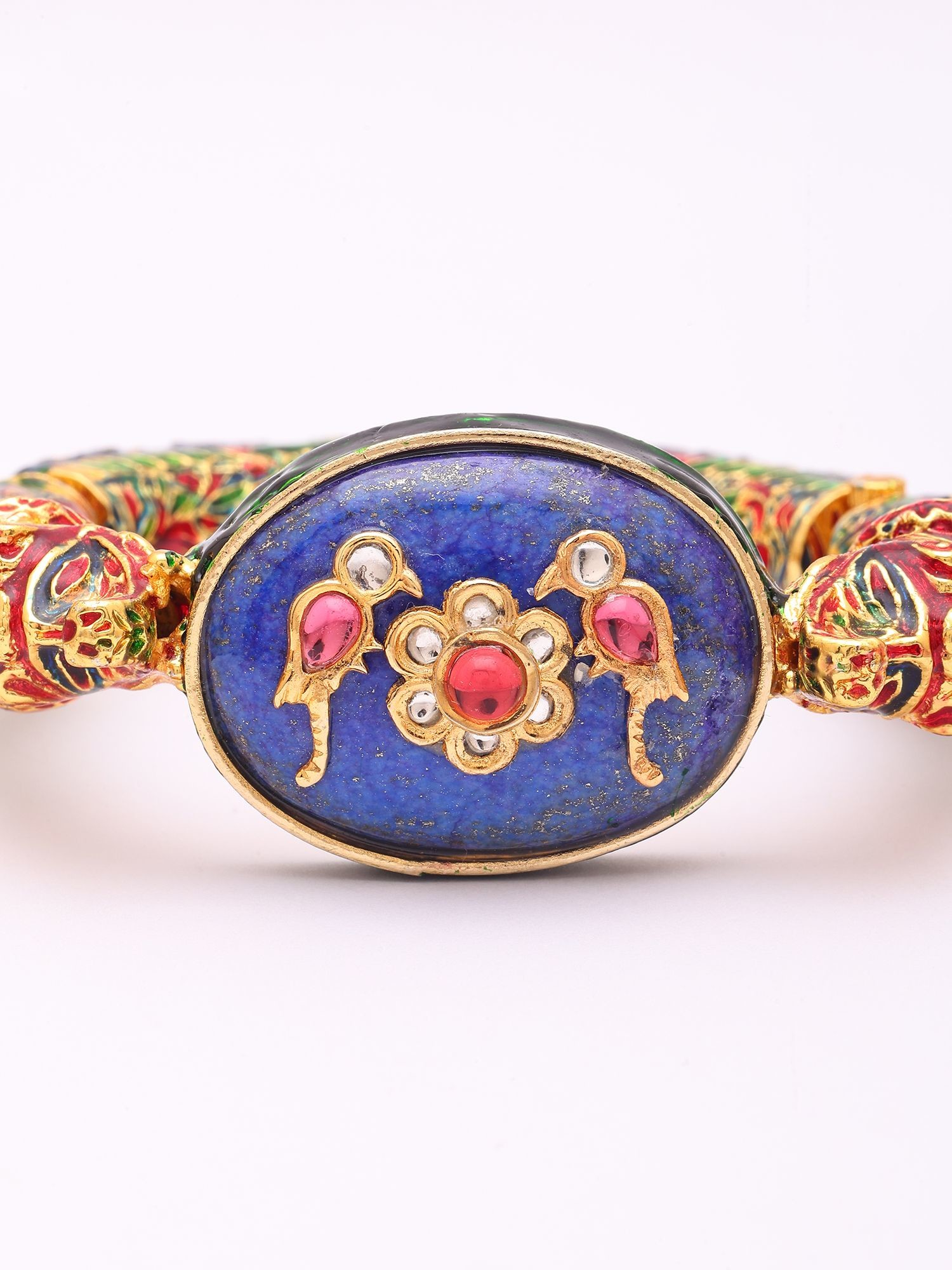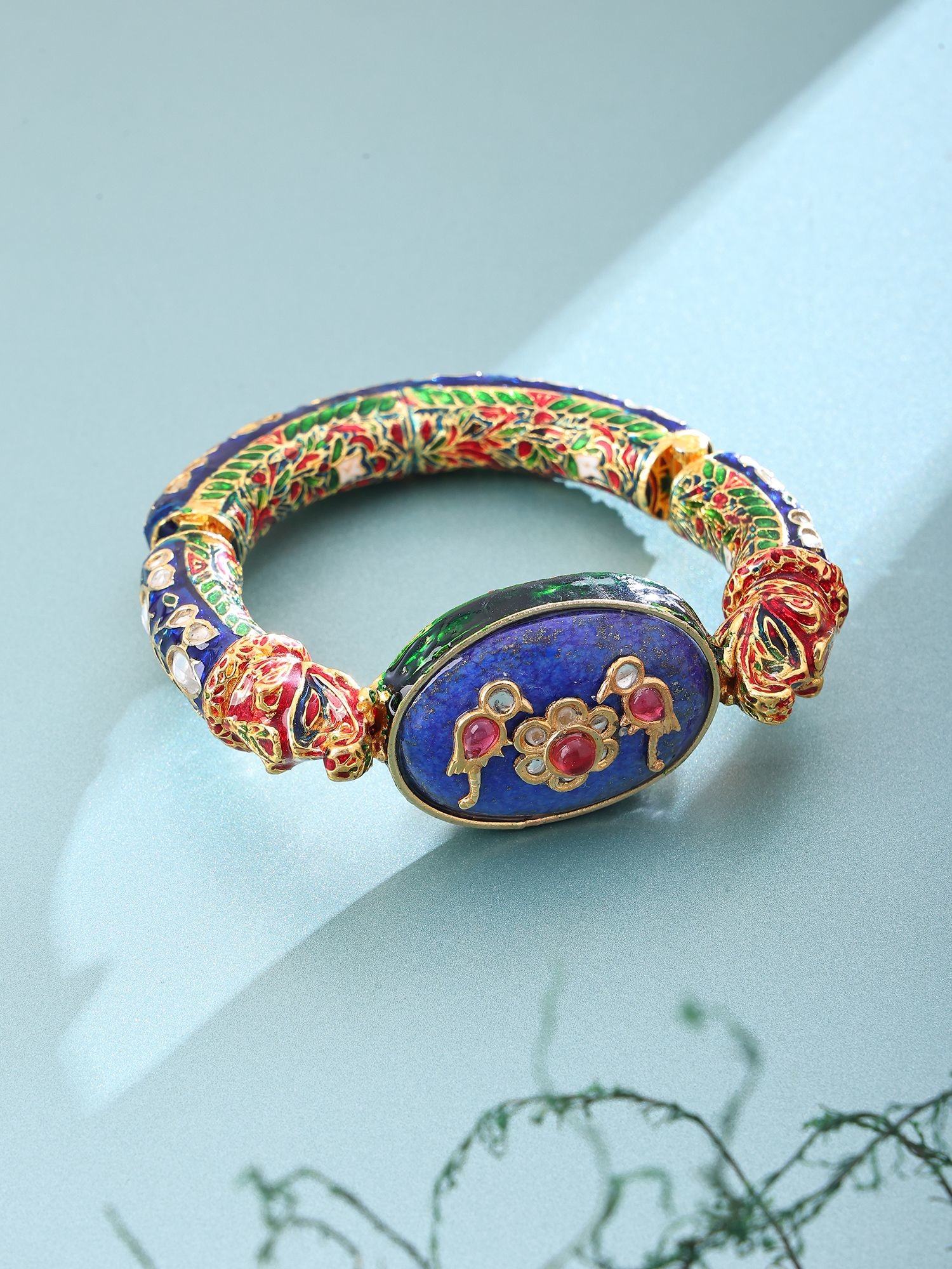 Meenakari Style Openable Lacquer Bangle with Lapis Lazuli and Ruby
