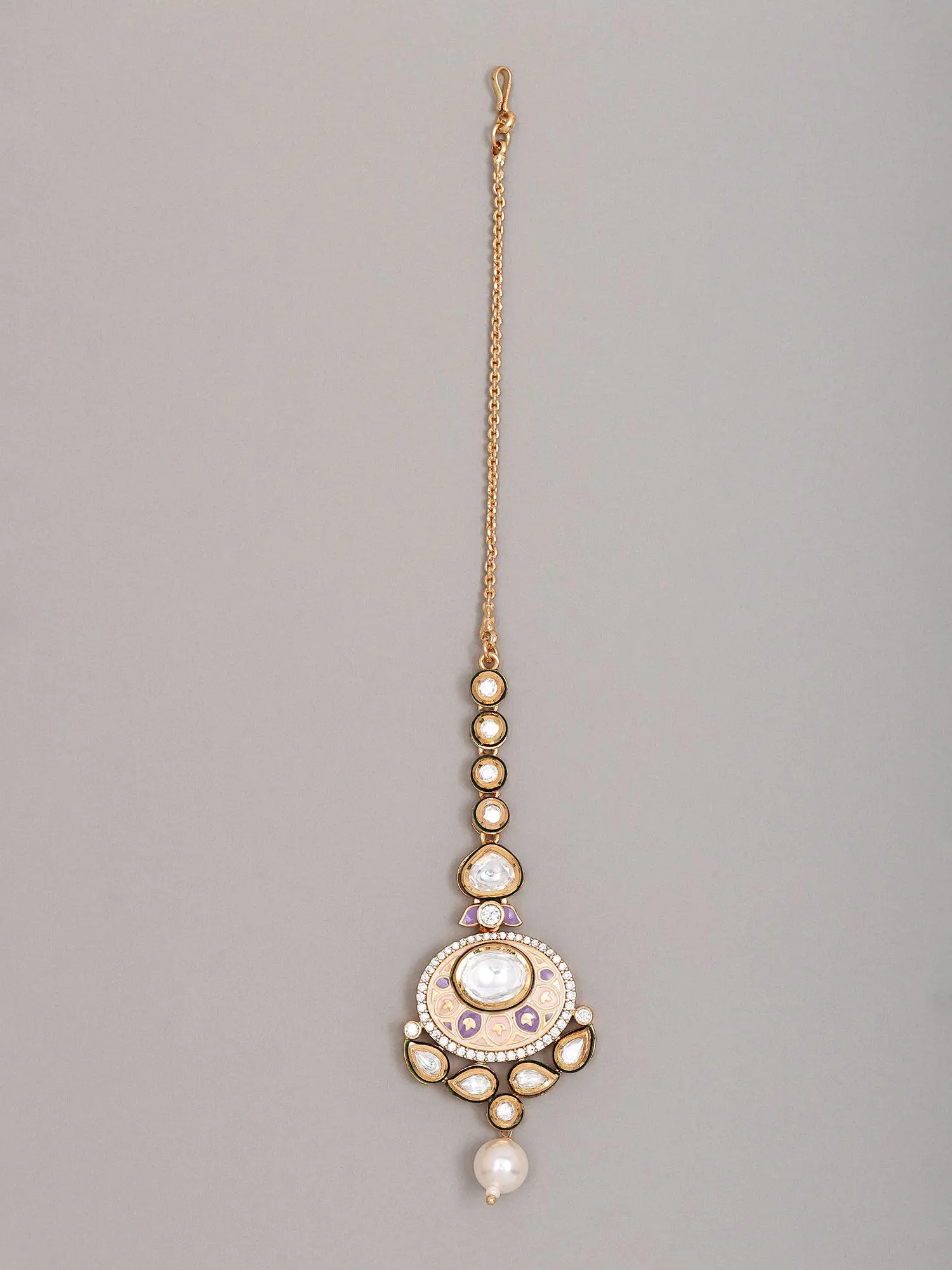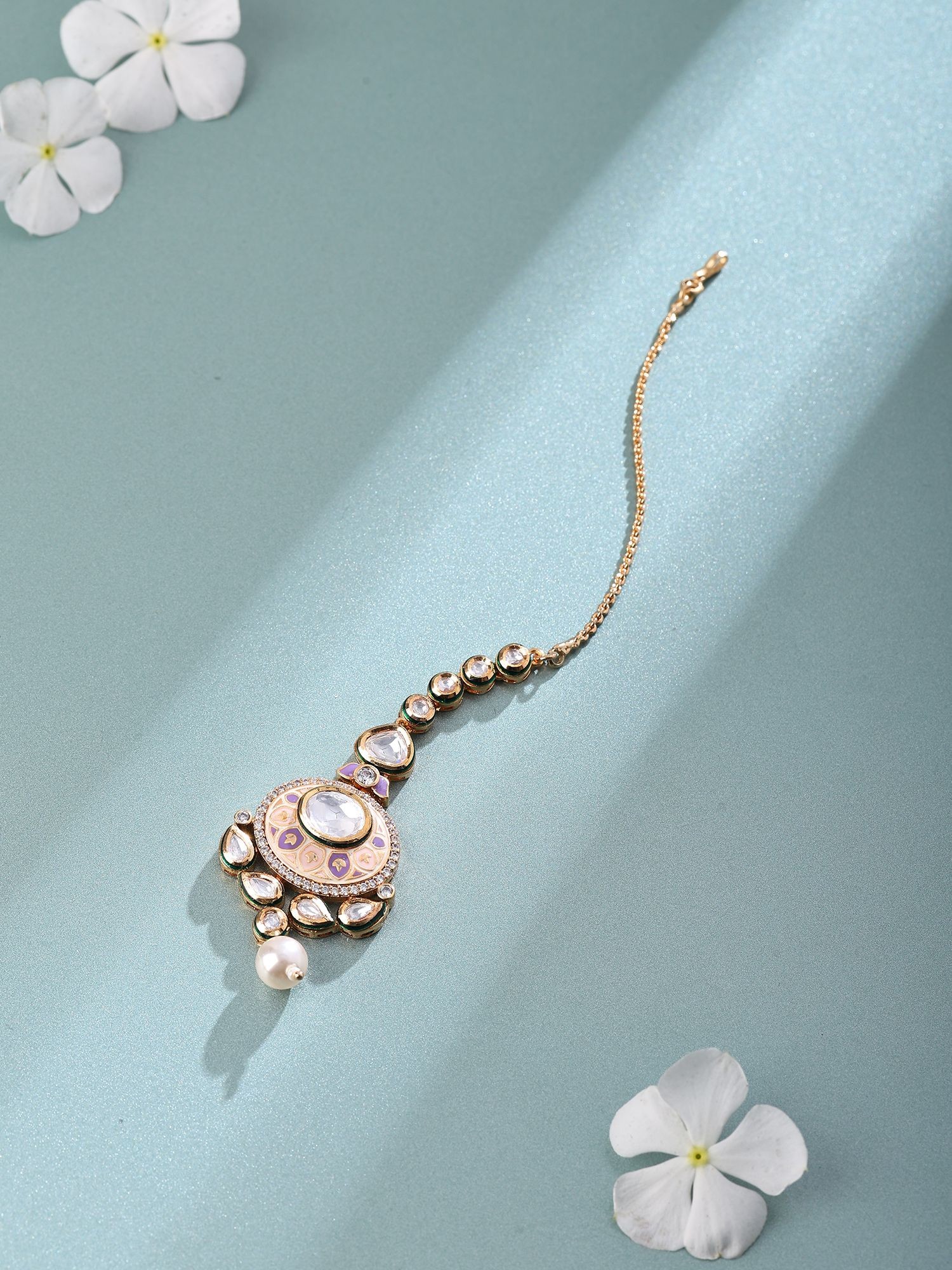 Meenakari Style Polki Studded Maang Tikka with Bead Drop