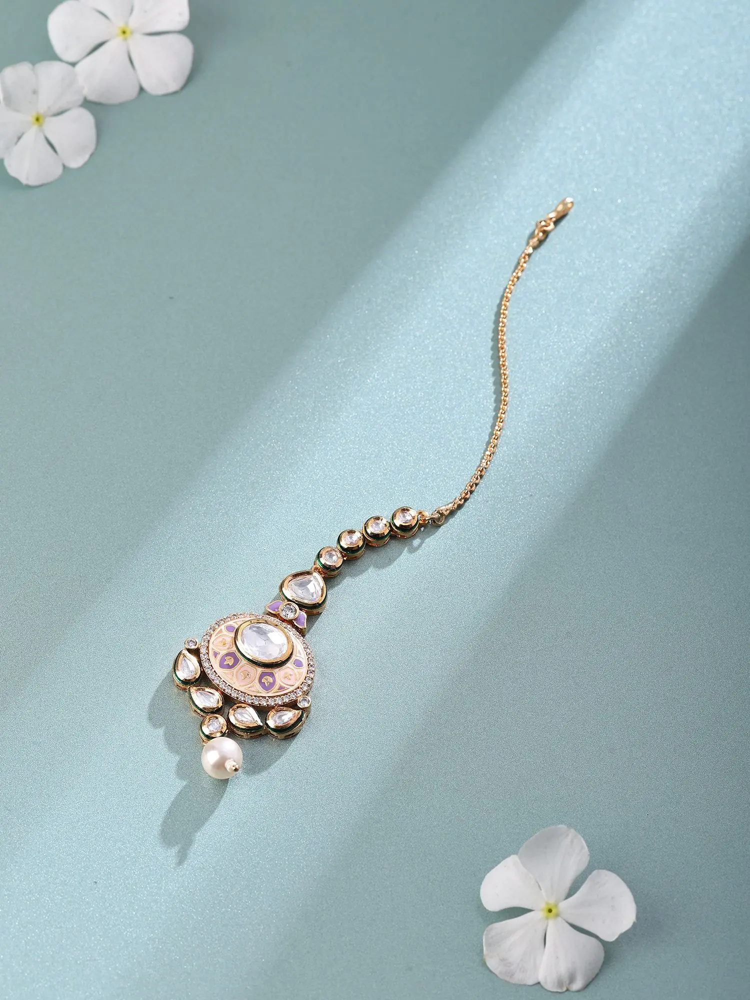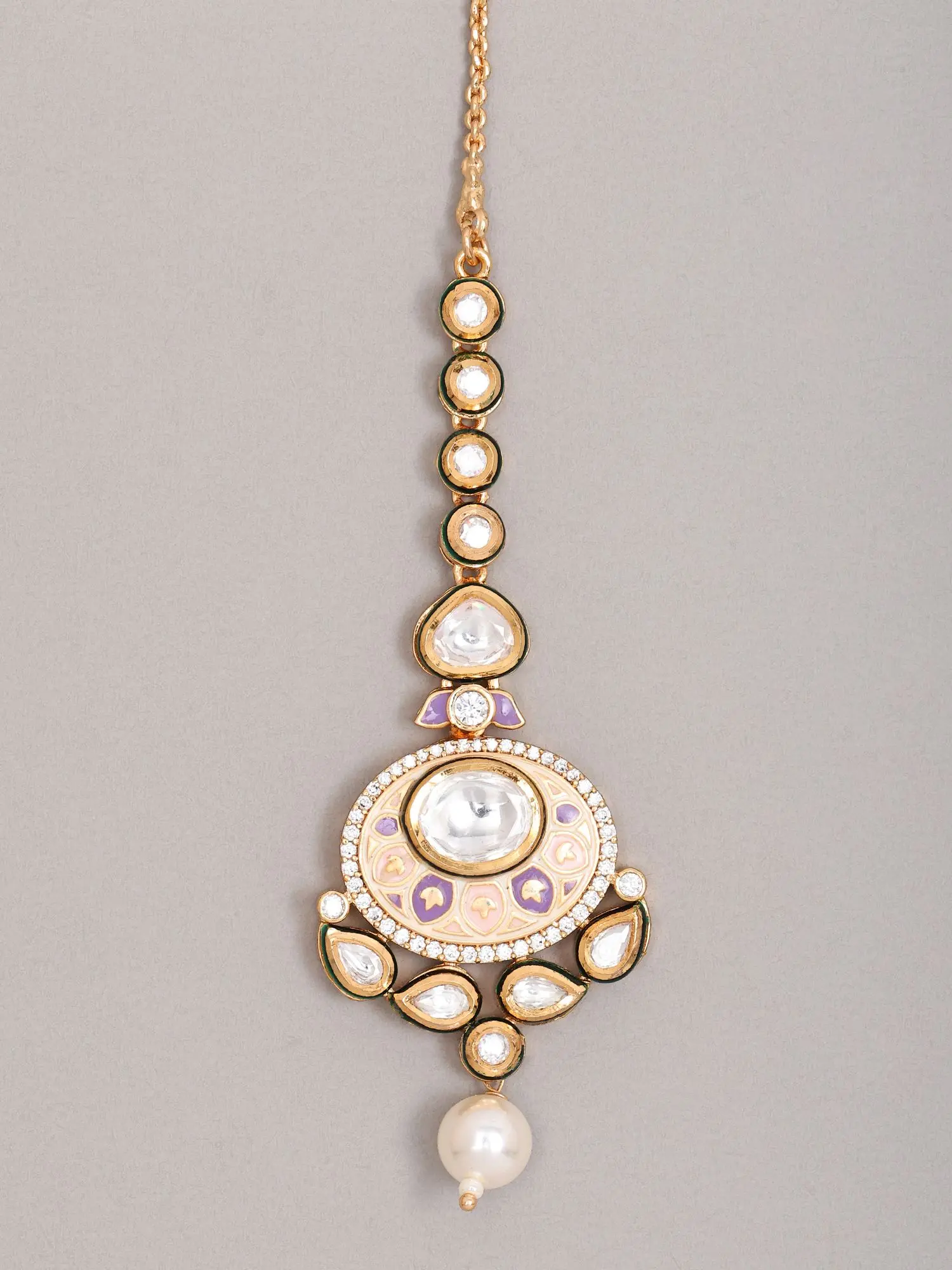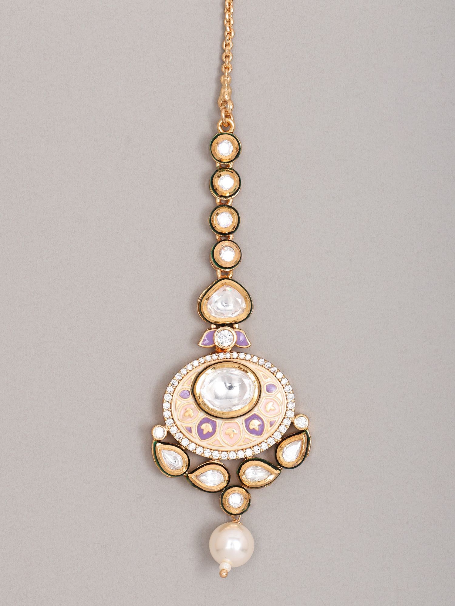 Meenakari Polki Maang Tikka with Pearl Cluster Drops
