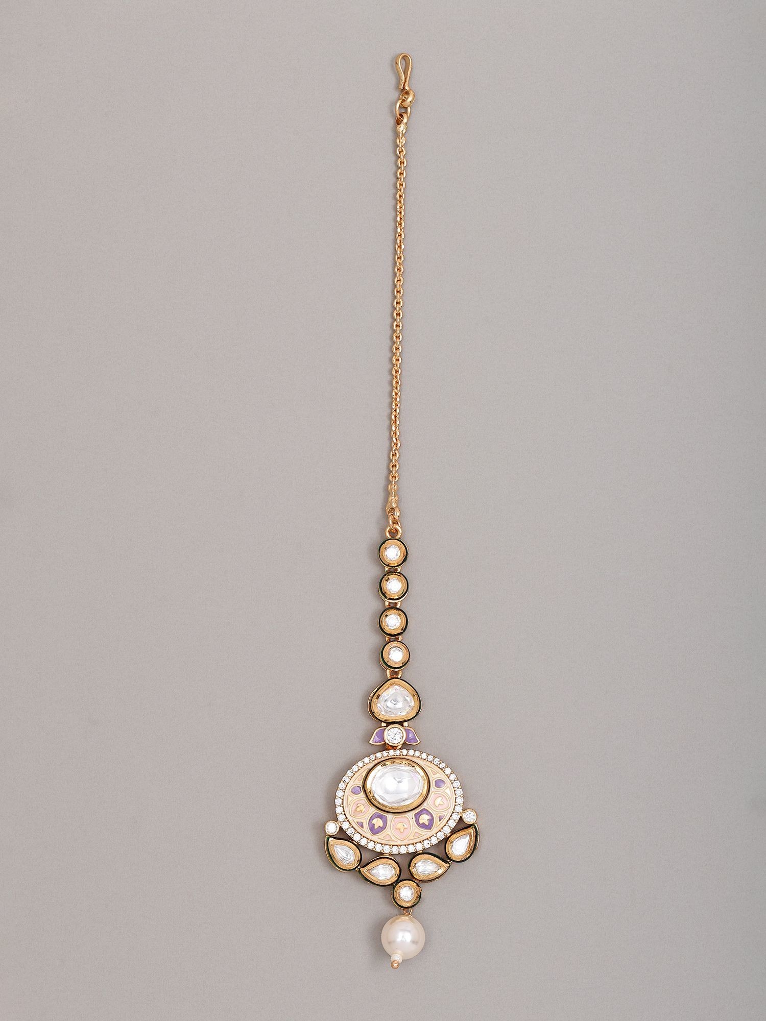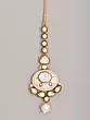 Lacquered Kundan Maang Tikka with Pearl Drops - Crescent Style