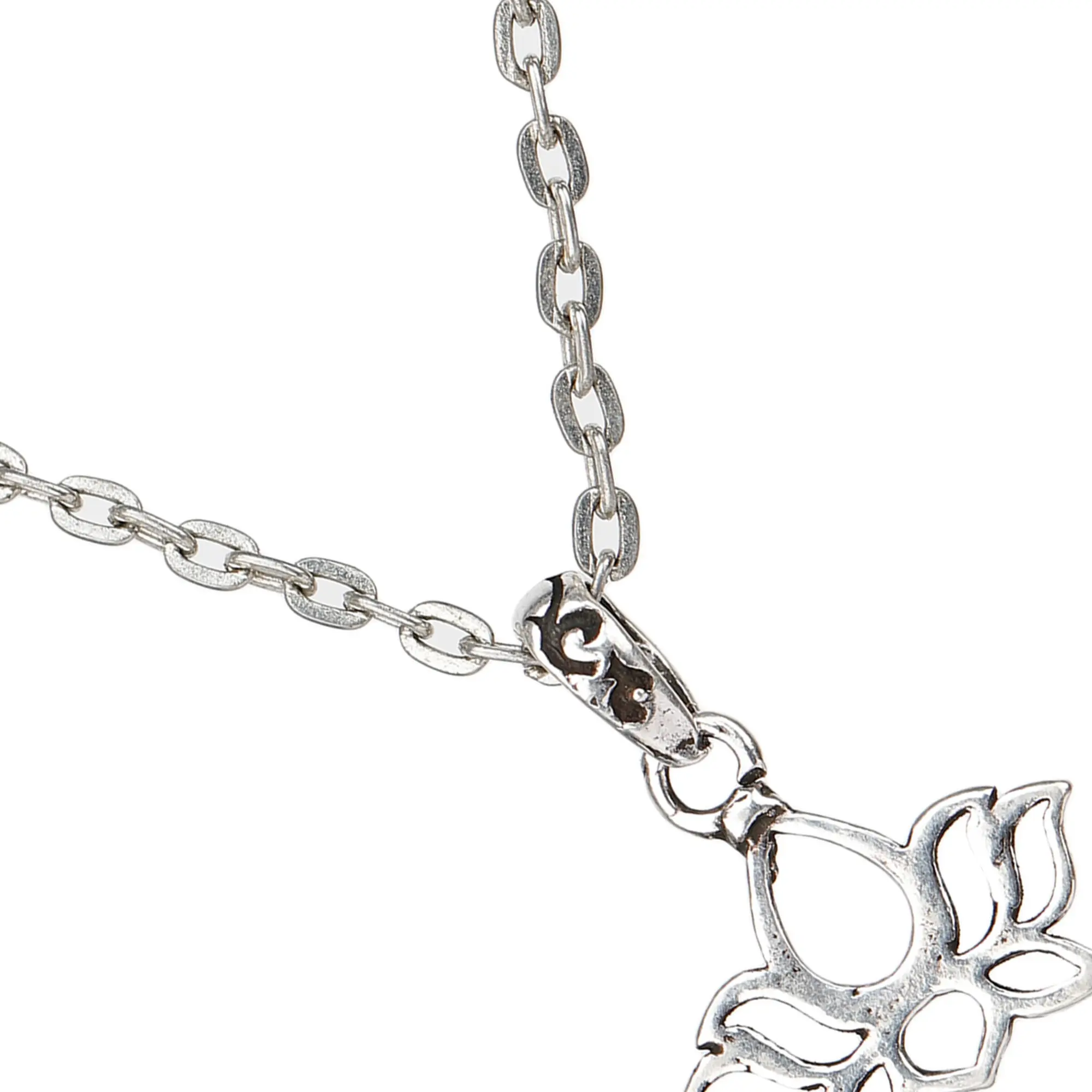 The pendant measures a dainty 0.5 inches by 0.3 inches, making it a subtle yet striking statement piece. The lotus flower is meticulously crafted from high-quality sterling silver, ensuring both its beauty and longevity. The openwork design of the petals allows light to play across the surface, enhancing its ethereal quality. It hangs gracefully from a delicate chain, adding to its overall refined aesthetic. The pendant's size makes it versatile, suitable for layering with other necklaces or wearing solo for a more minimalist look.