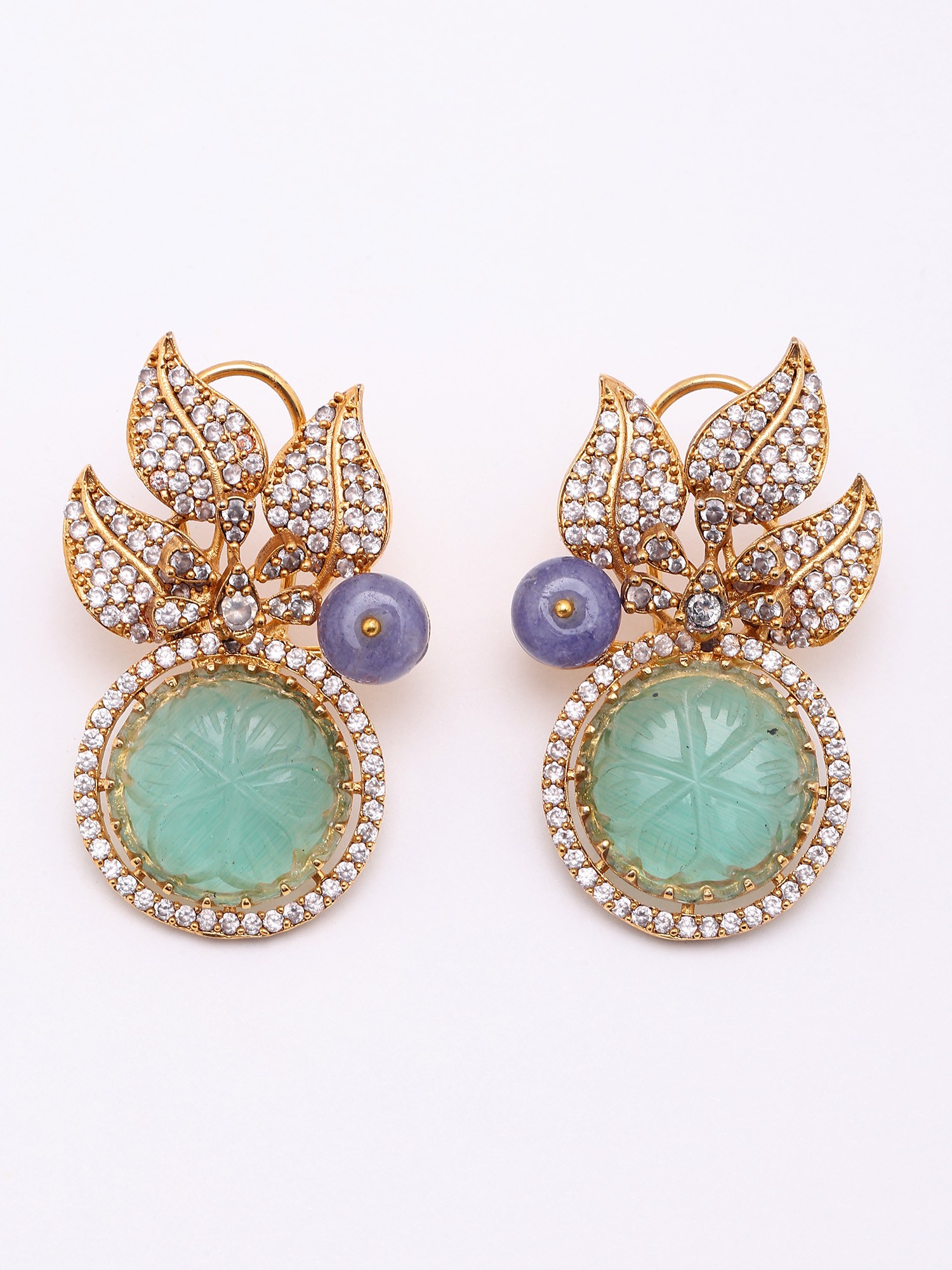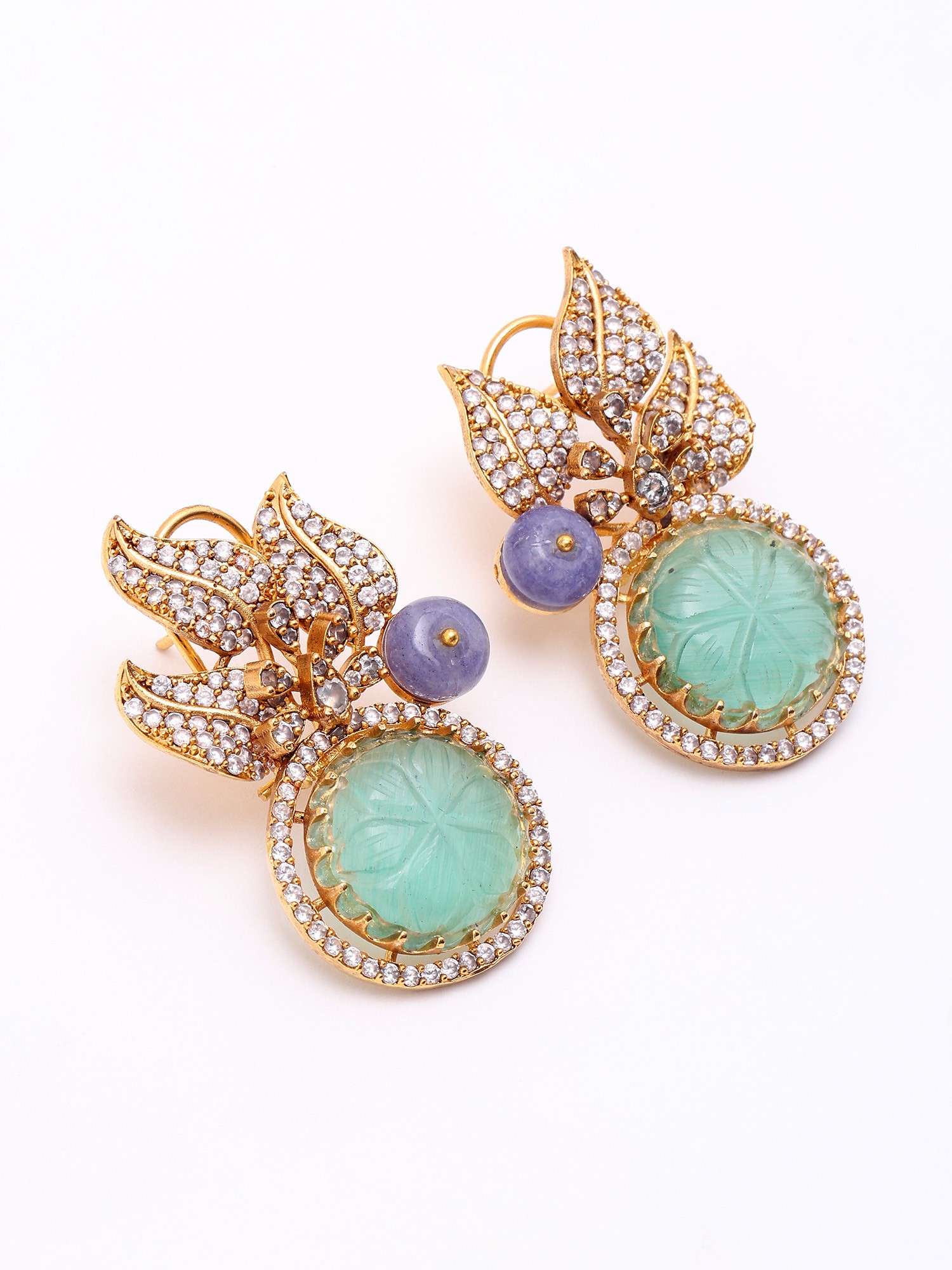 Multi Stone Studded Floral Design Necklace and Earrings Set with Five Strand