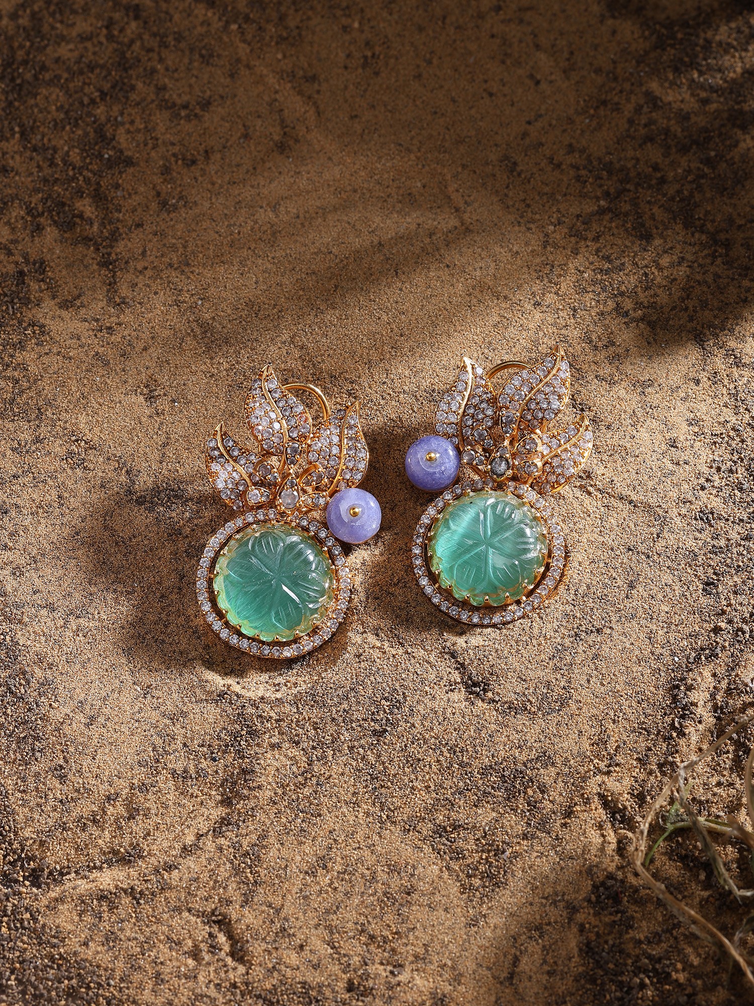 Four Strand Multi Stone Studded Floral Design Necklace and Earrings Set