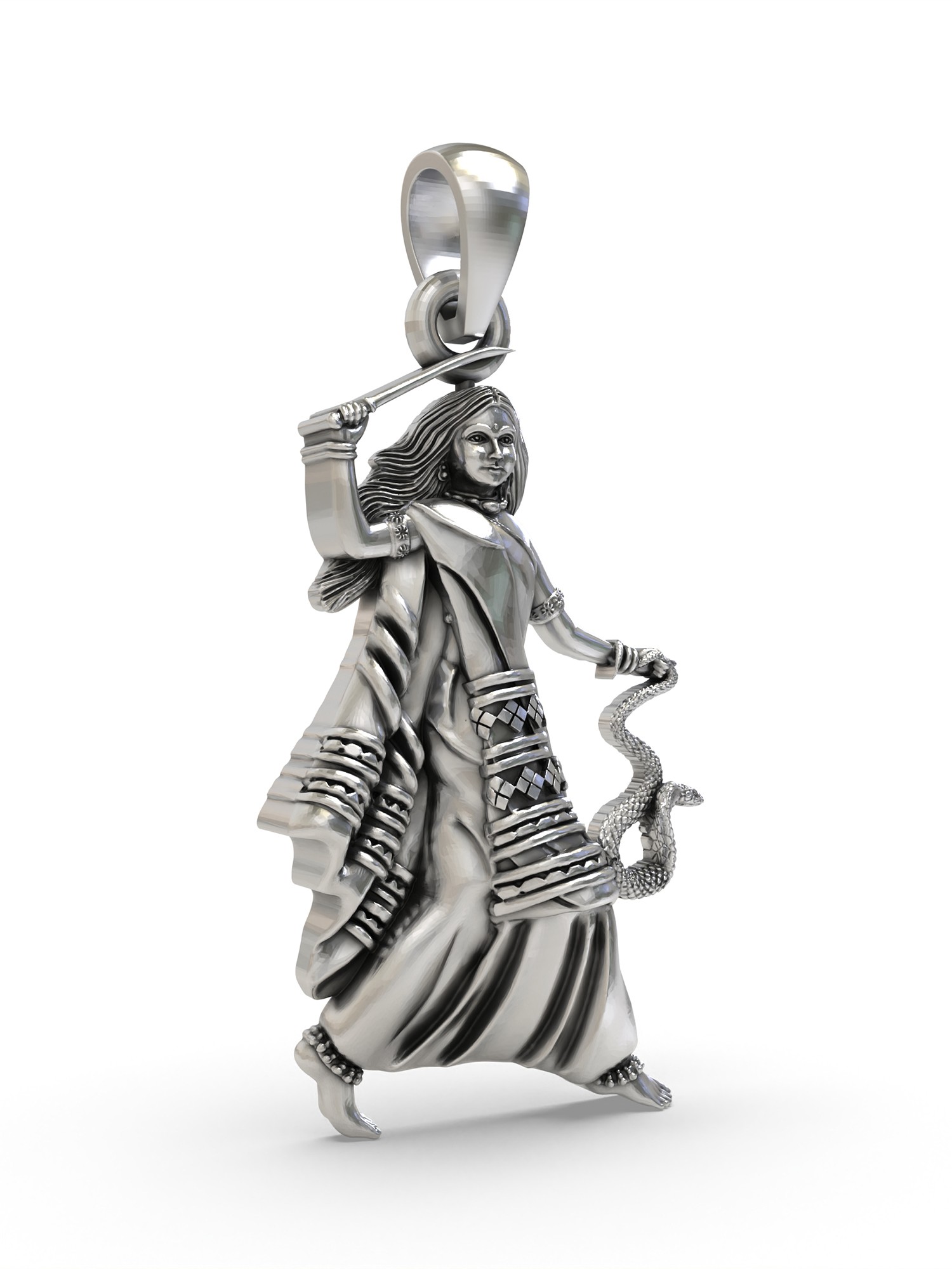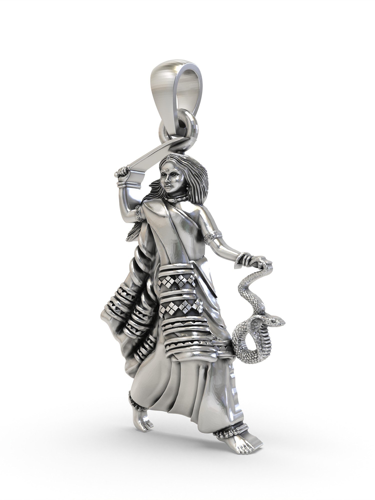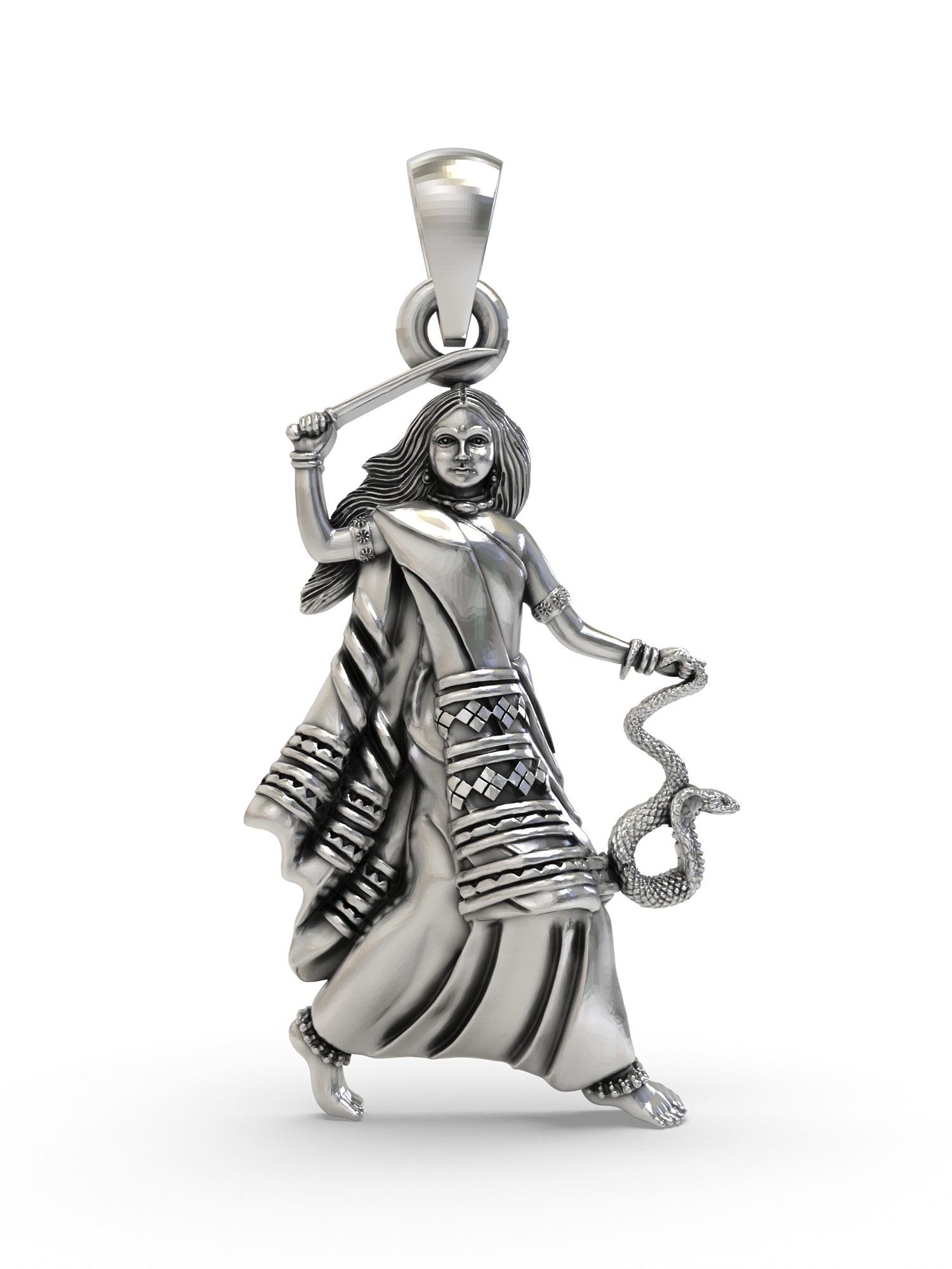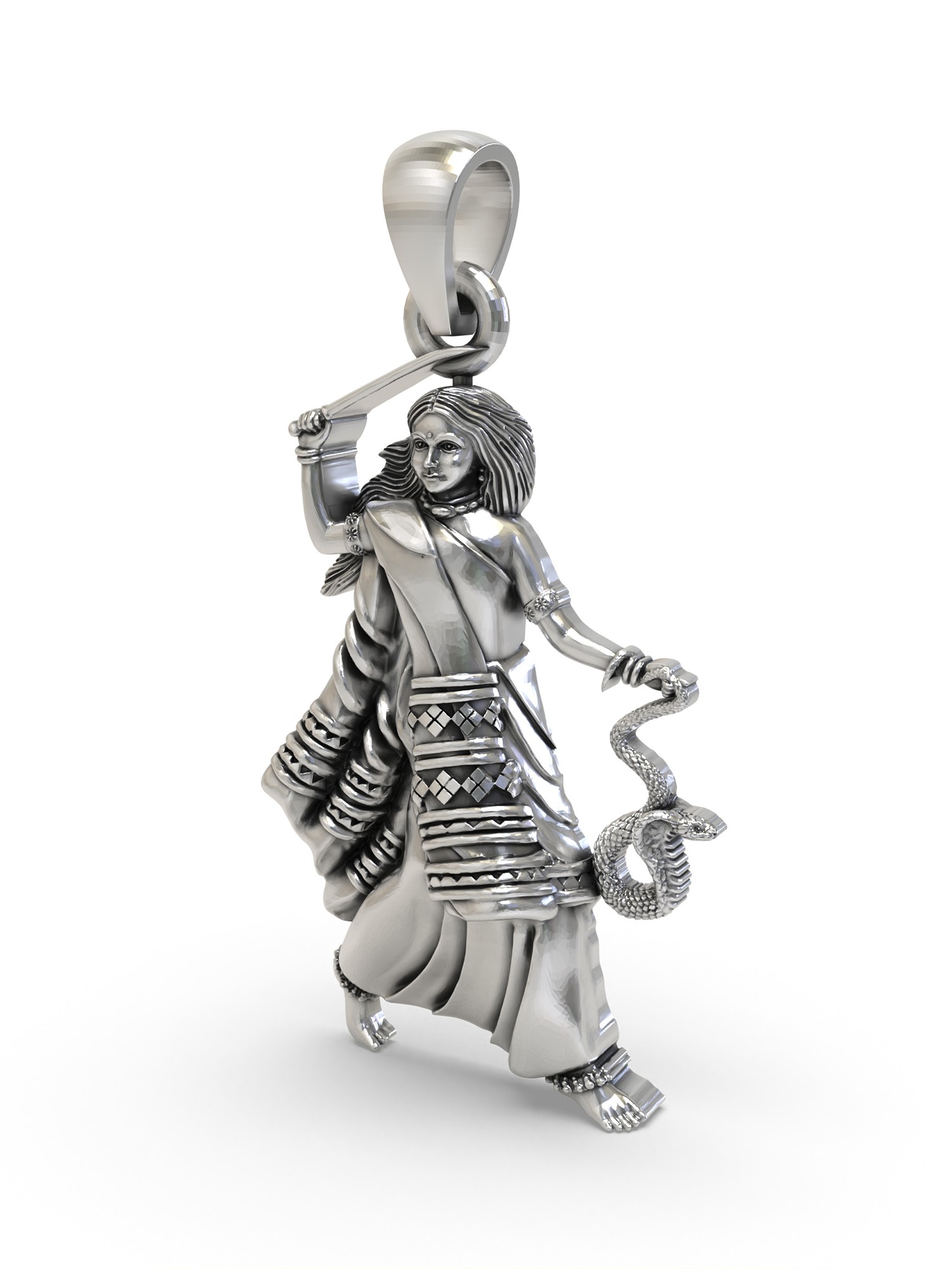 Sterling Silver Goddess Mookambika (Rare Goddess of India) Pendant