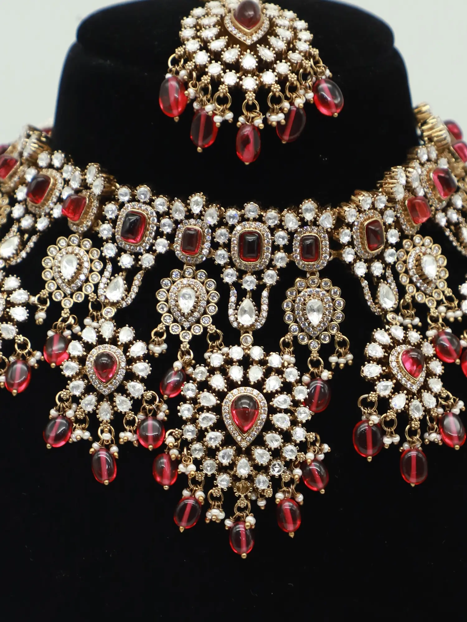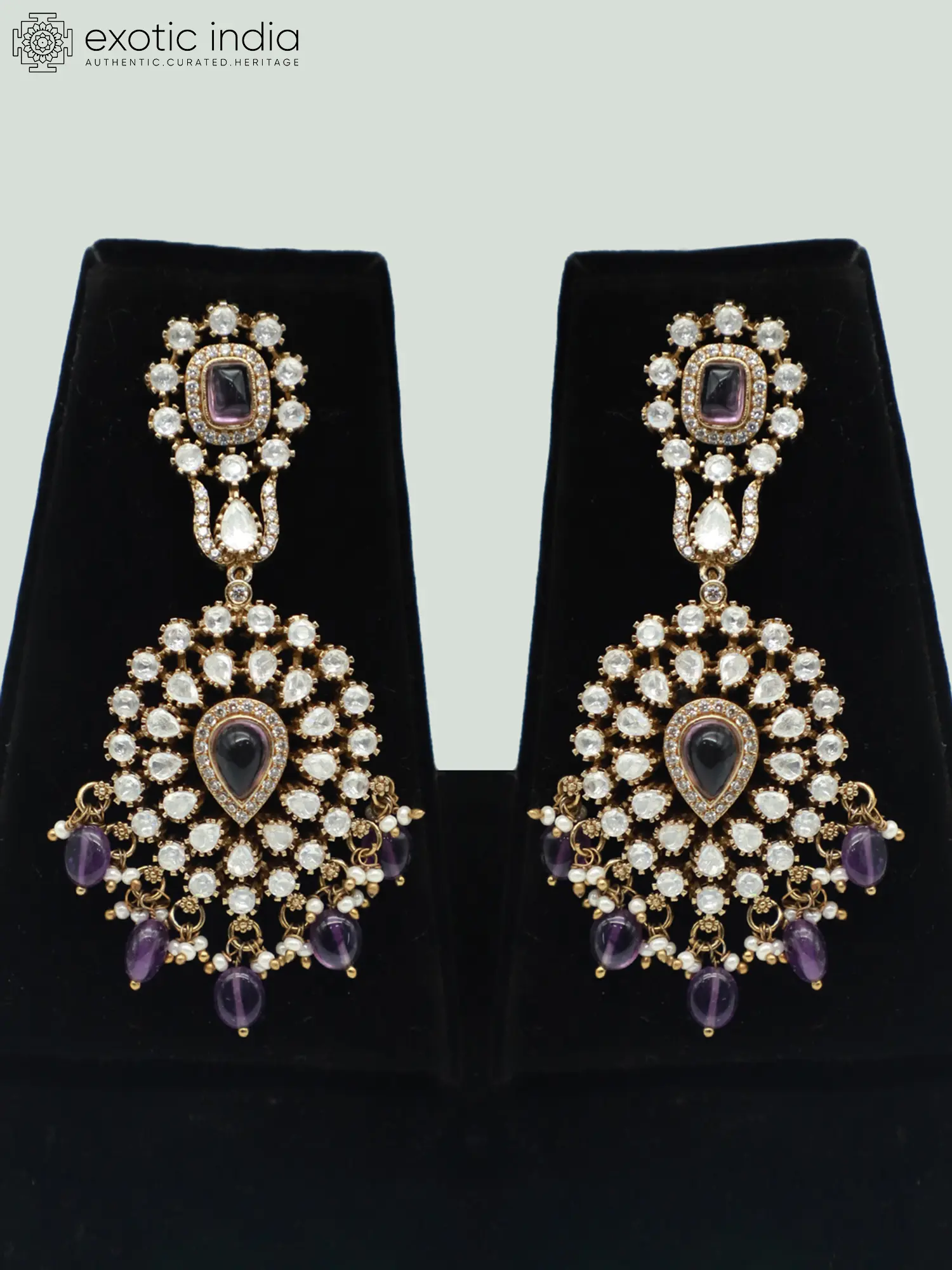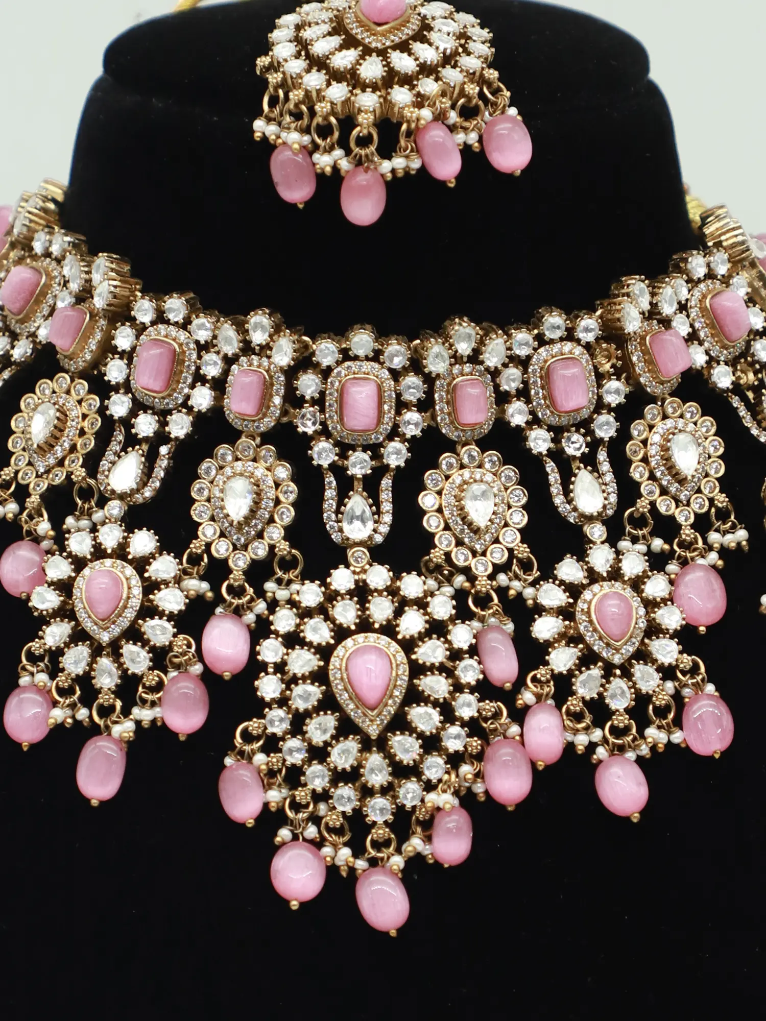 Moissanite Designer Light Weight Necklace Set With Earrings