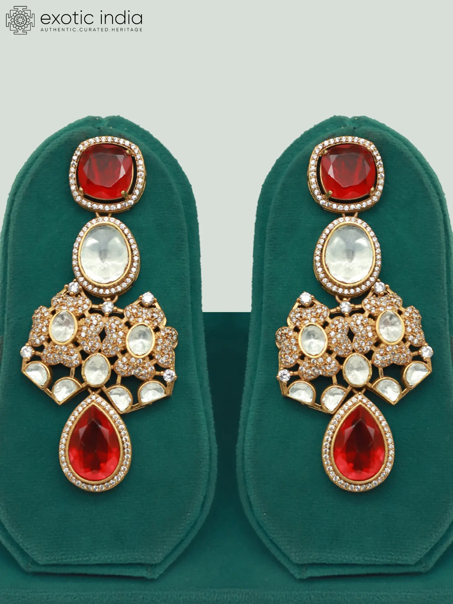 Beautiful Moissanite Necklace Set With Doublet Stone, Uncut Kundan And Antique Polished Earrings
