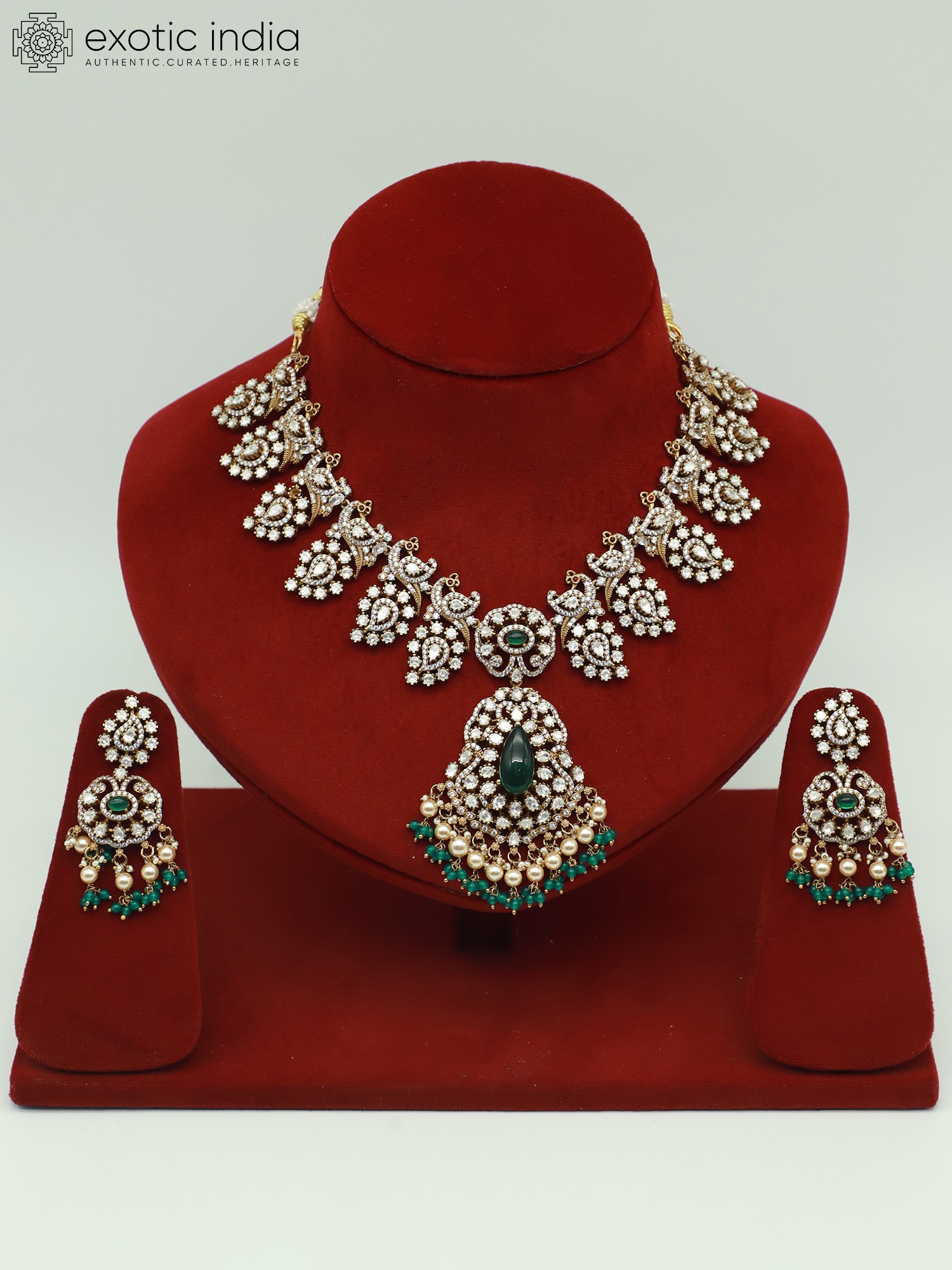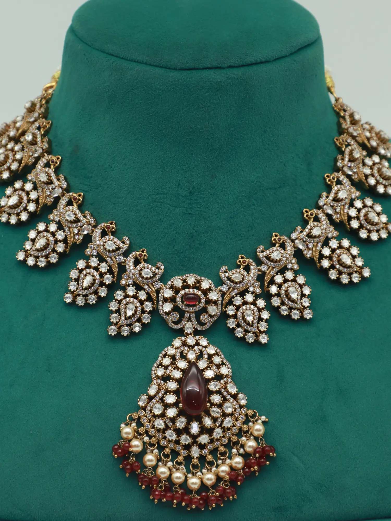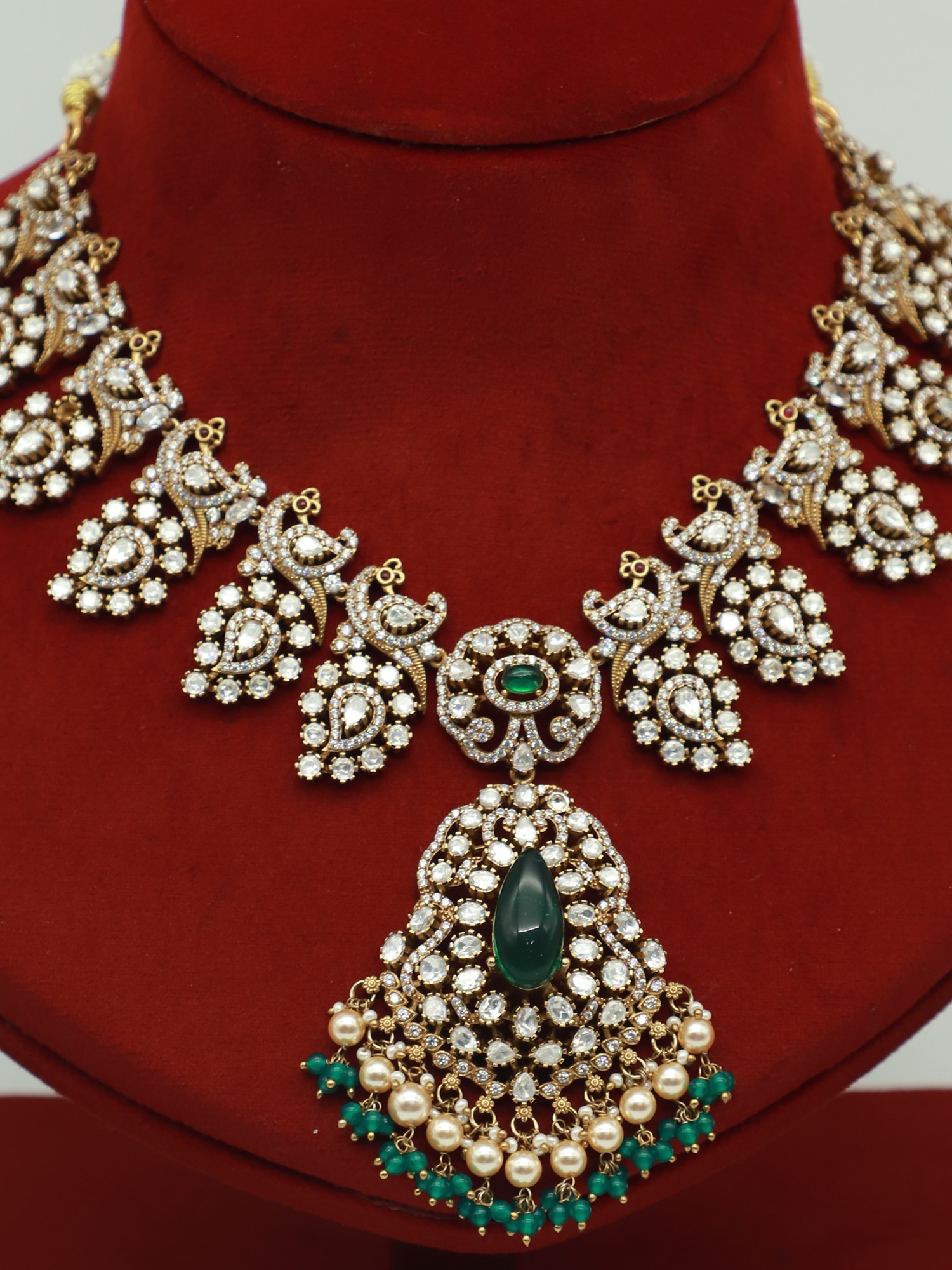 Victoria Polish Stone Studded Designer Necklace Set With Earrings
