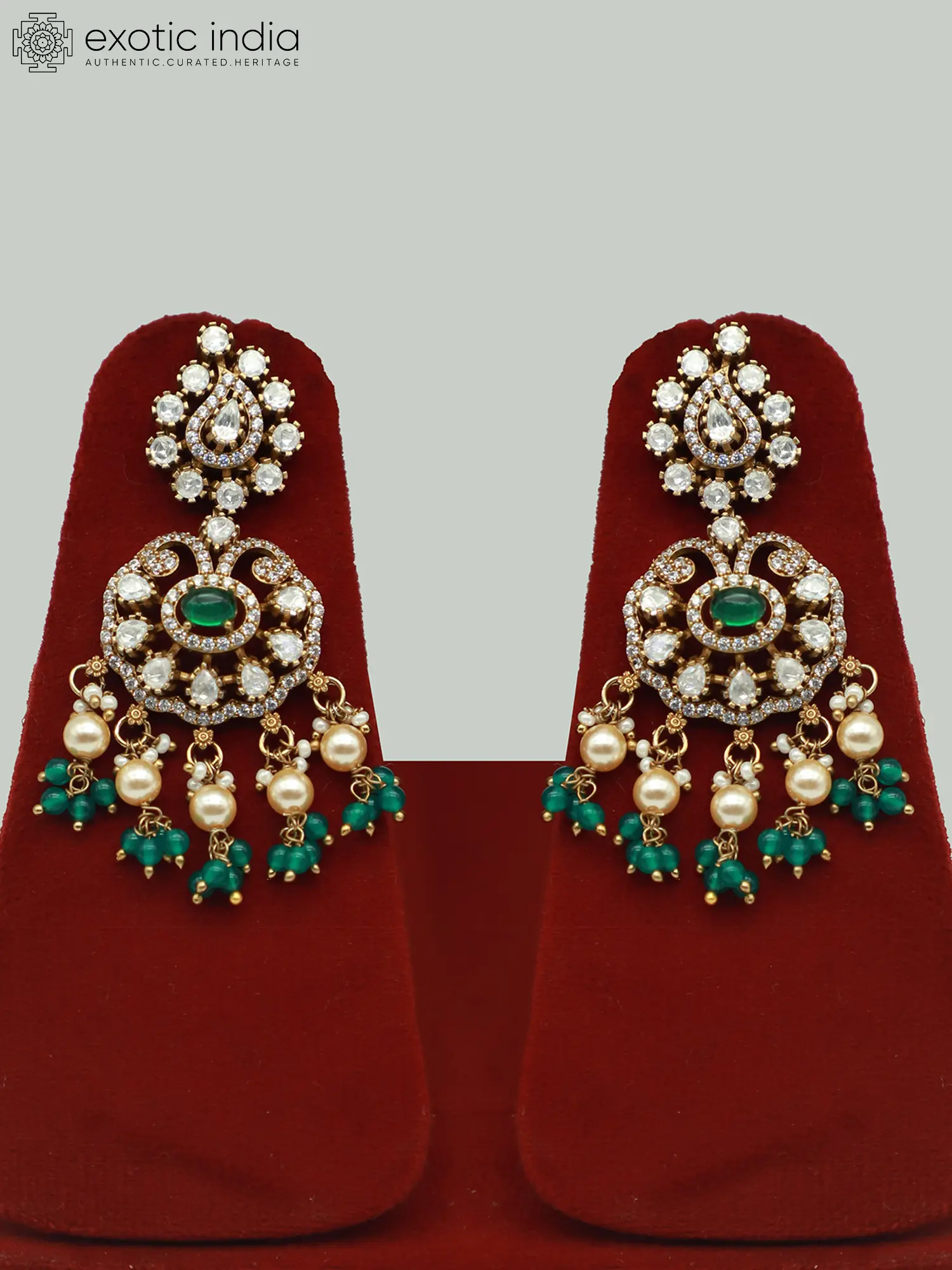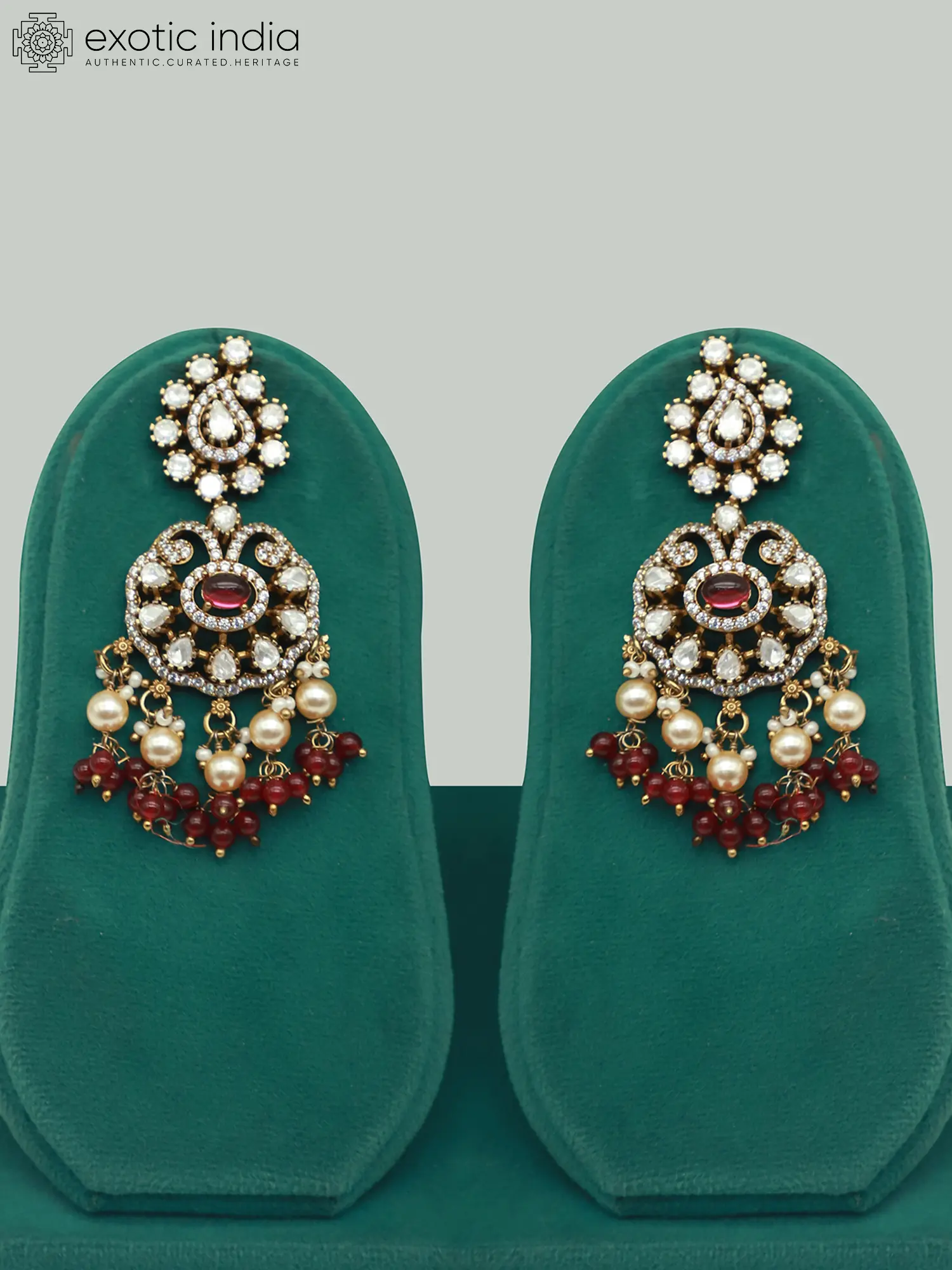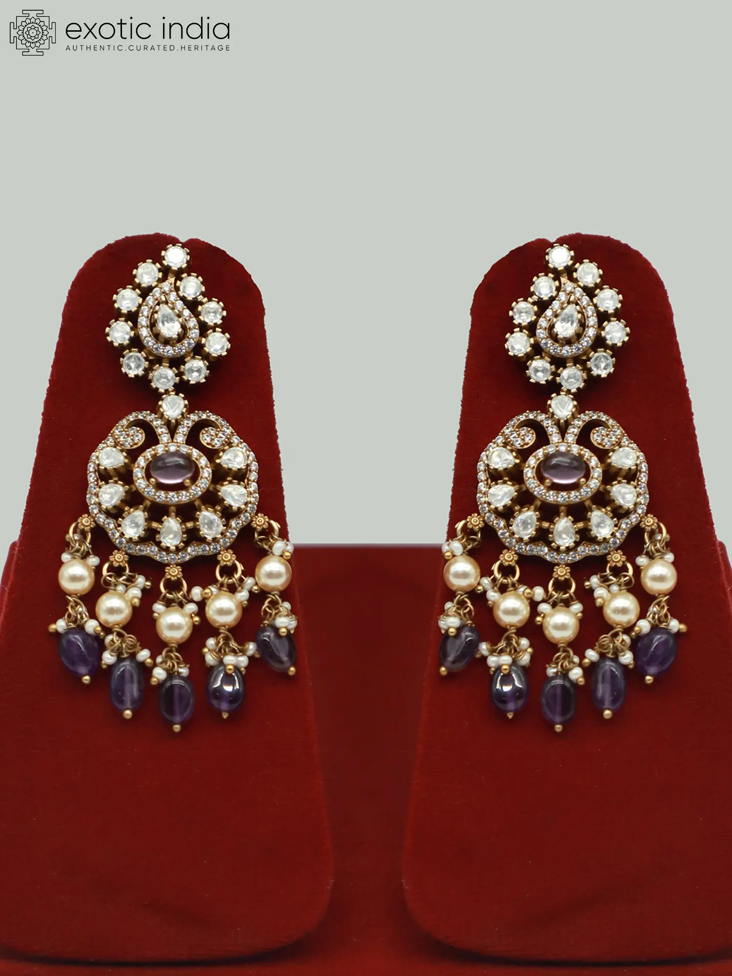 Victoria Polish Stone Studded Designer Necklace Set With Earrings