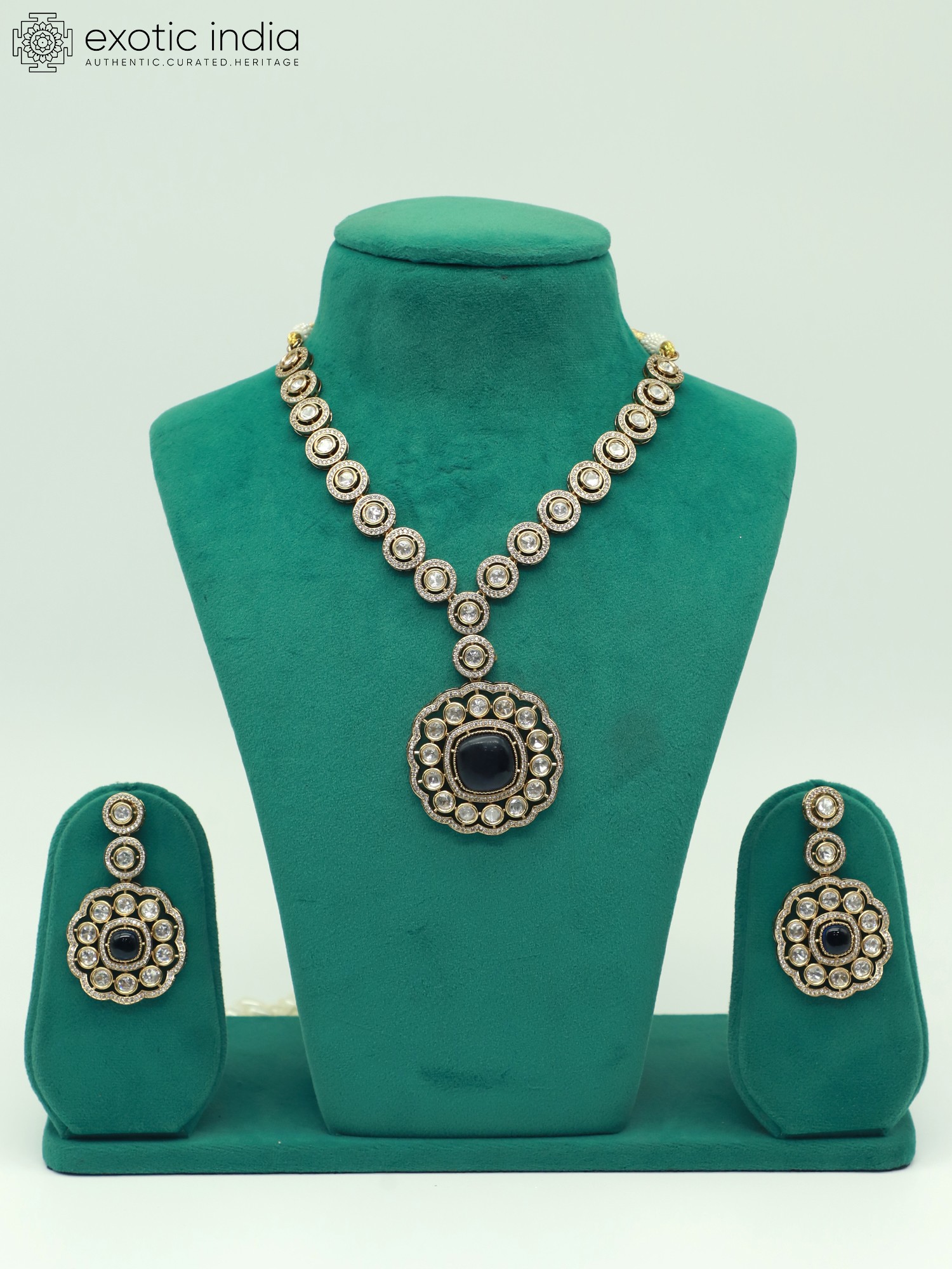 Beautiful Design Embellished Stone Studded American Diamond Necklace Set With Earrings