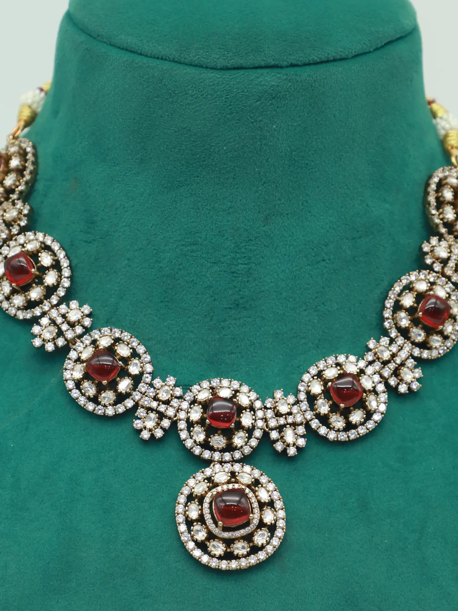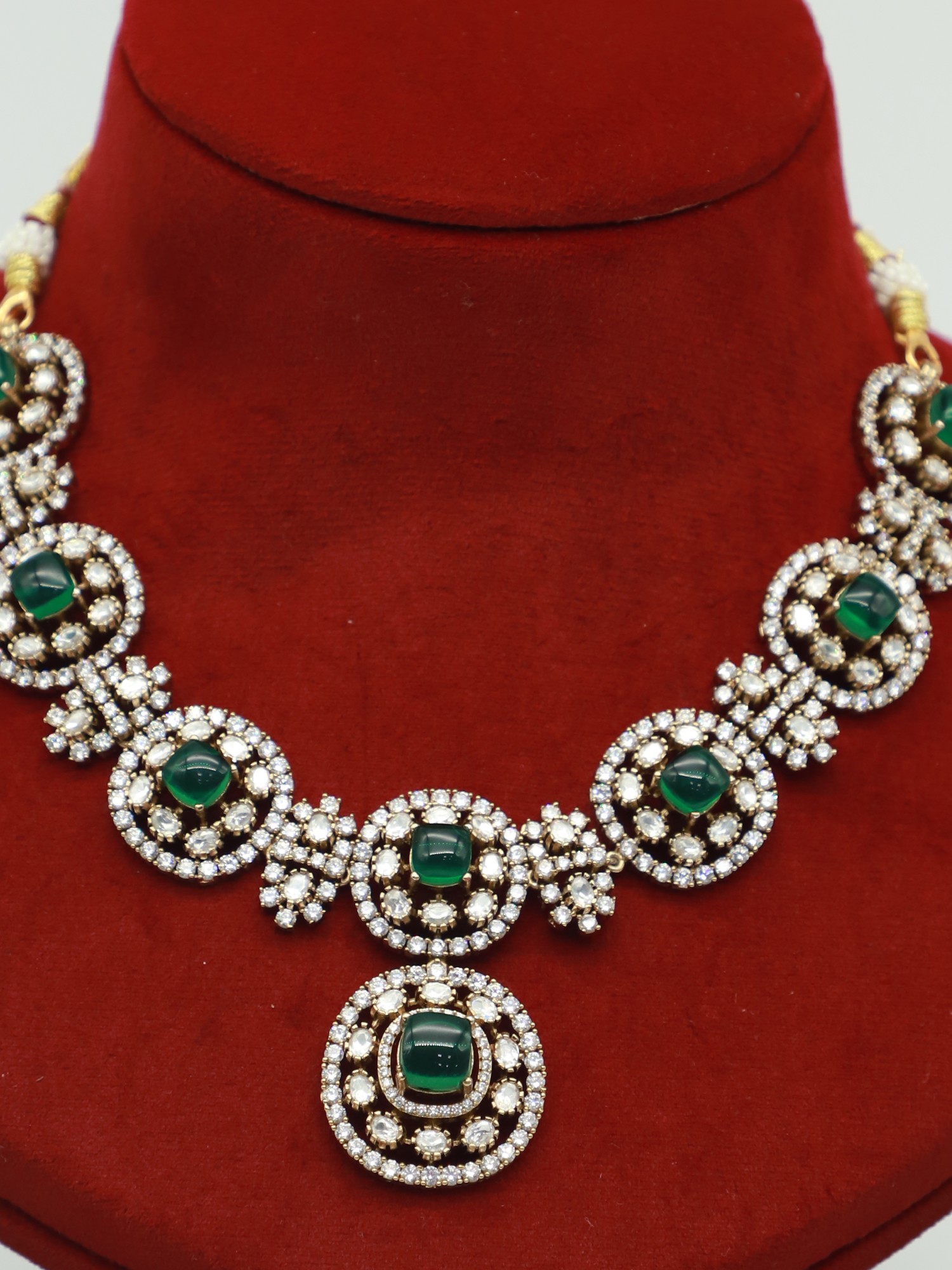 Moissanite Designer Necklace Set With Antique Polish And Doublet Stone