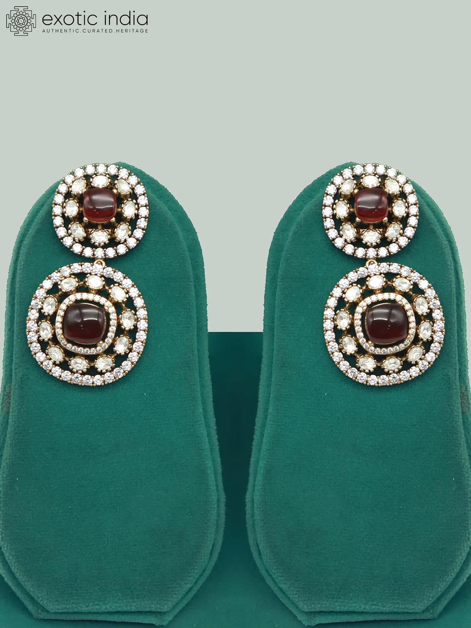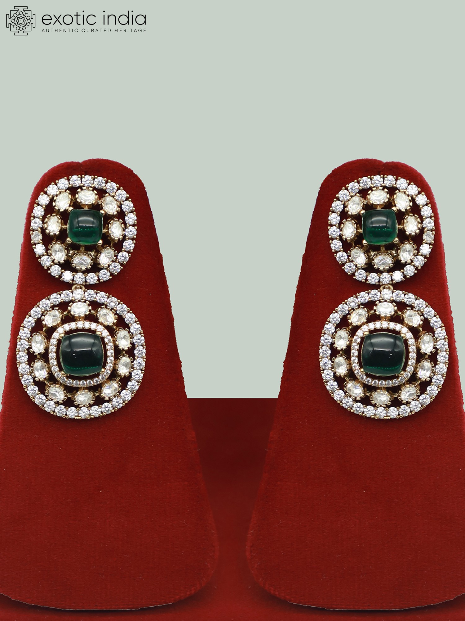 Traditional Moissanite Necklace Set With Doublet Stone And Antique Polish Earrings