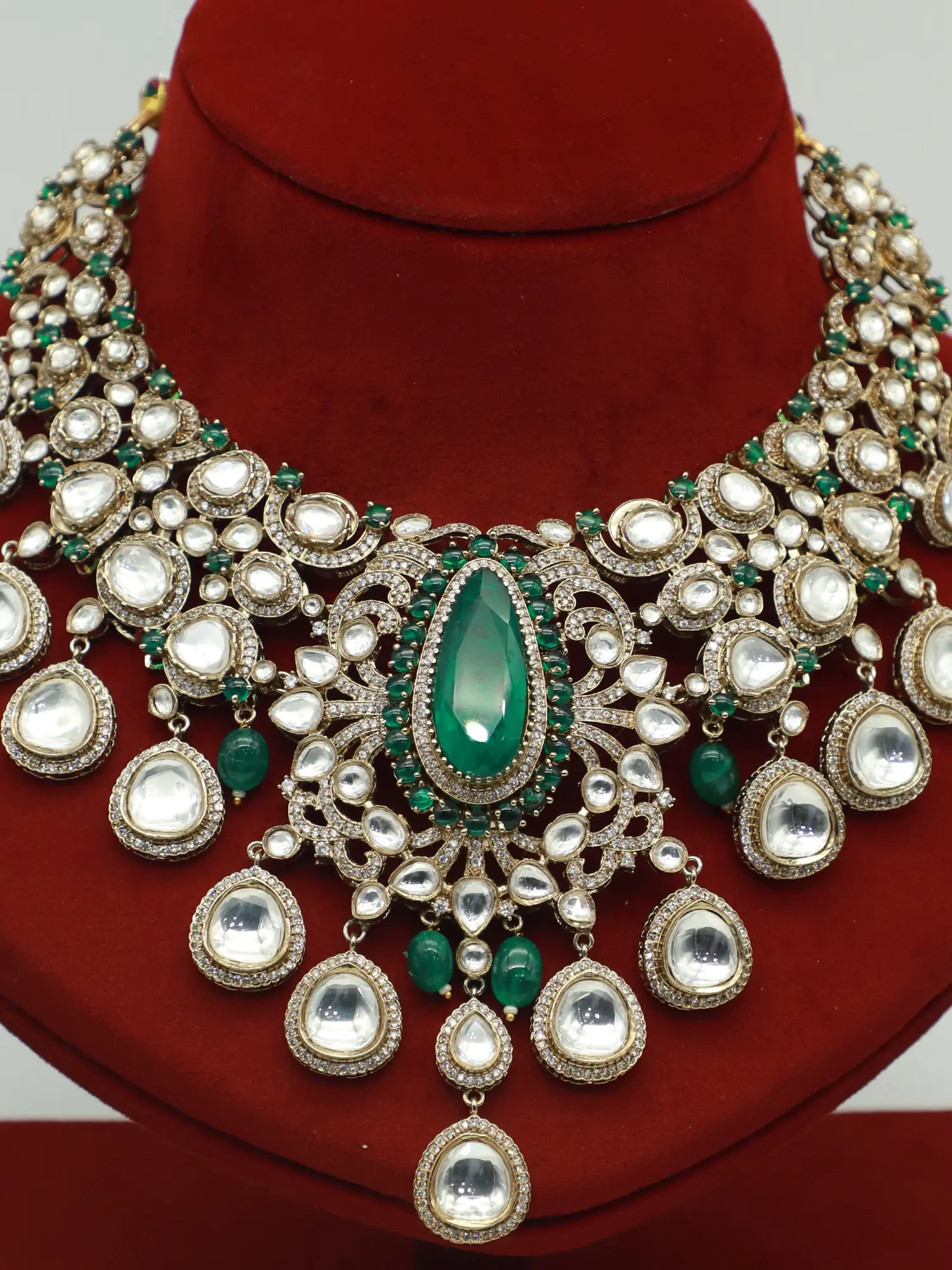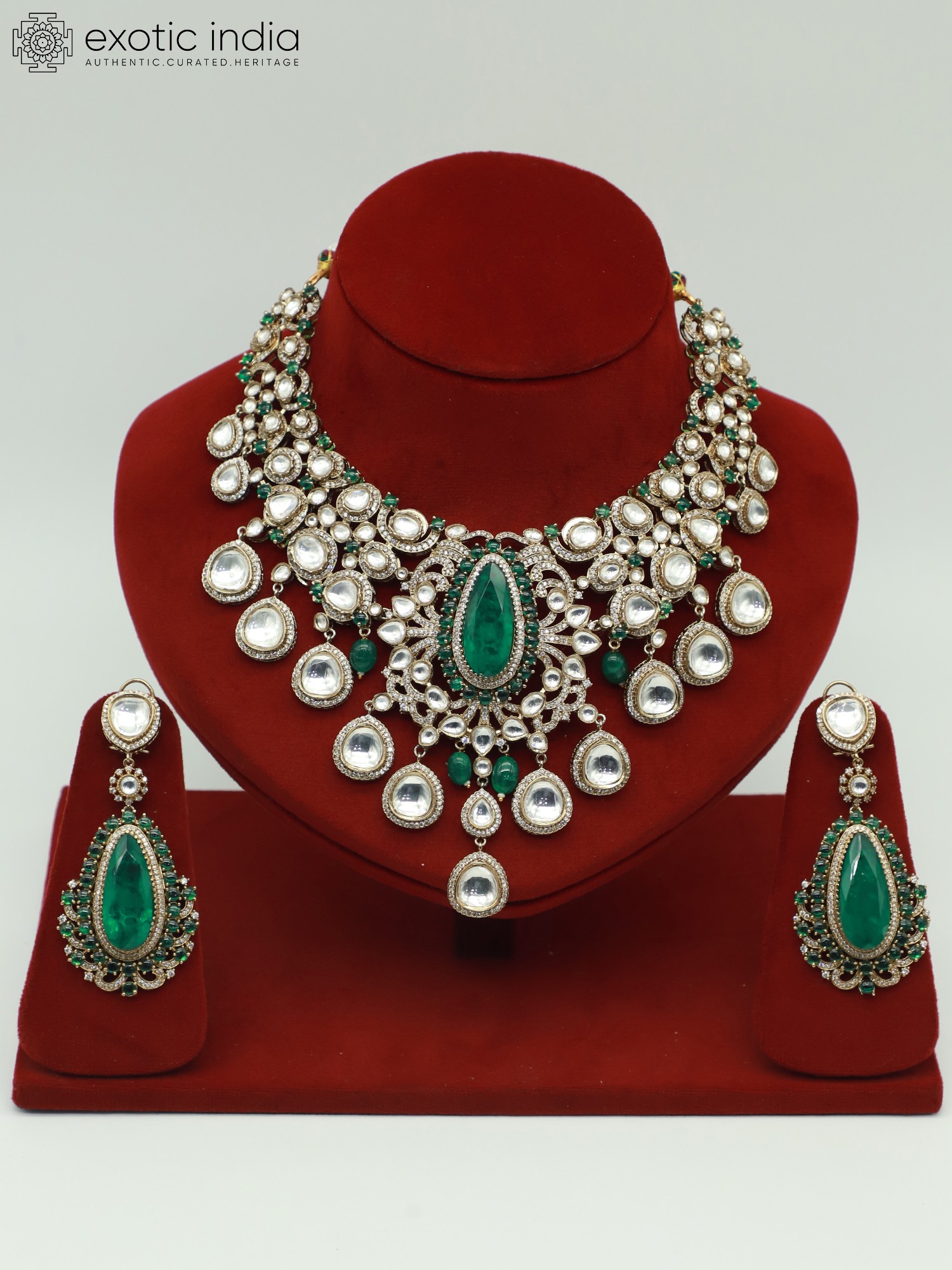 Designer Necklace & Earrings Set with Moissanite and Kundan