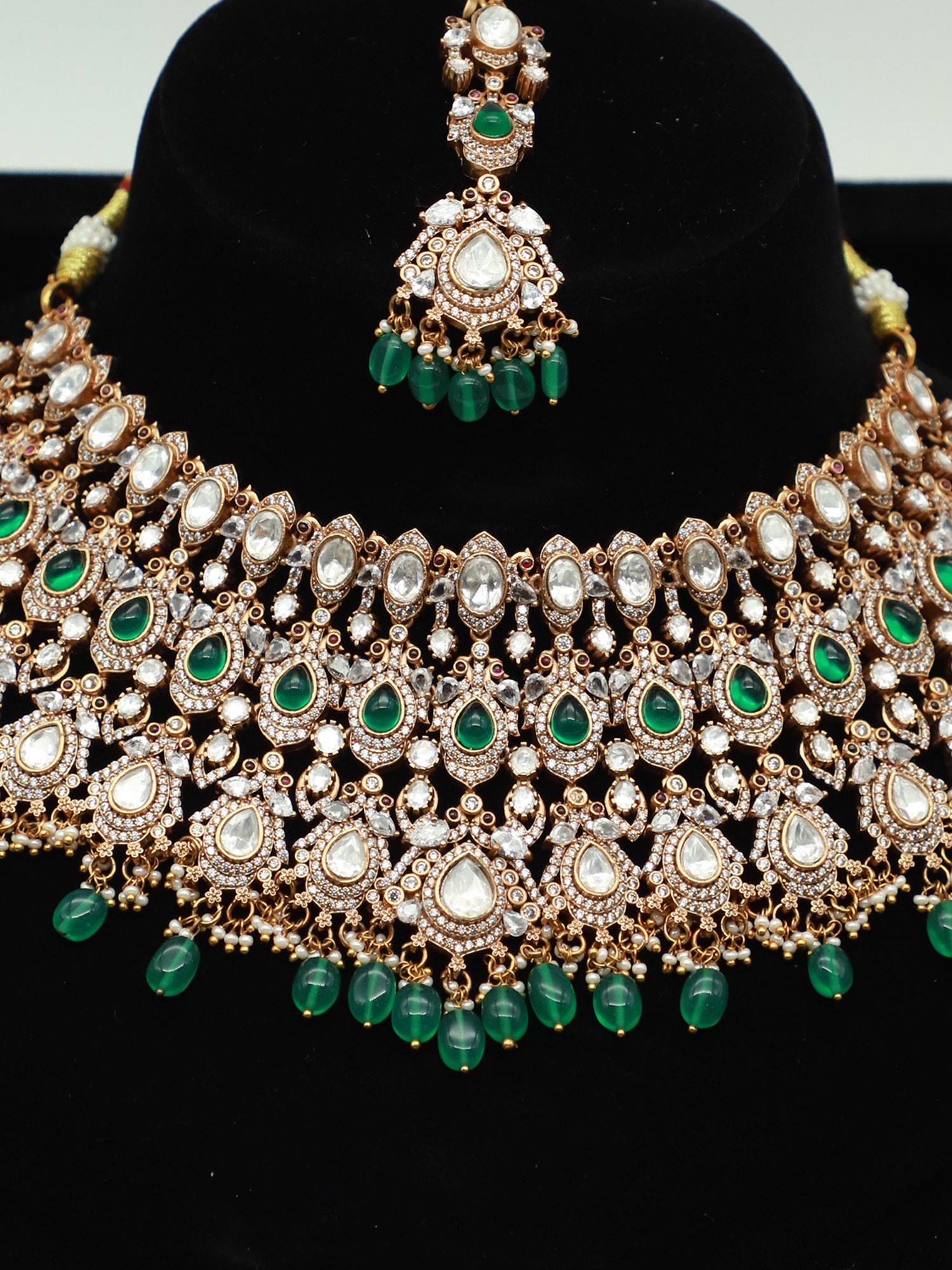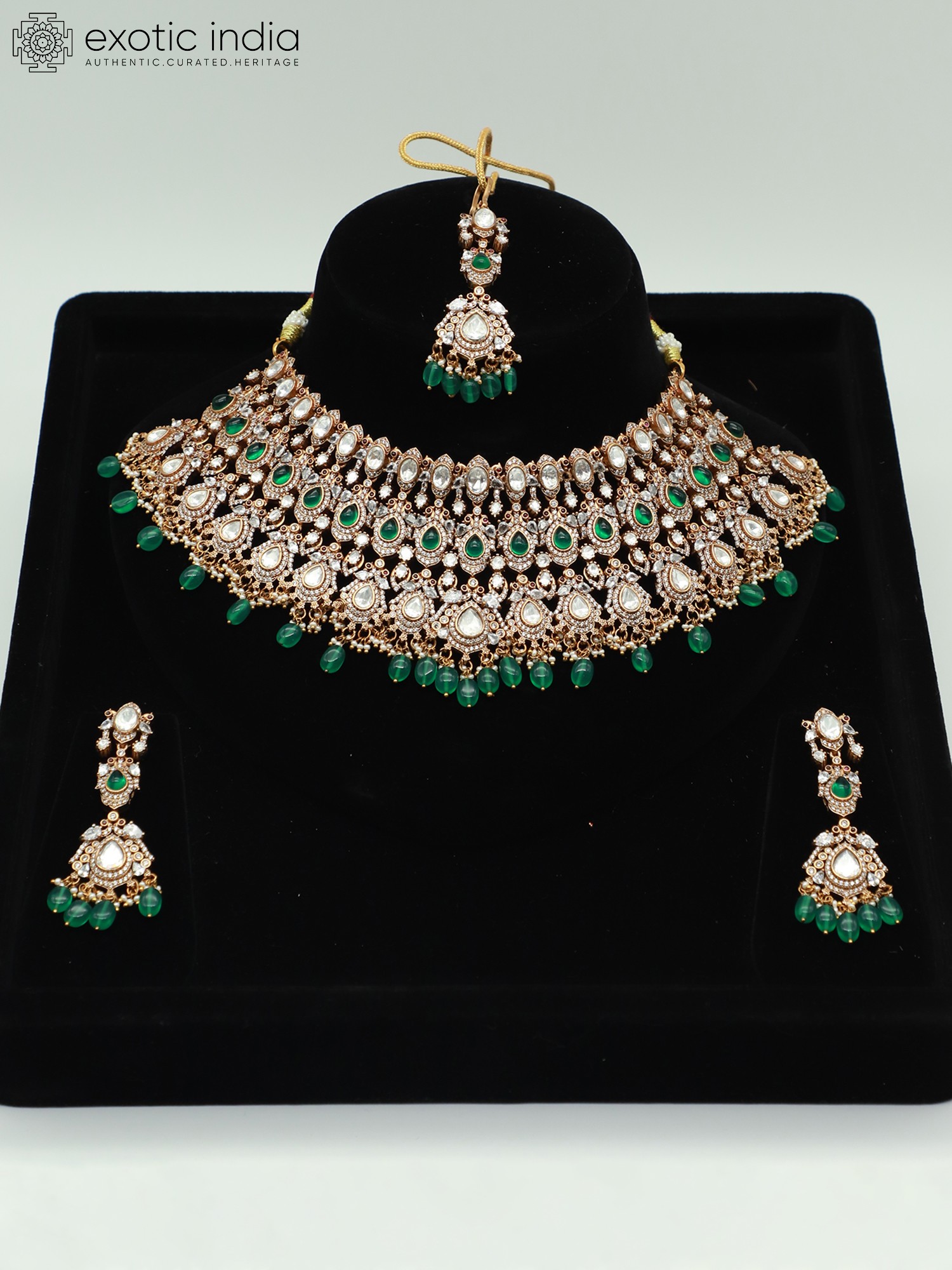 Necklace Length Including Adjustable : 16 Inch Front End Length : 6.5 Inch Earrings - 2.75 Inch Height X 1.4 Inch Width Mangtika - 6.6 Inch Length