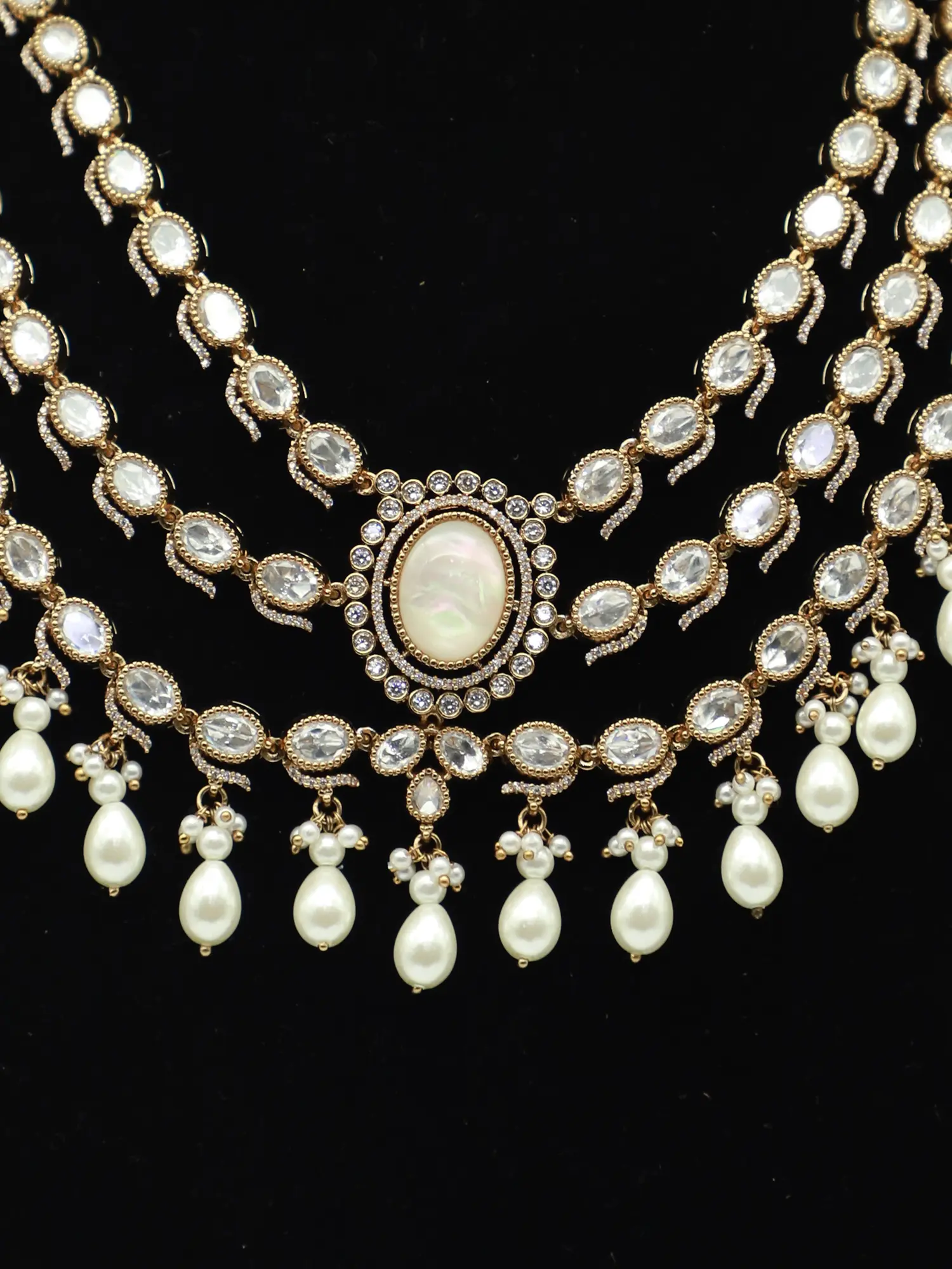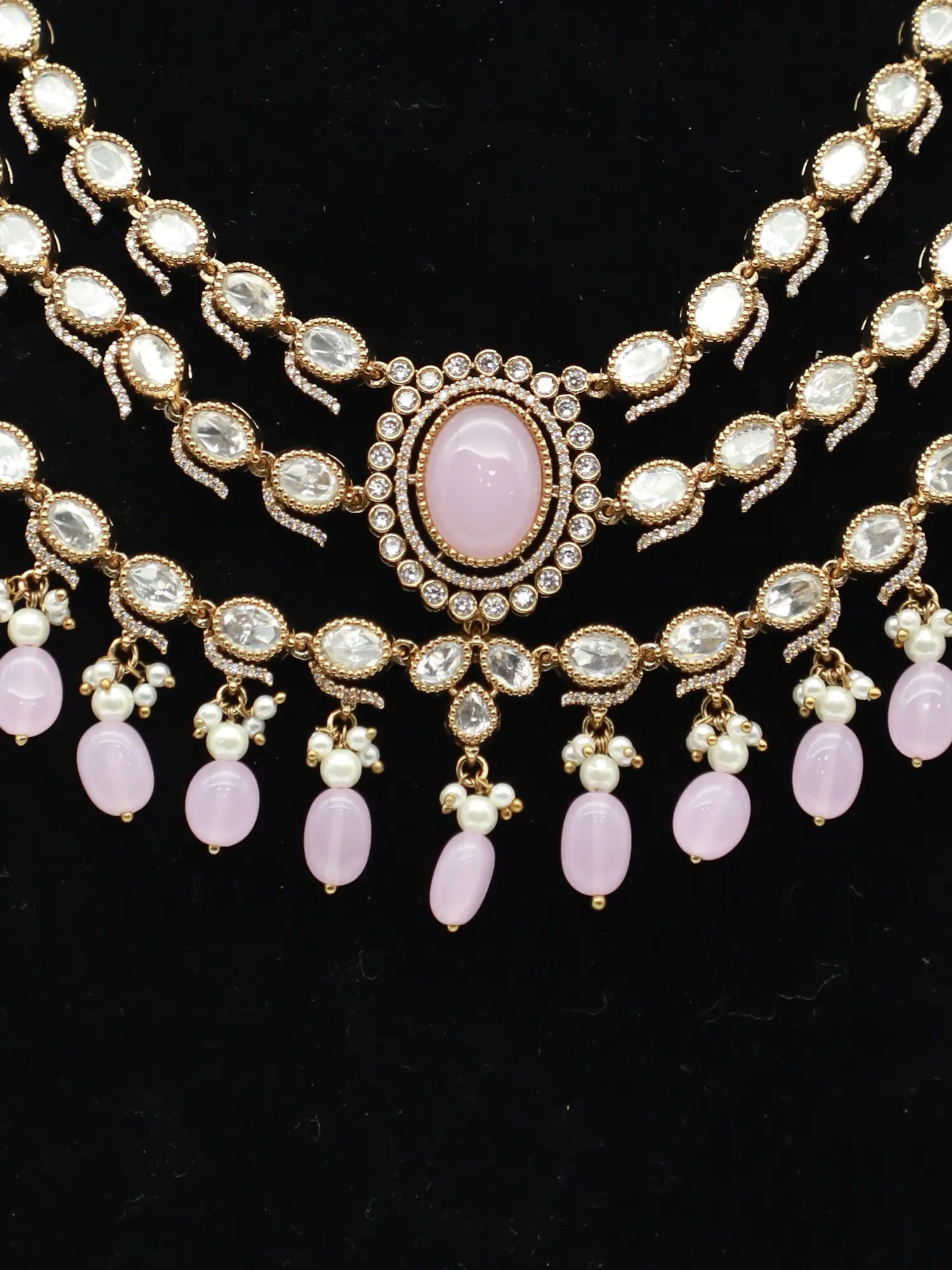 Floral Design Stone Studded and Beaded Choker and Earrings Set with Ring