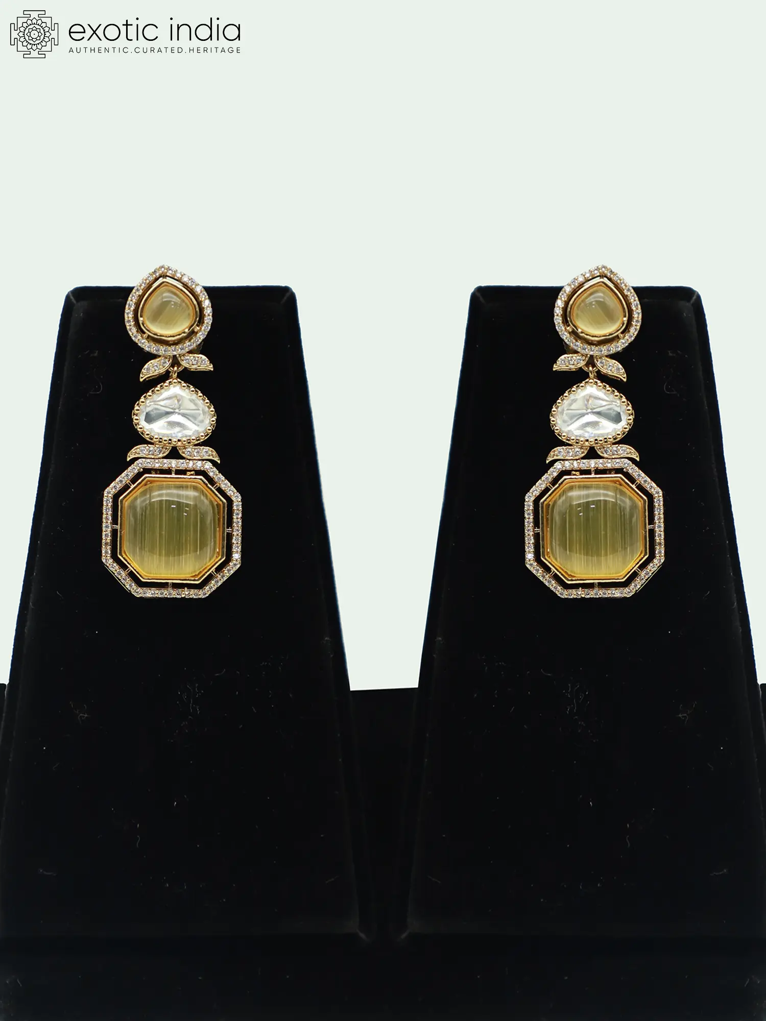 Monalisa With Moissanite Kundan Stone Studded Necklace Set With Earrings