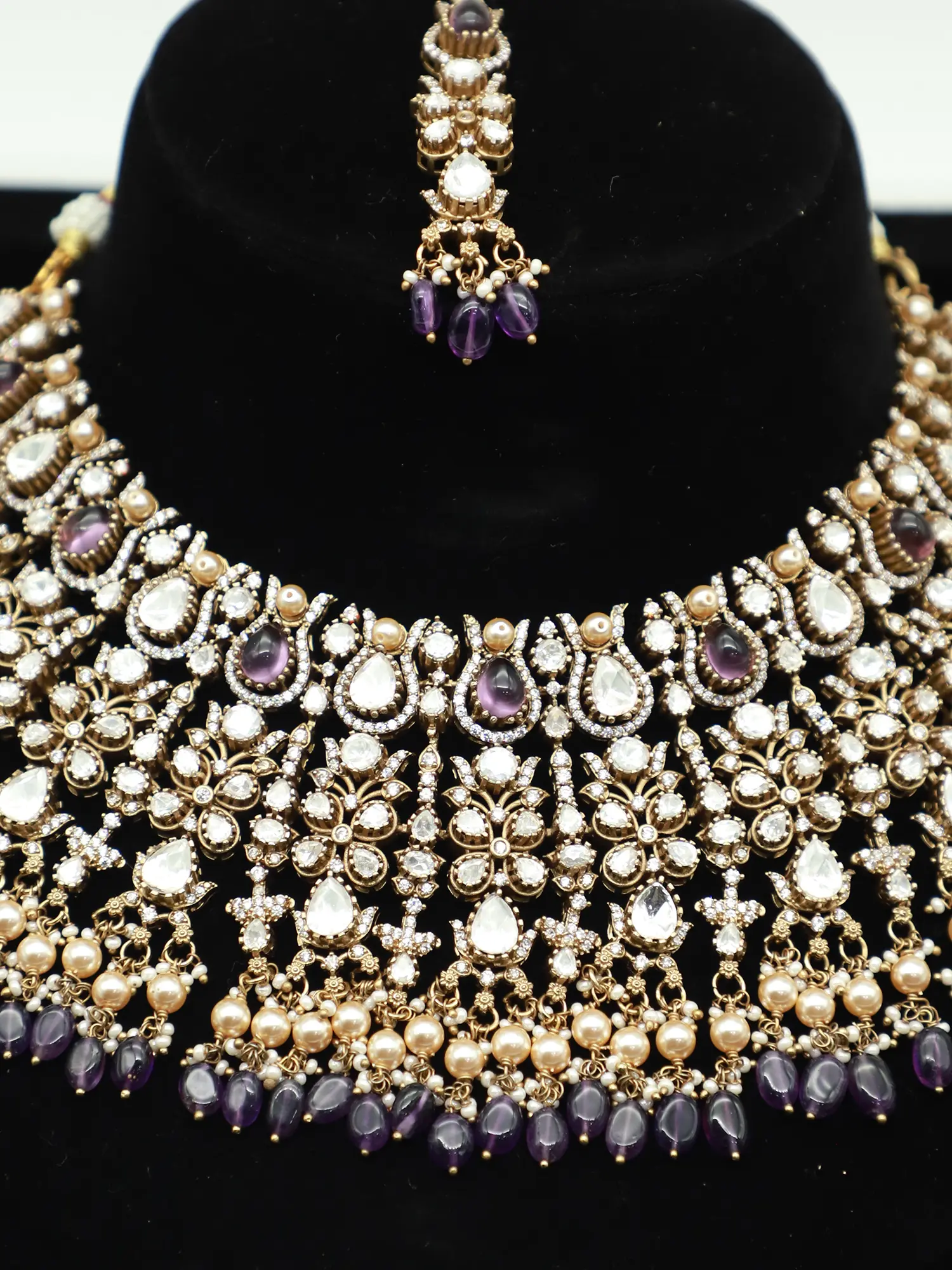 Crafted from high-quality brass, this jewelry set offers both durability and beauty. The brass provides a sturdy and long-lasting foundation for the intricate detailing, ensuring that this set will remain a treasured piece for years to come. The stones and beads are carefully selected for their brilliance and quality, enhancing the overall aesthetic appeal. With proper care, this jewelry set will retain its luster and elegance, making it a worthwhile investment for your collection.