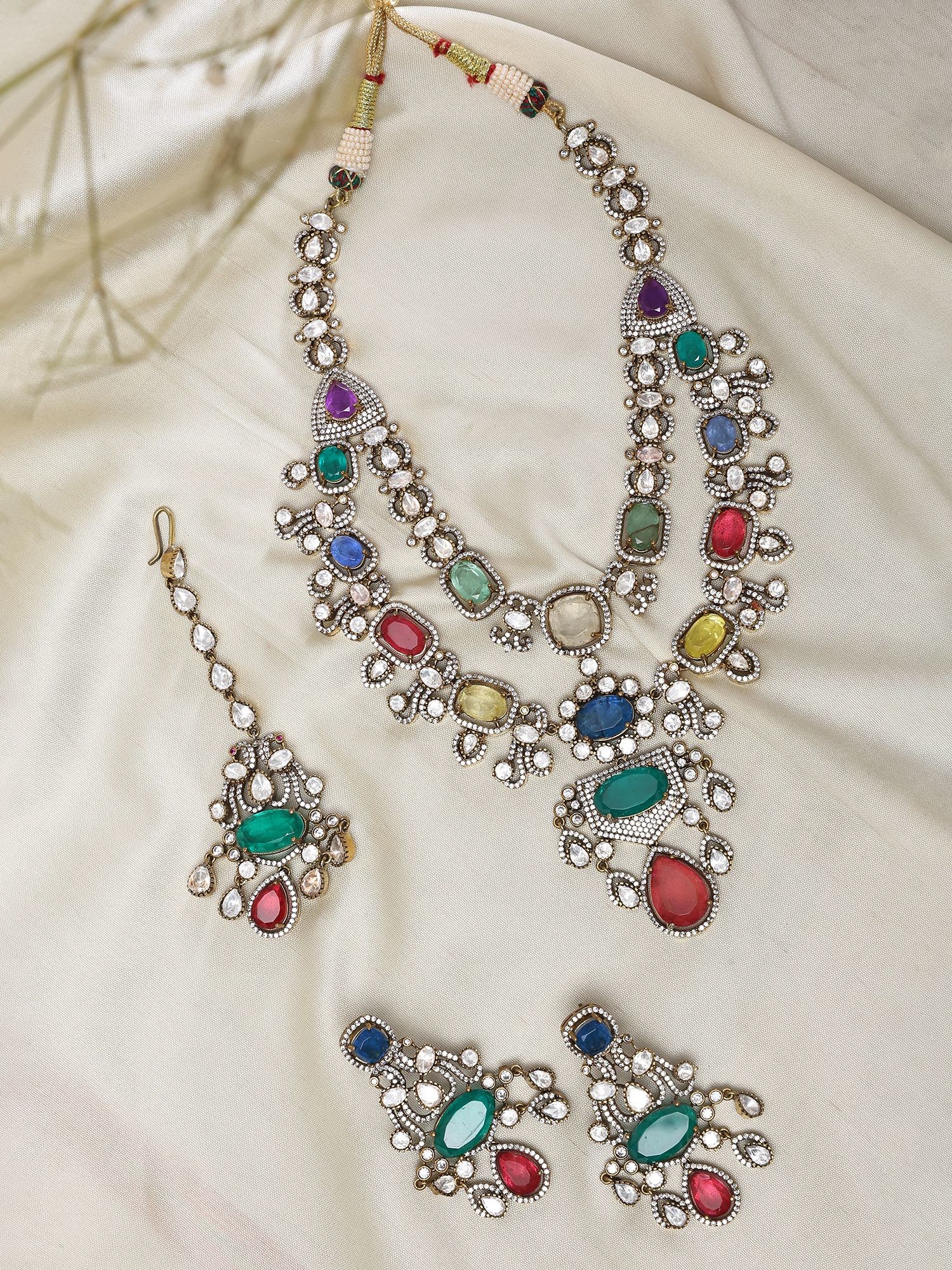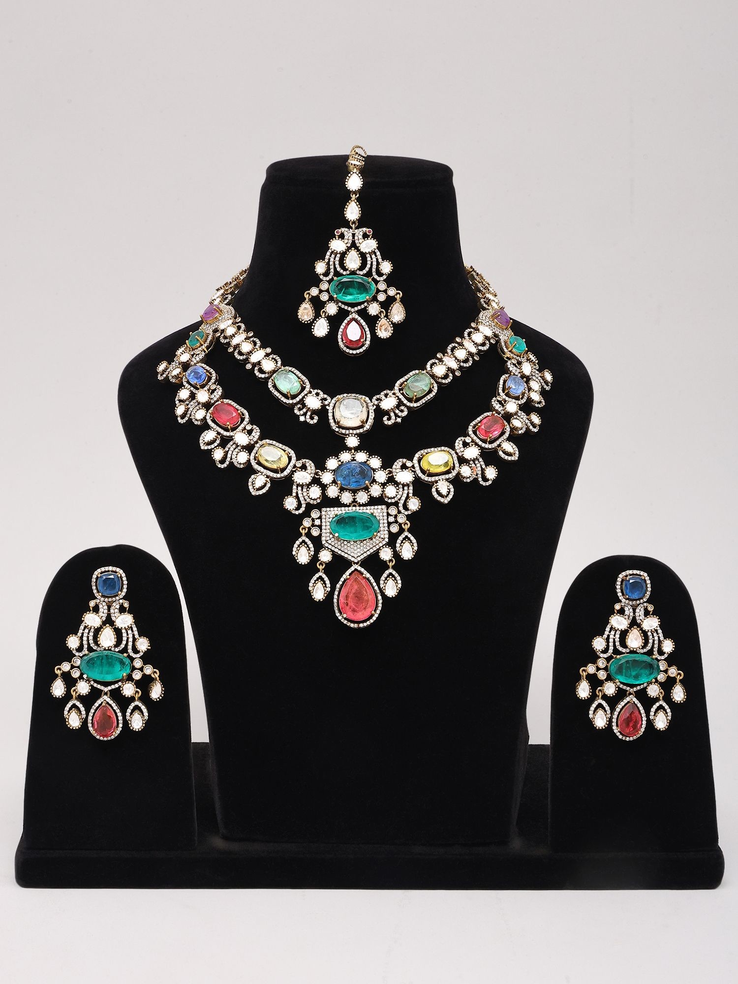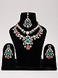 Multi-Color Kundan Stone Studded Necklace set with Maang Tikka and Earrings