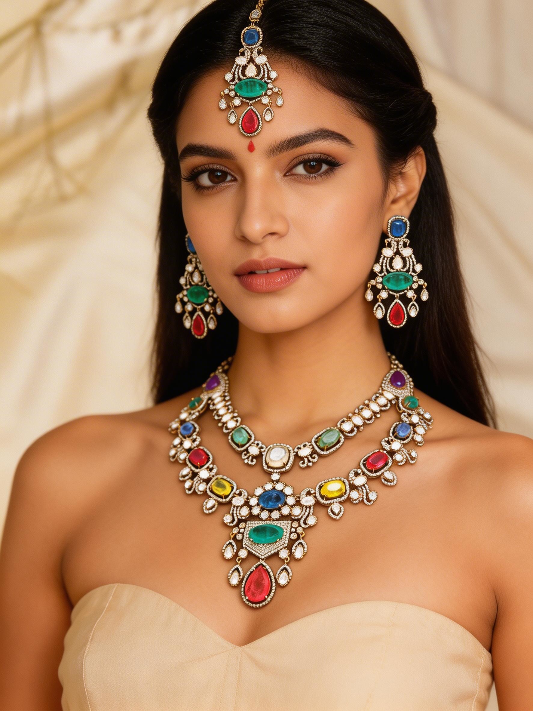 Necklace Length Including Adjustable : 19.5 Inch Front End Length : 8.7 Inch Earrings - 4.3 Inch Height X 1.7 Inch Width Mangtika -7.5 Inch Length