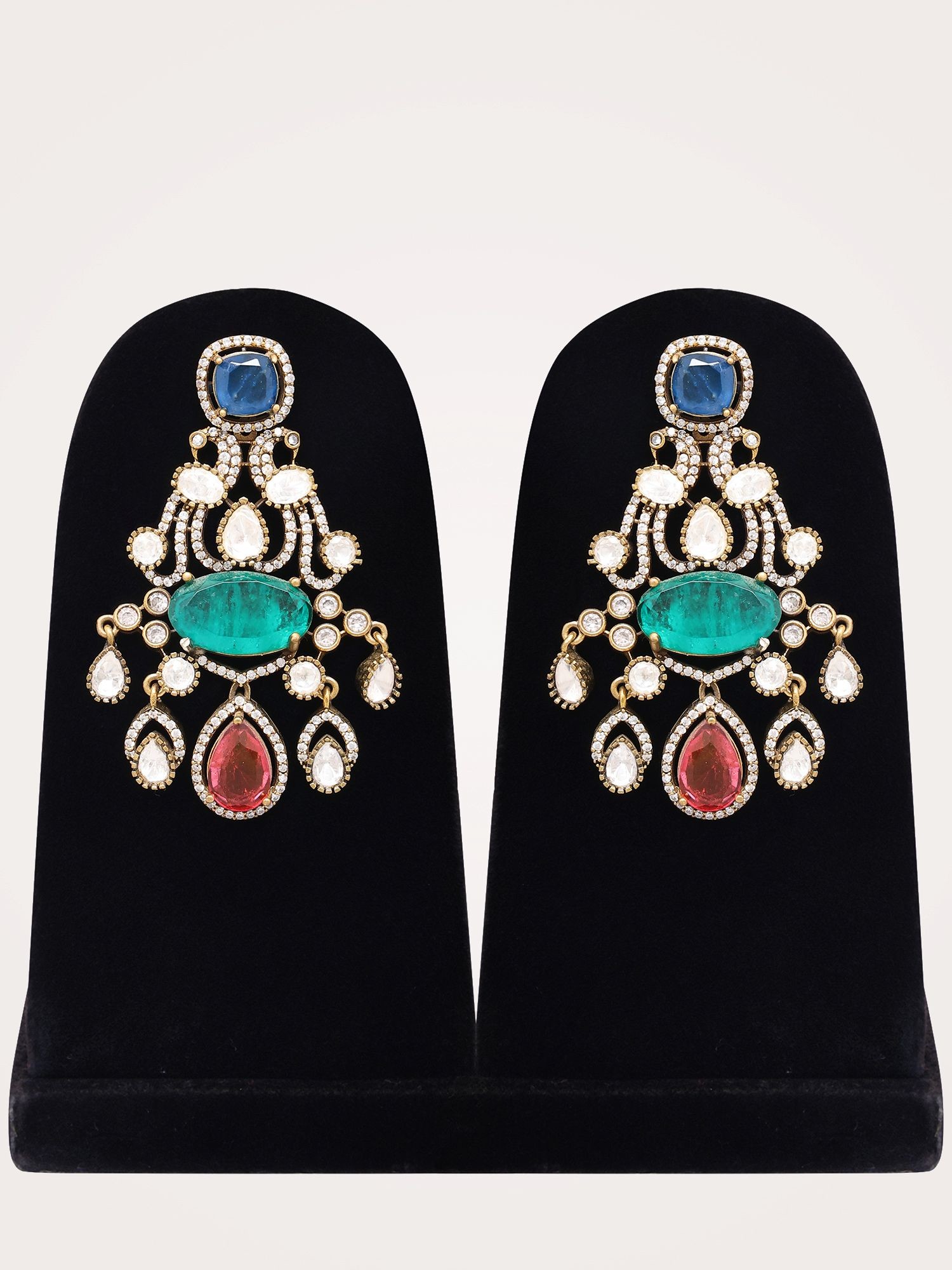 Multi-Colored Stone Studded Kundan Necklace Set with Statement Earrings