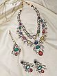 Multi-Colored Meenakari Kundan Necklace Set with Beaded Drops, Earrings & Maang Tikka