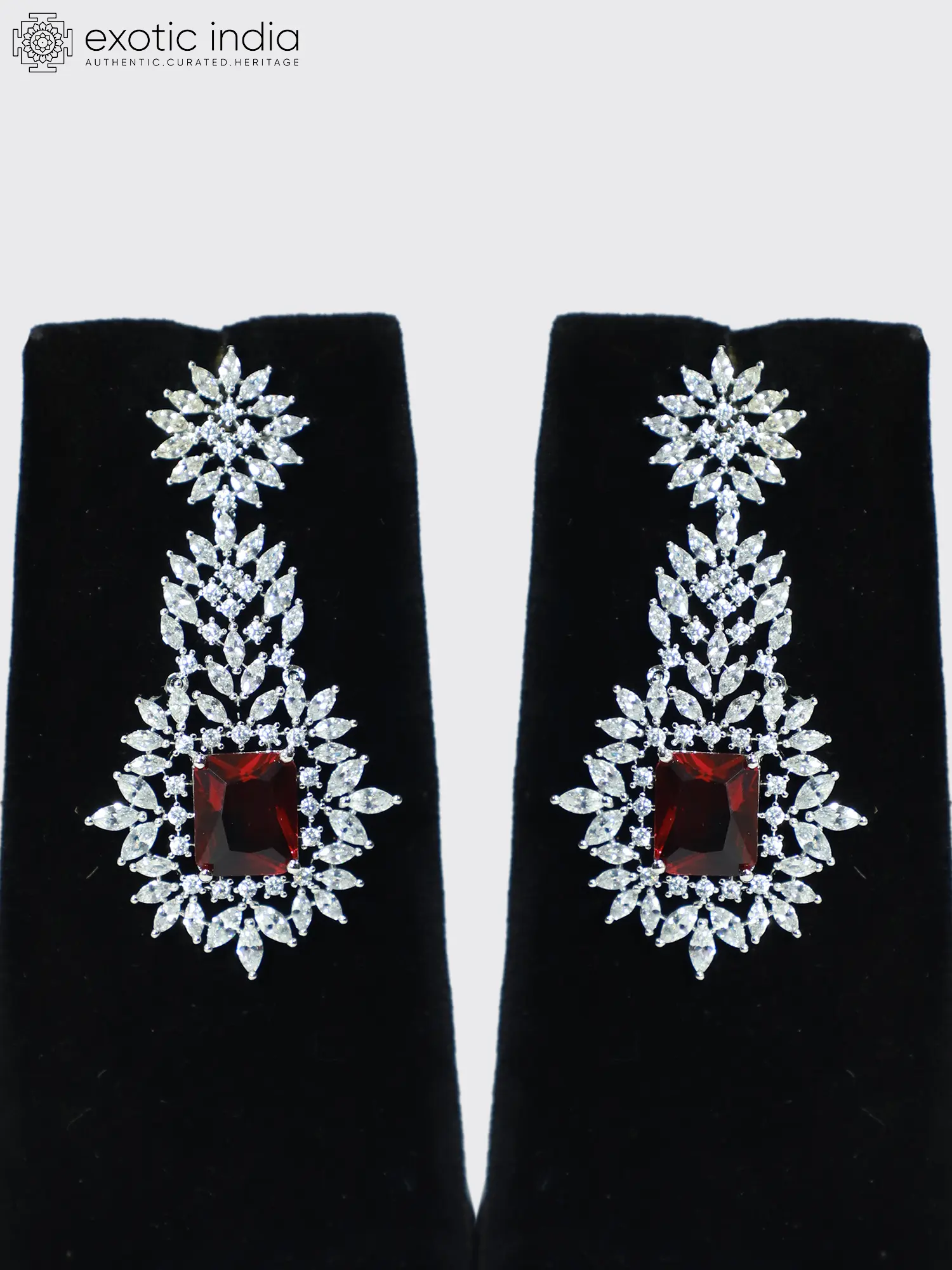 Leaf Design Elegant Stone Studded American Diamond Necklace Set With Earrings