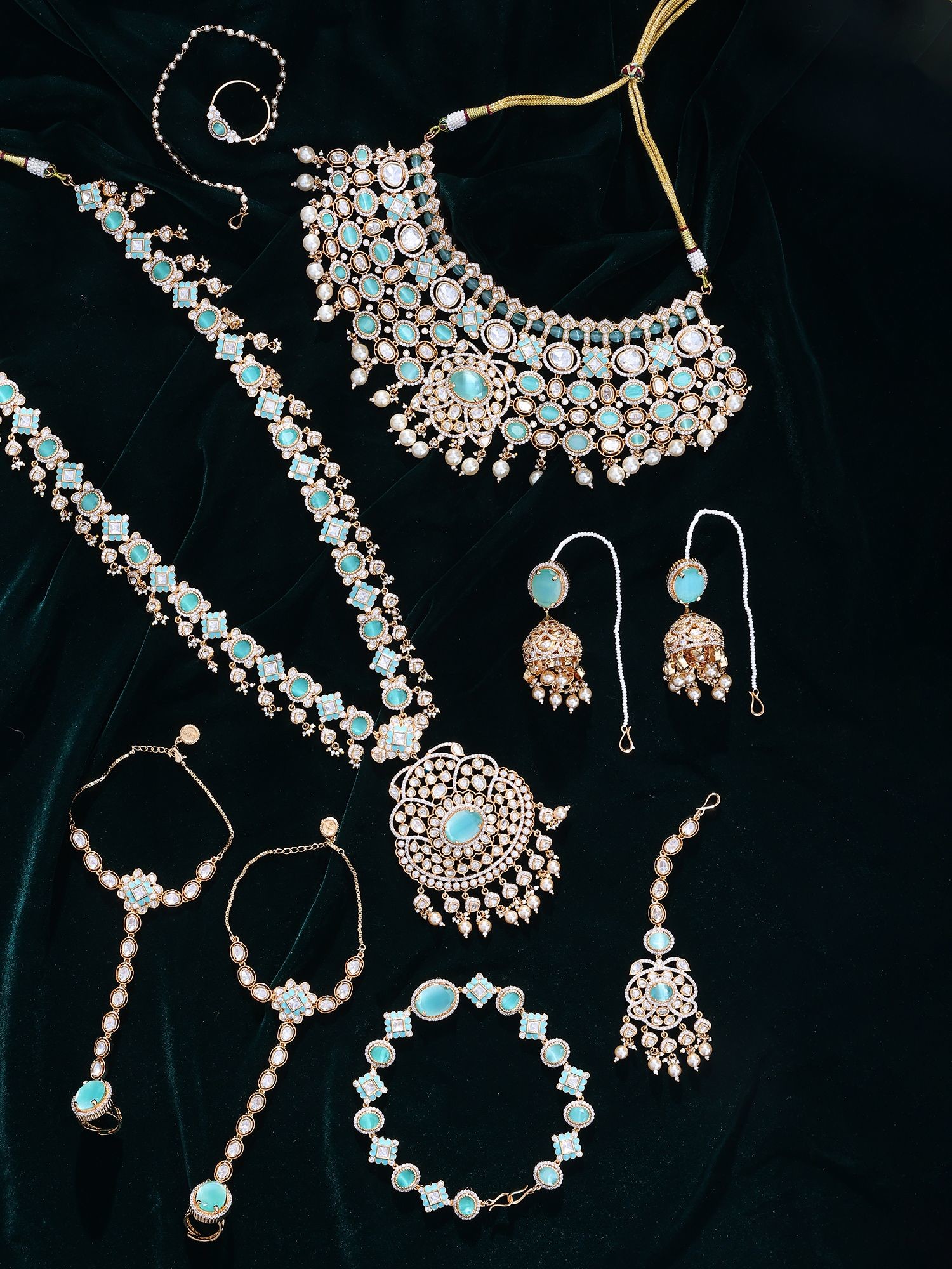 Complete Bridal Jewelry Set: Rani Haar, Haathphool, Nosering, Seesh Patti