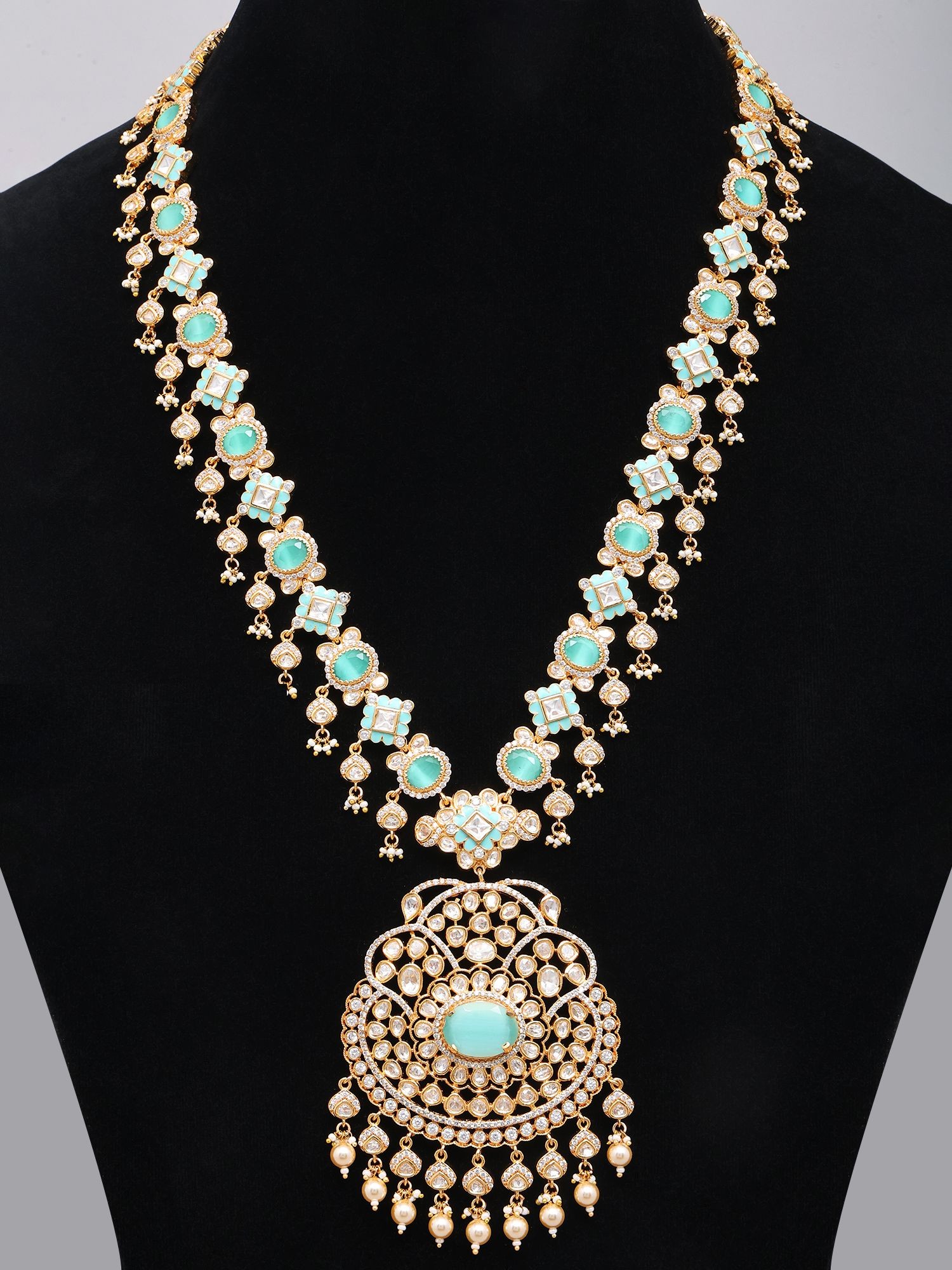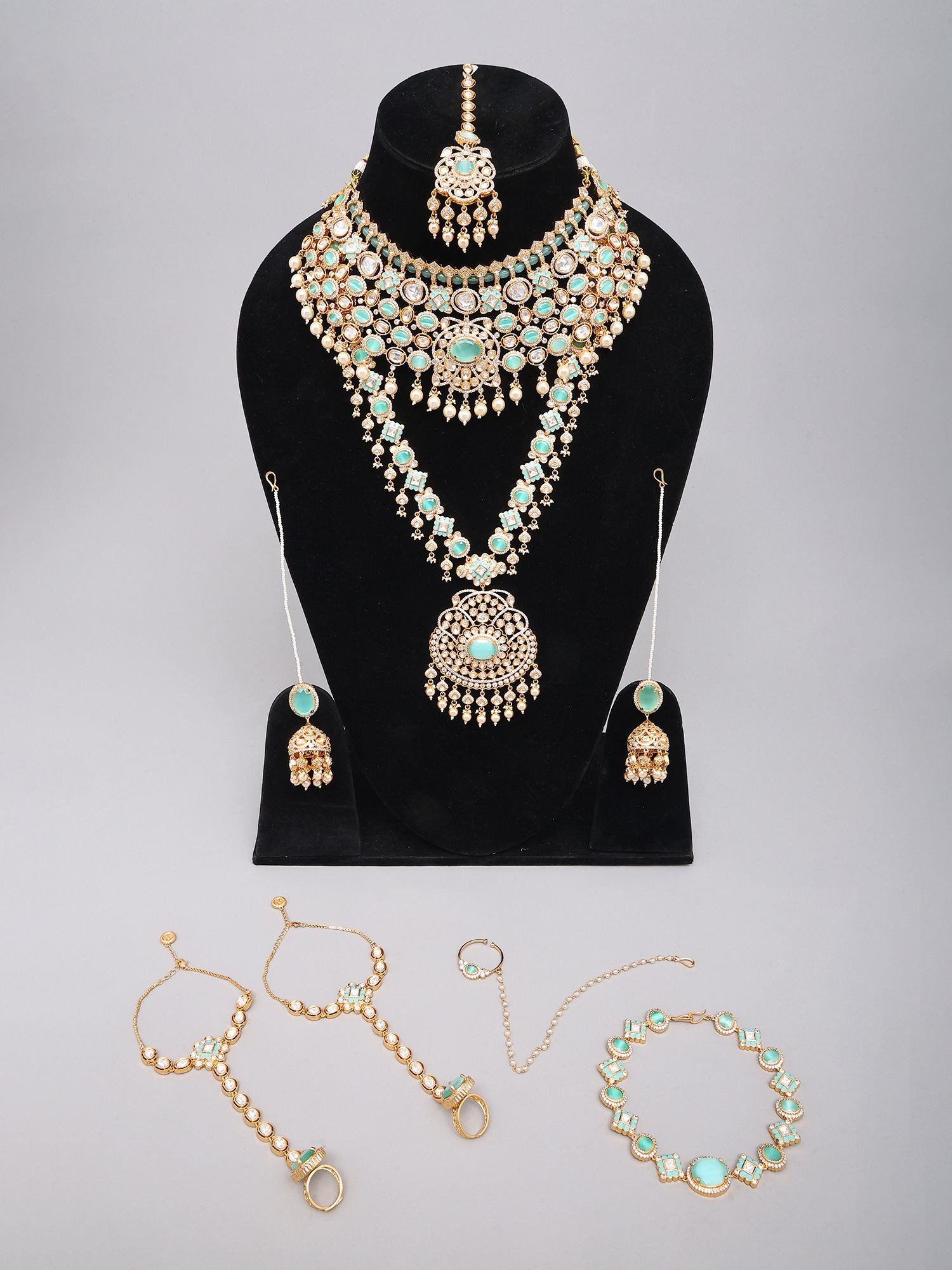 Green Kundan Stone Studded Bridal Wedding Set with Pearl Drop