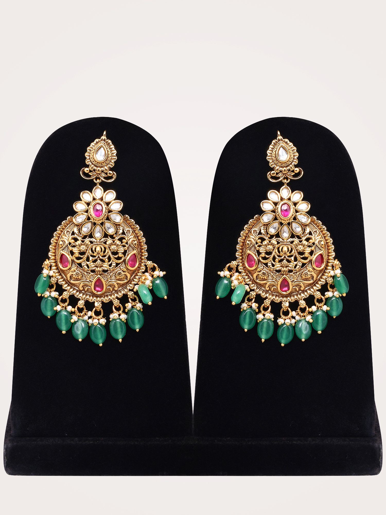 Adorned with vibrant green bead drops for a touch of color and elegance.