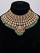 Green Polki Stone Bridal Choker Set with Earrings and Maang Tikka