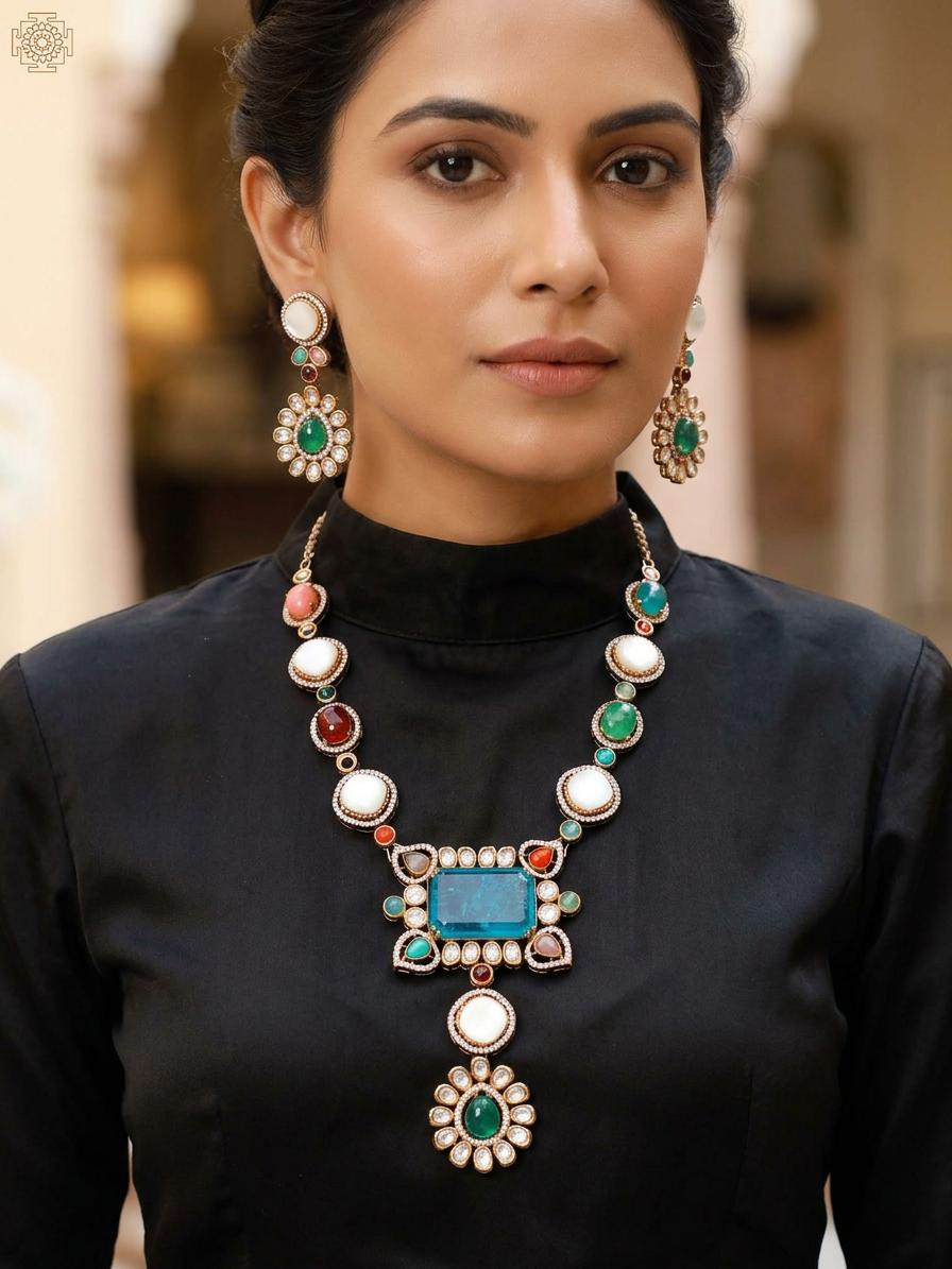 To maintain the brilliance of your necklace set, store it in a clean, dry place away from direct sunlight and moisture. Avoid contact with perfumes, lotions, and other chemicals that could damage the stones or the metal. Gently wipe the jewelry with a soft cloth after each use to remove any dirt or dust. With proper care, your necklace set will remain a beautiful and cherished addition to your jewelry collection for many years to come. Enjoy the timeless beauty and elegance of this exceptional piece!