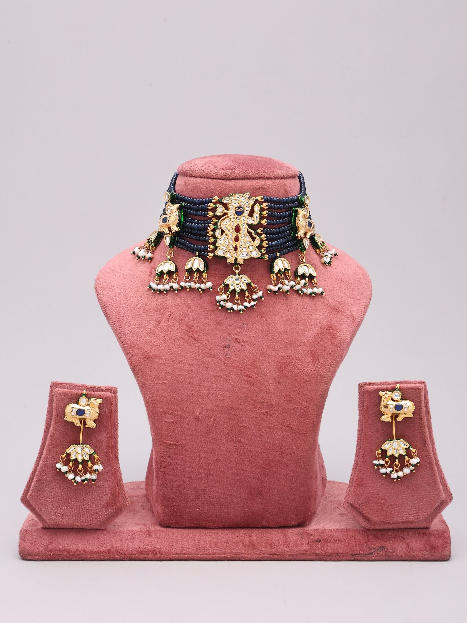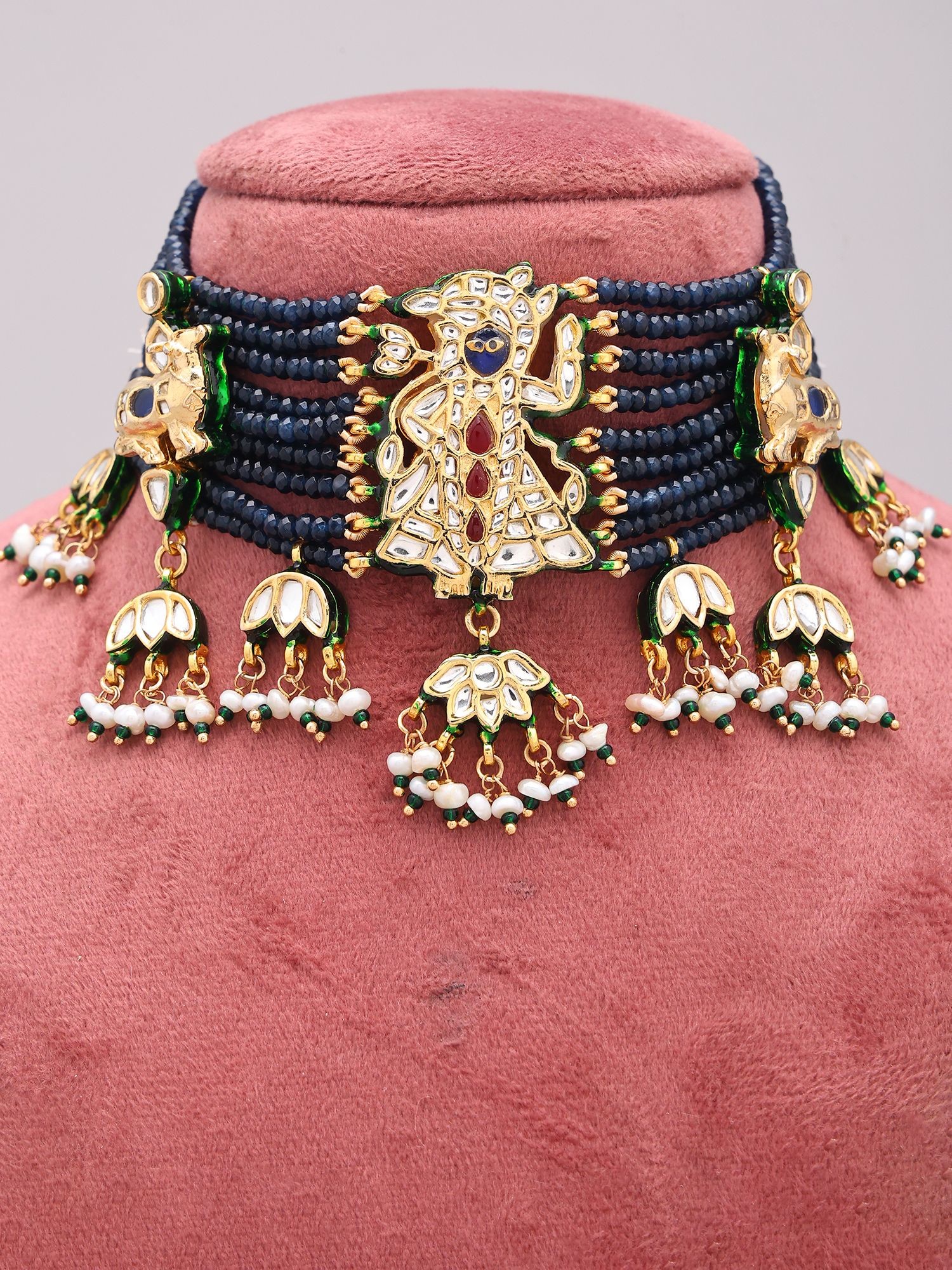Multi Strand Lord Krishna Necklace and Earring Set with Kundan Work