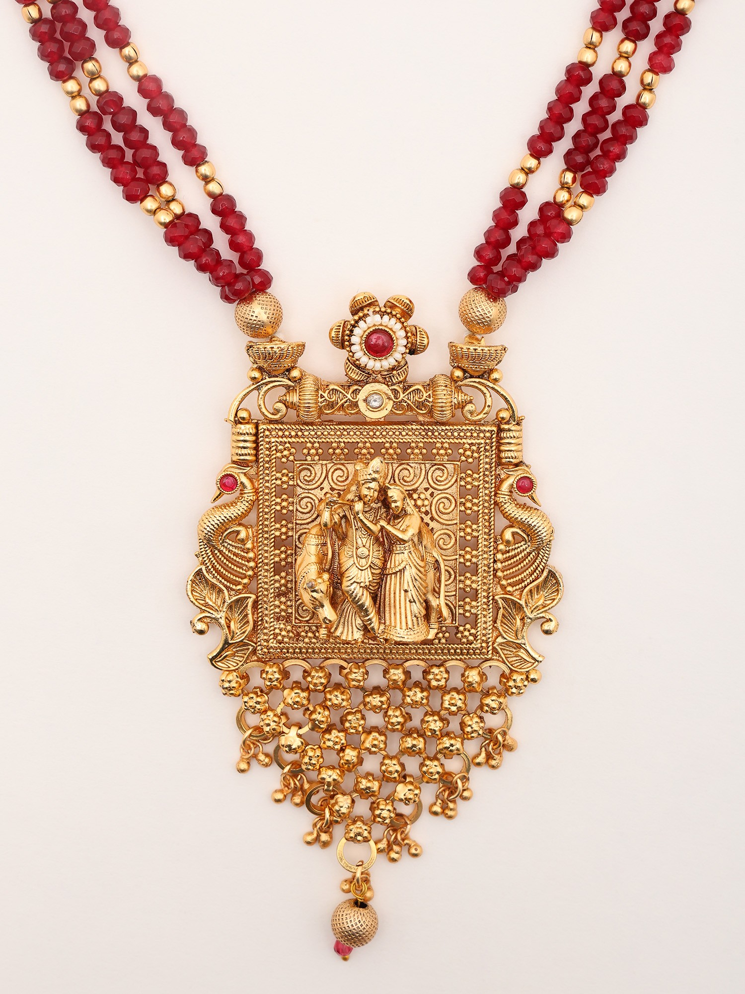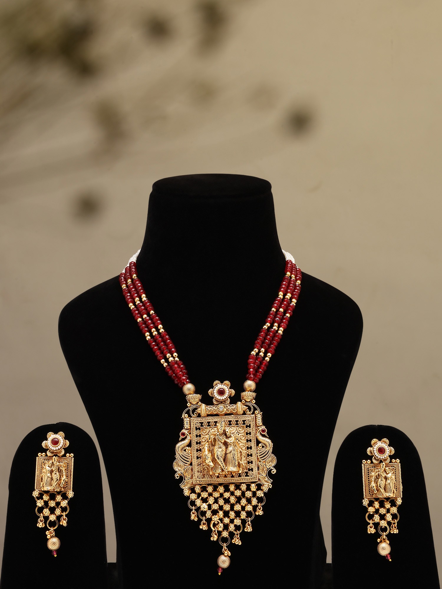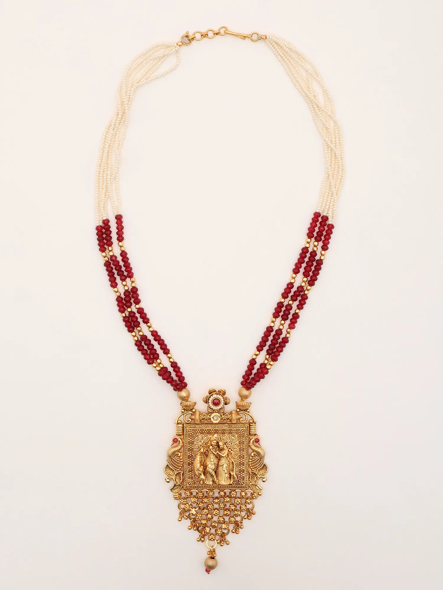 Beaded Multi Strand Long Radha Krishna Necklace and Earring Set