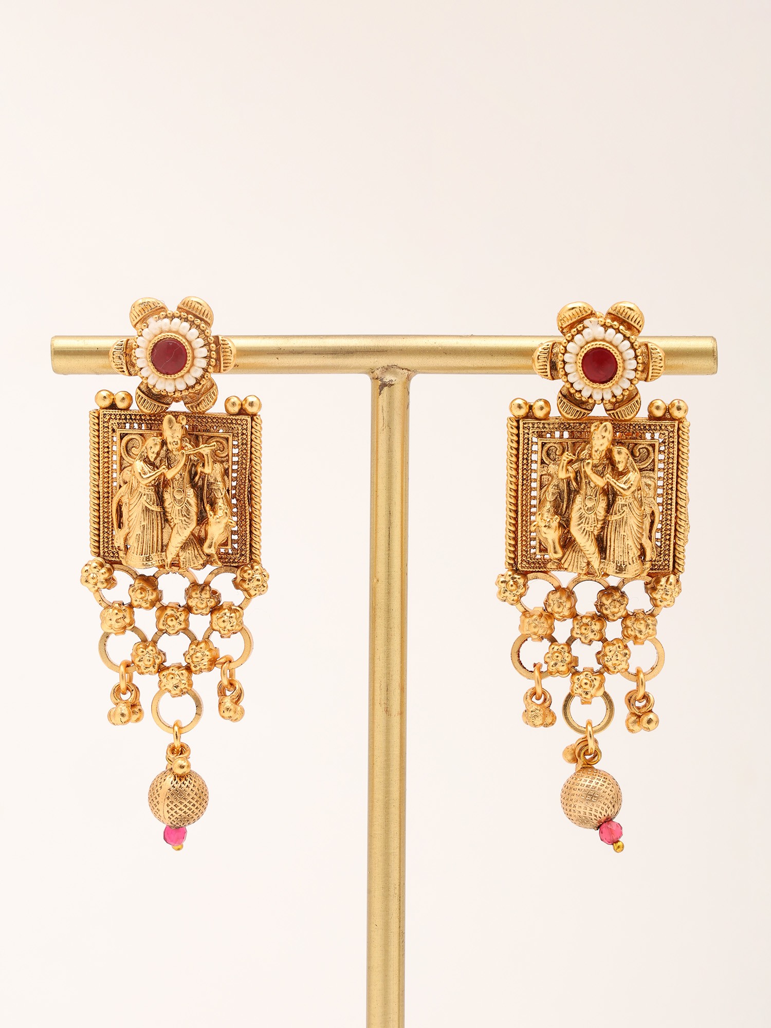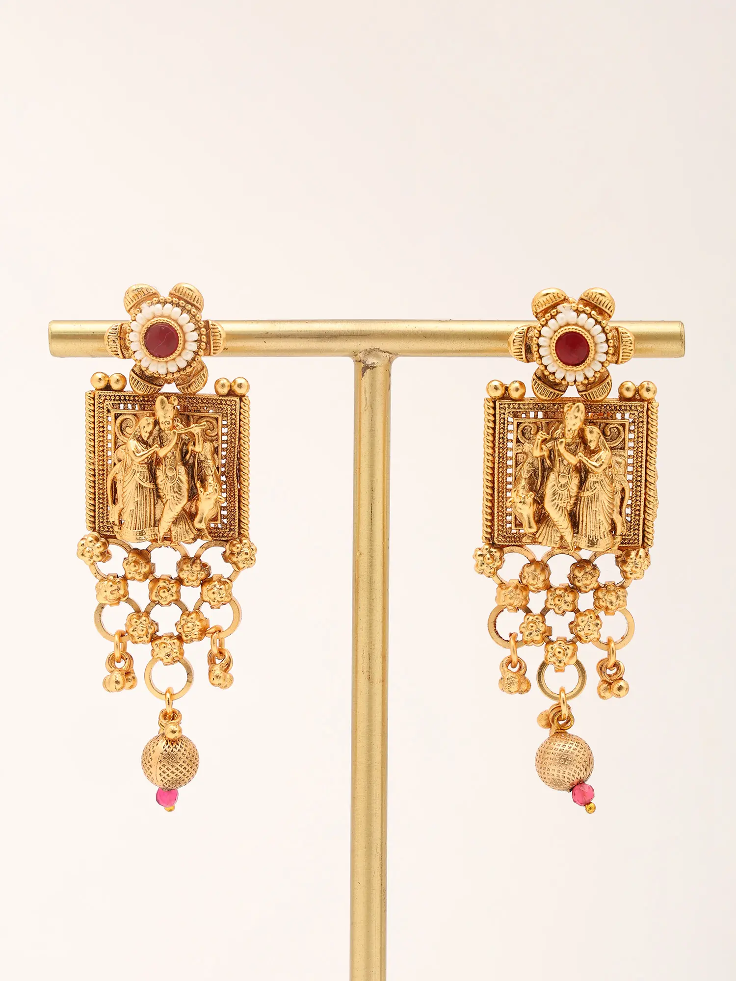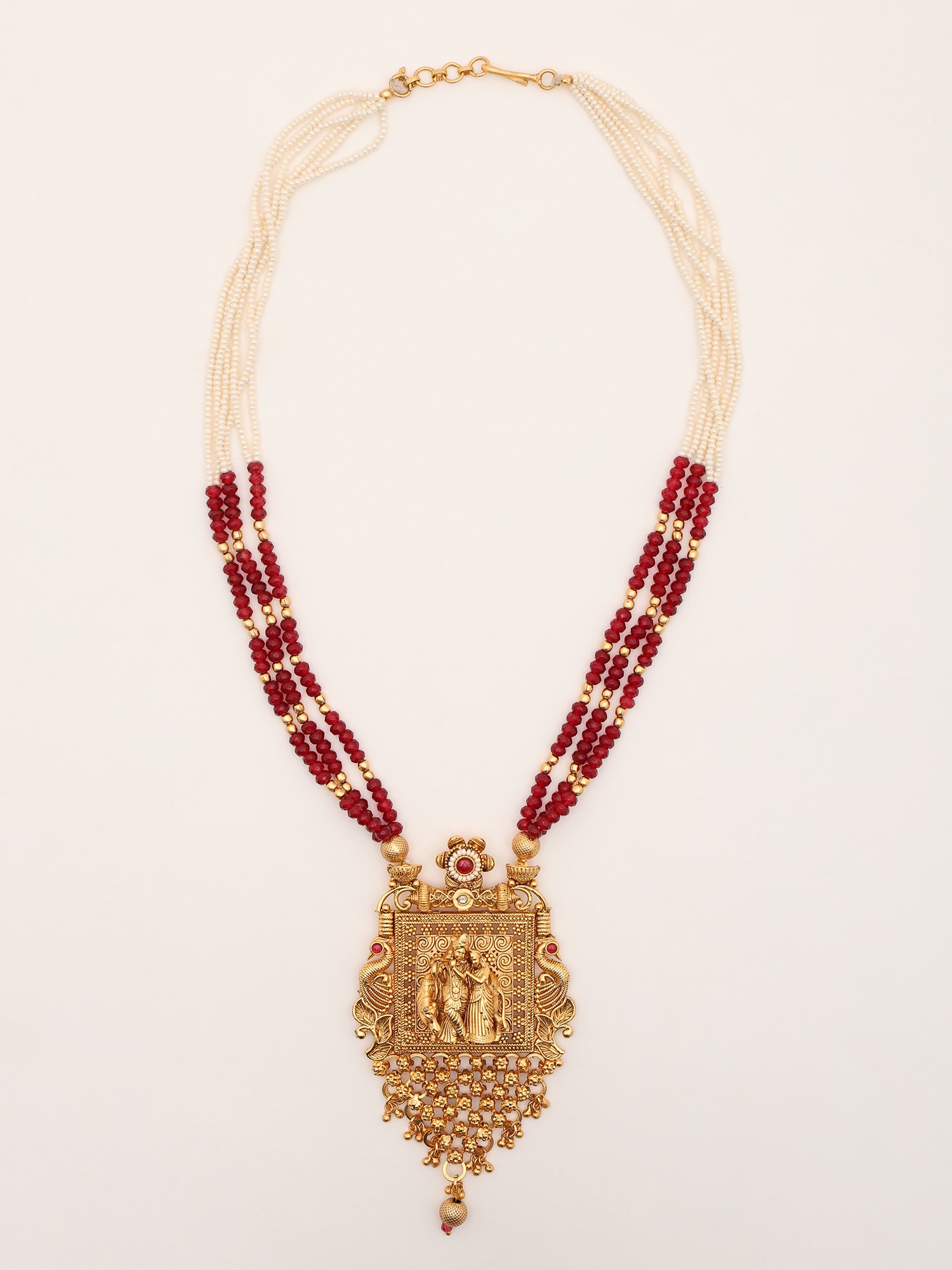 Beaded Multi Strand Long Radha Krishna Necklace and Earring Set