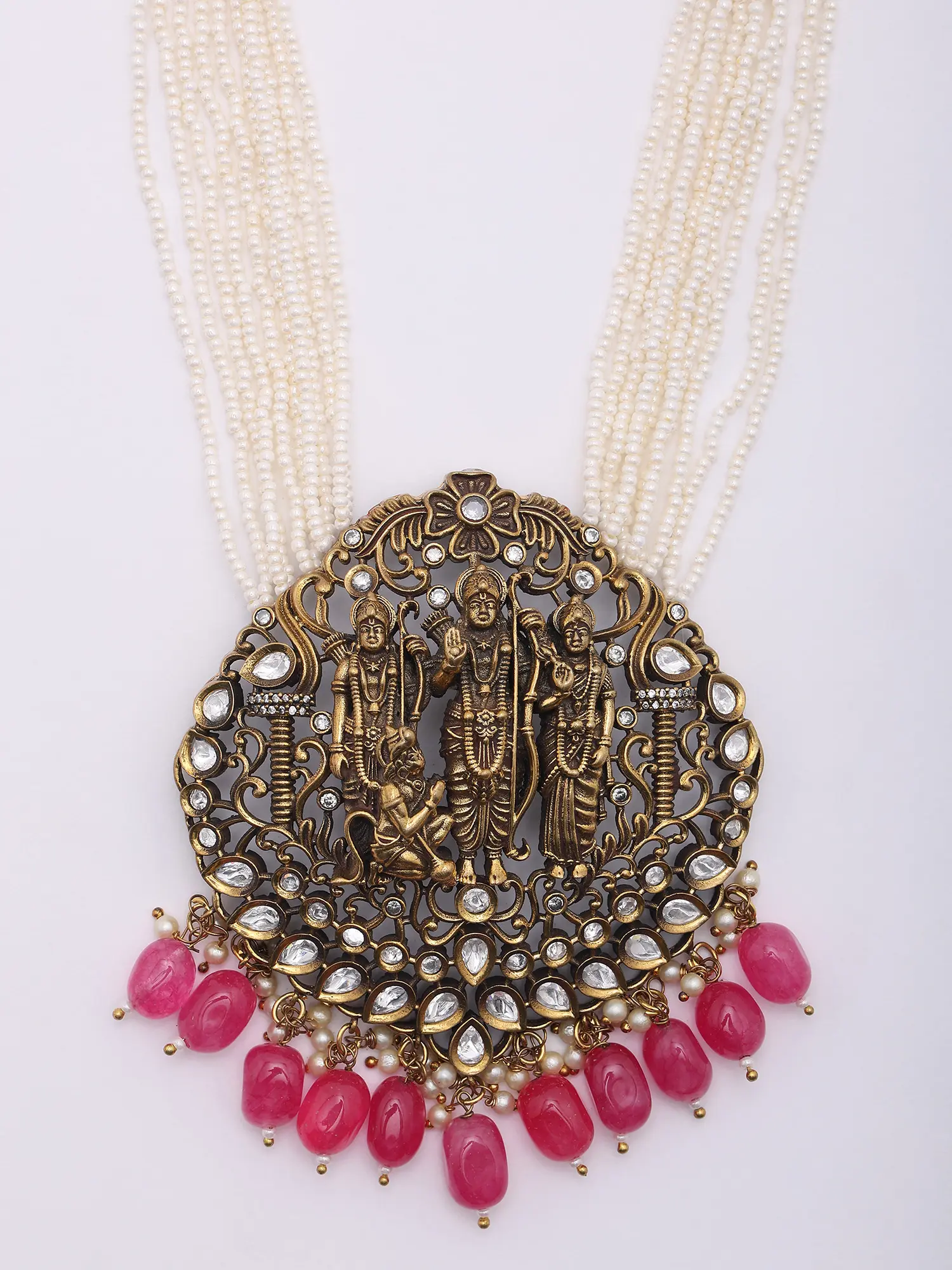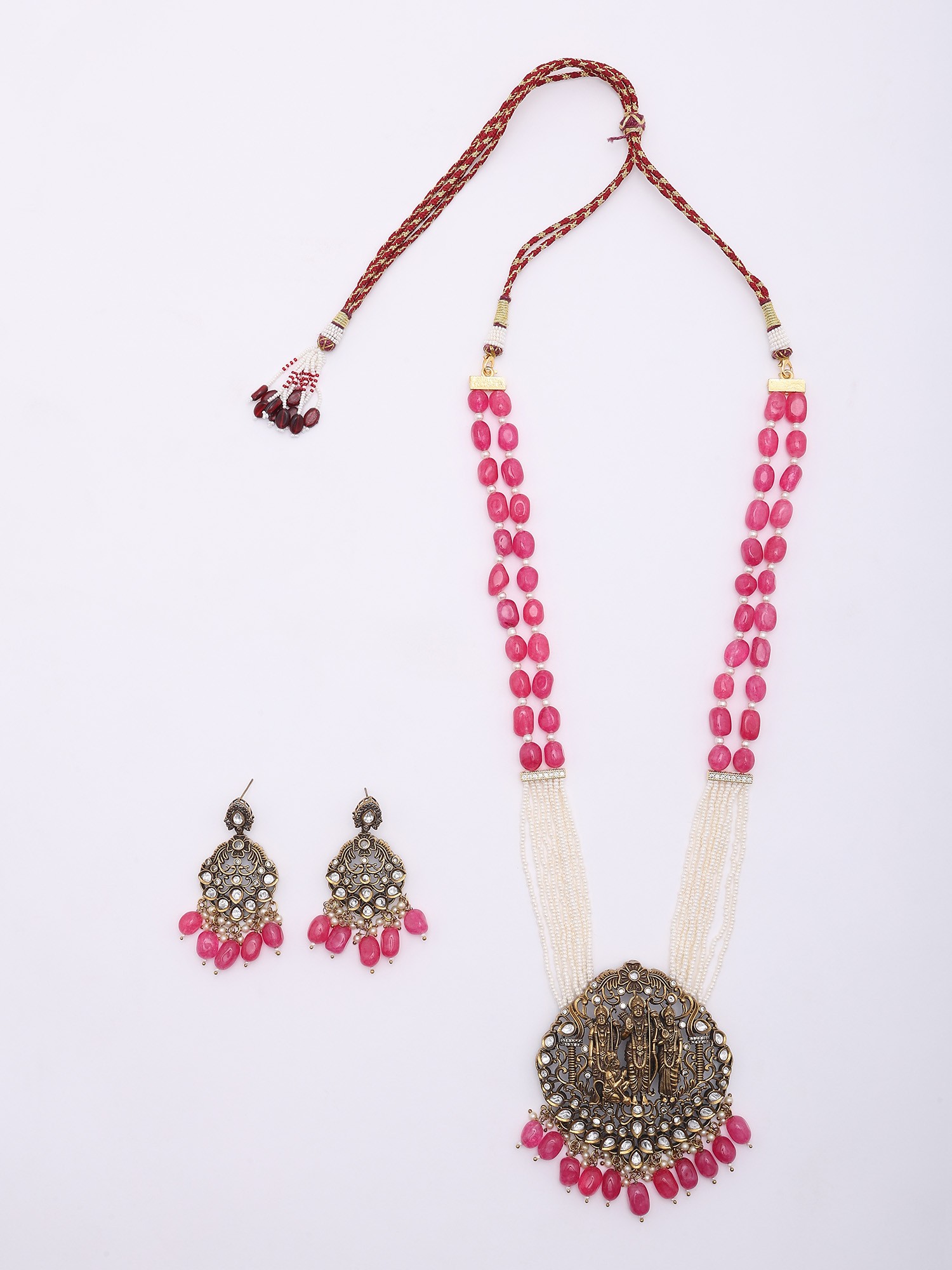 Floral Multicolor-Stone Studded Necklace Set with Earrings