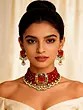 Kundan Lacquer Necklace Set with Emerald and Red Gemstone Drops
