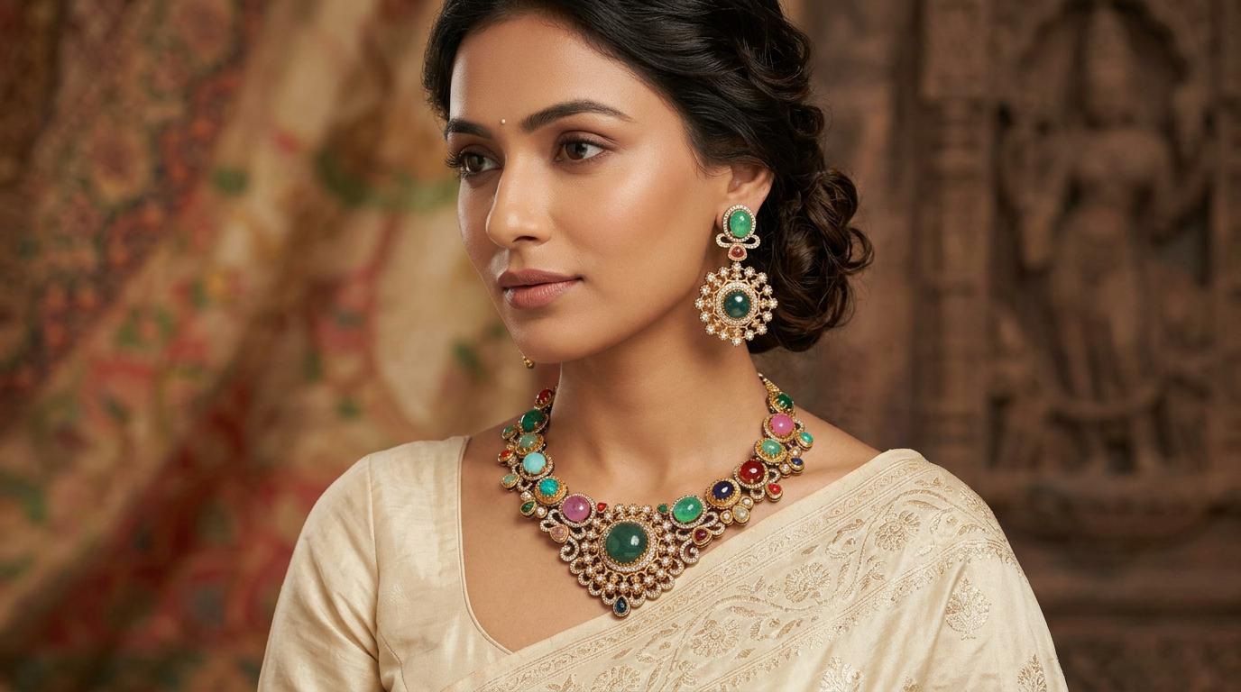 Multicolor Stone Studded Necklace Set With Earrings | Indian Fashion Jewelry