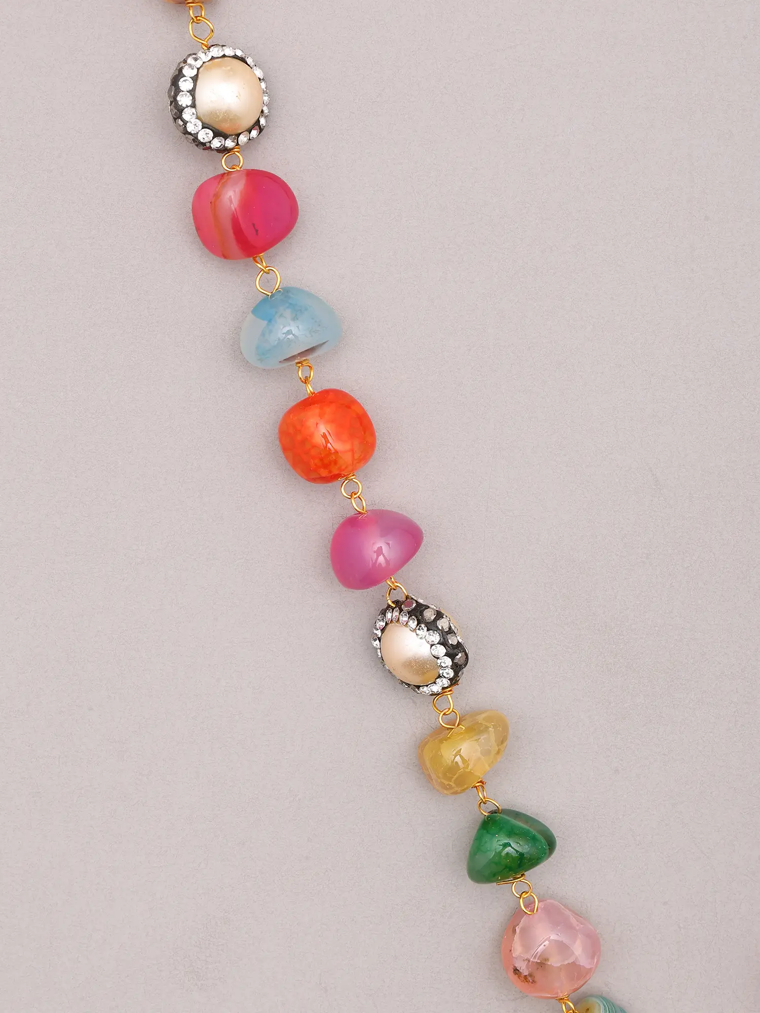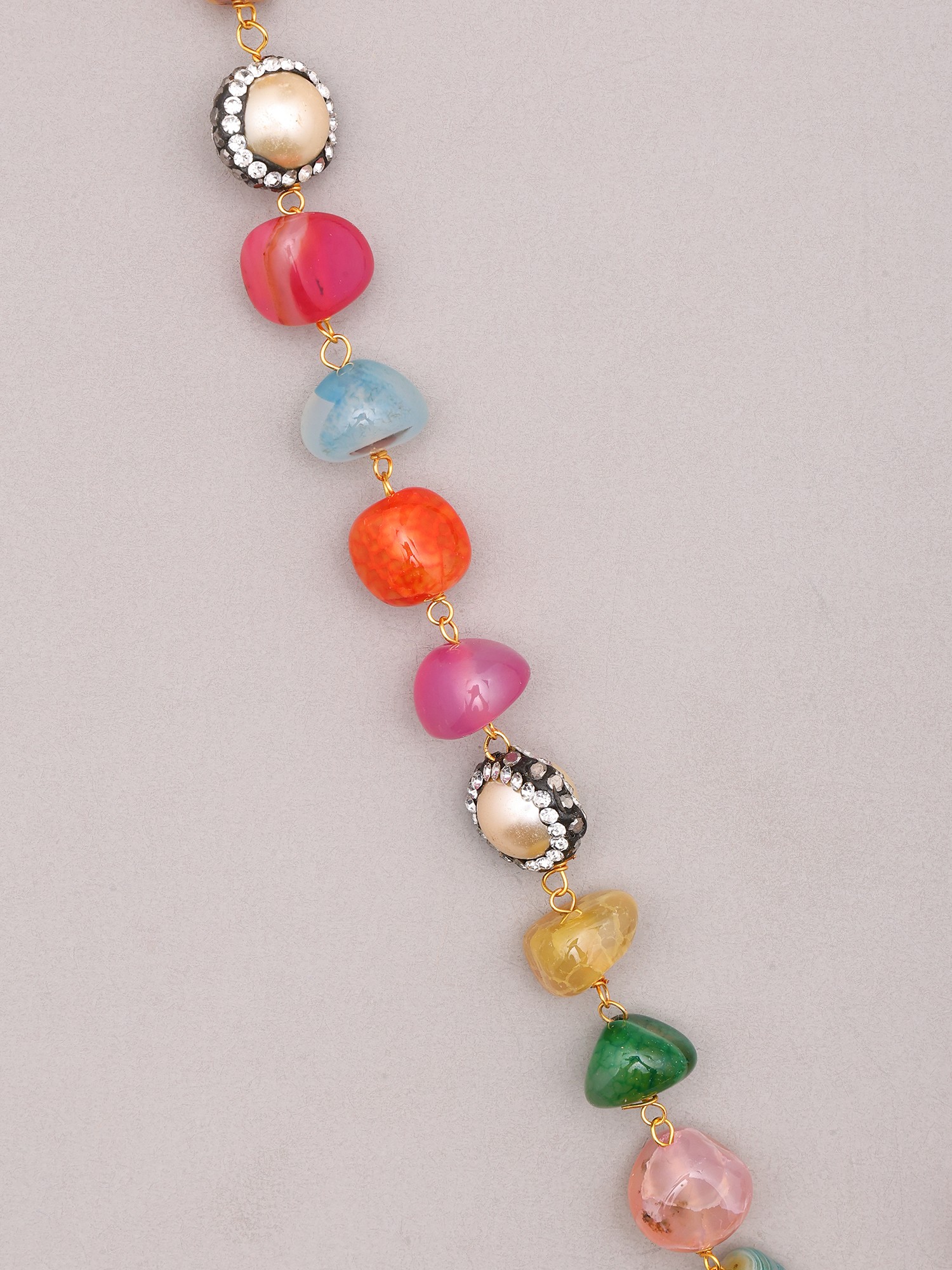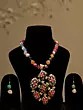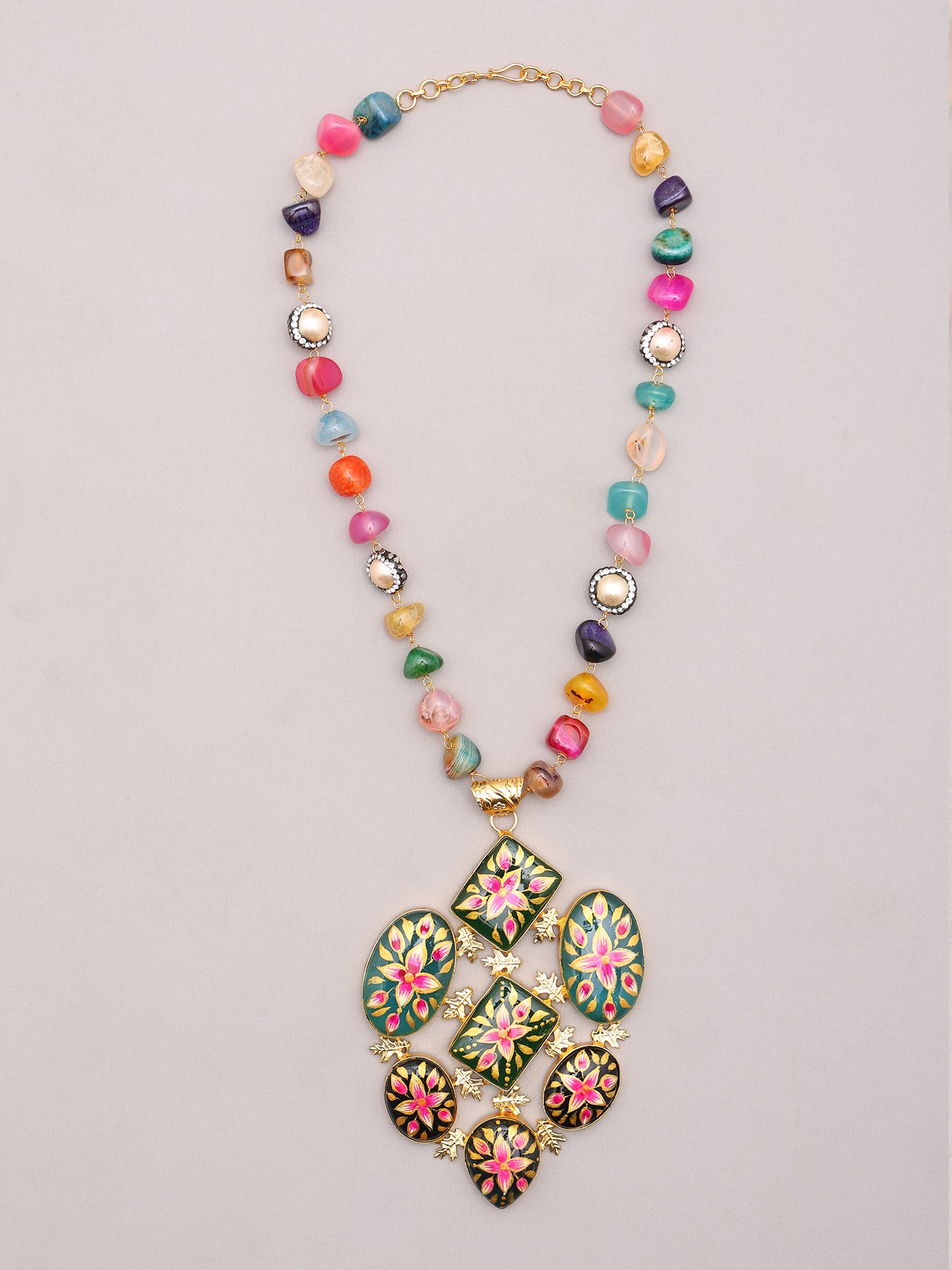 Multicolor Stone Beaded Necklace Set with Floral Enamel Pendant and Earrings