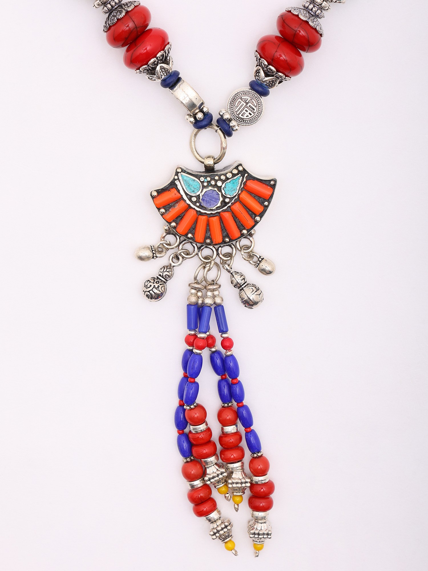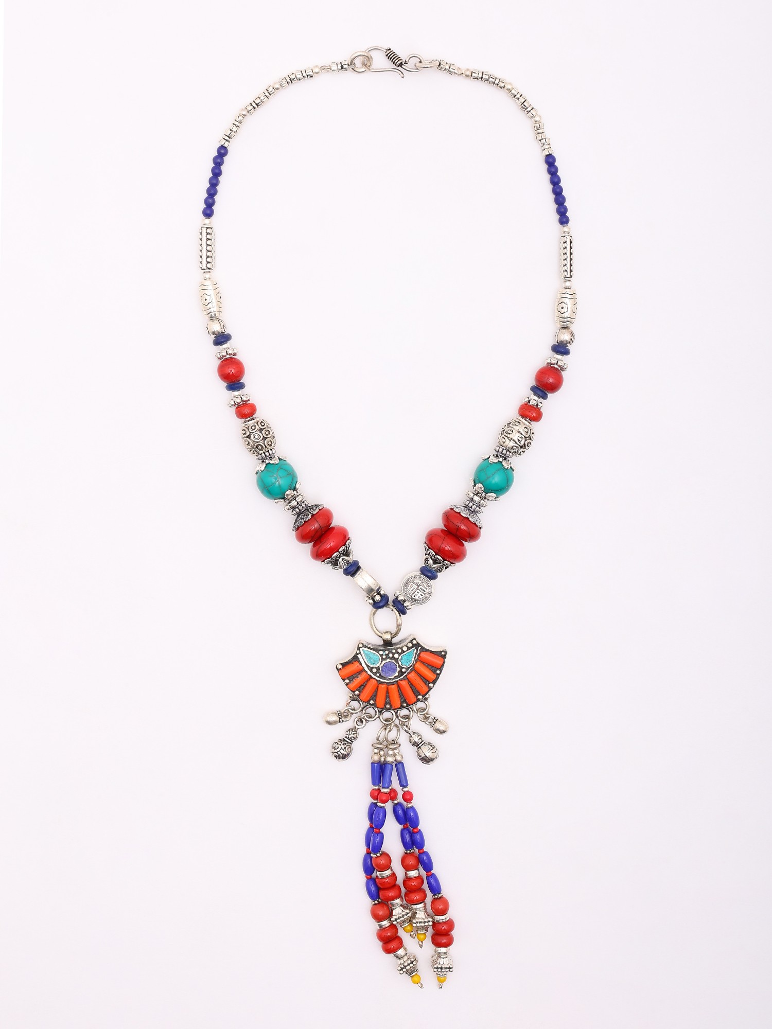 Tibetan Tribal Style Multi Stone Beaded Long Necklace