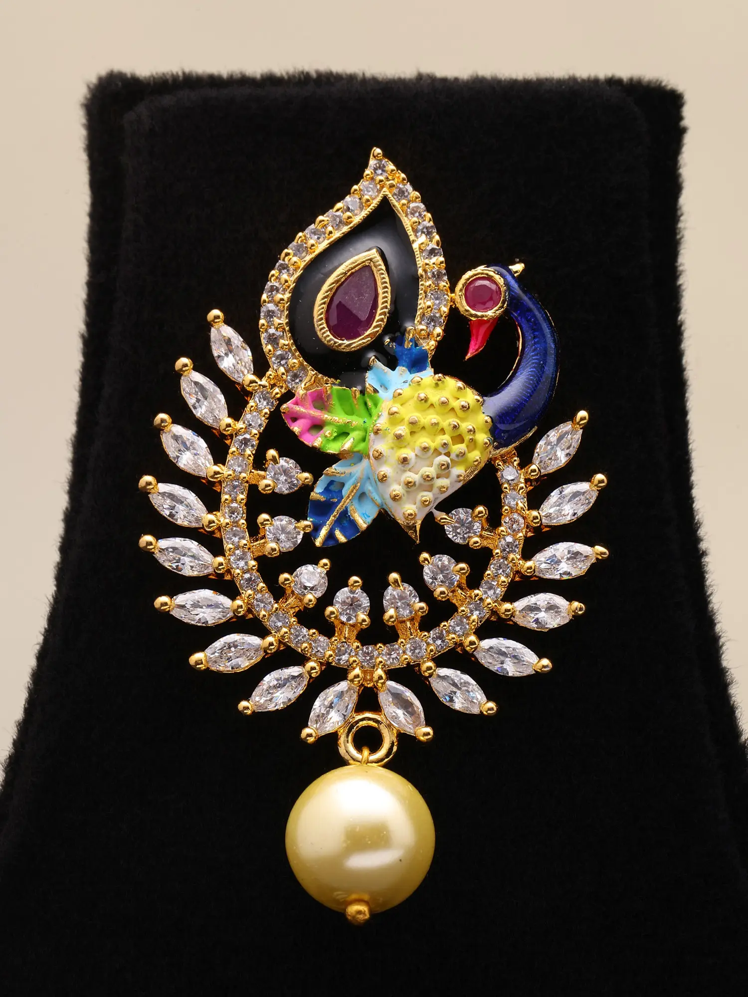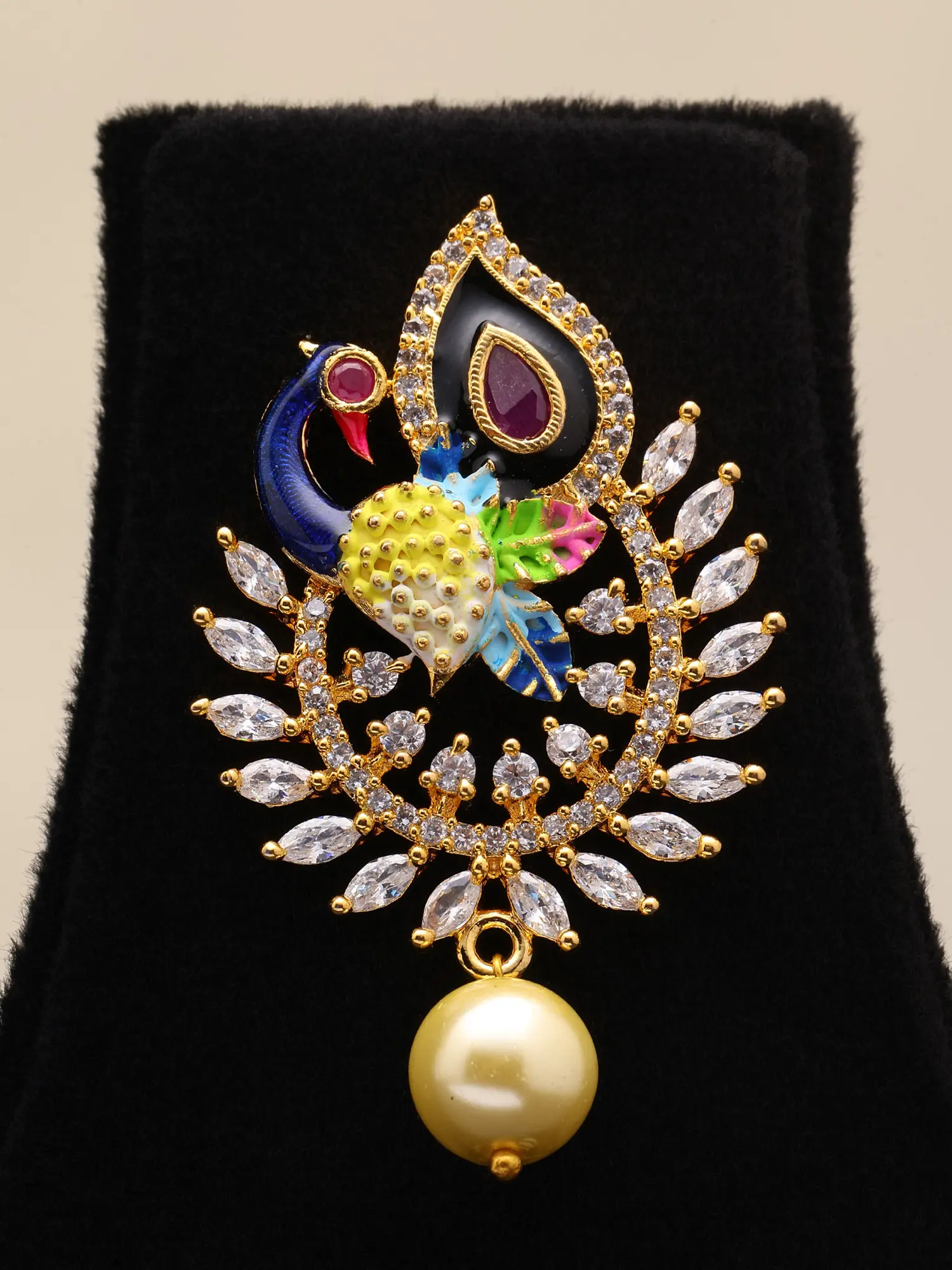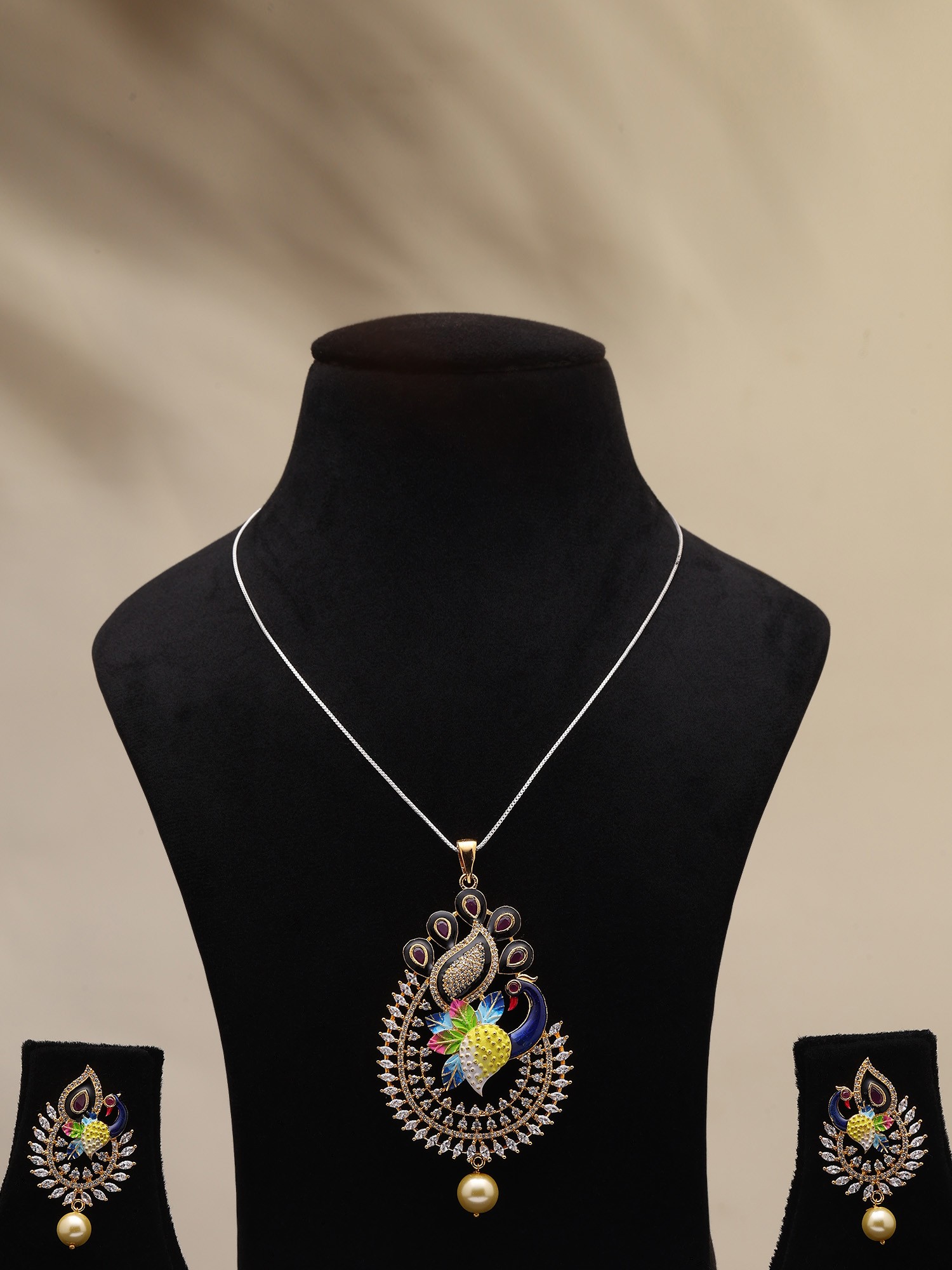 Attractive Kundan Studded Necklace Set With Peacock Pendant And Earrings