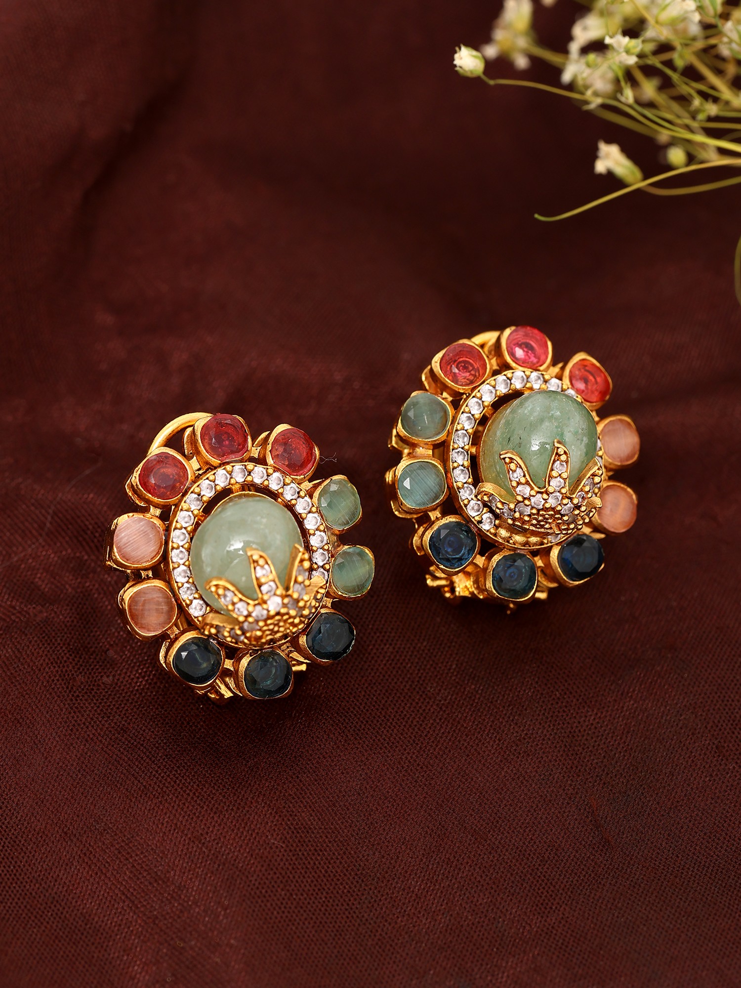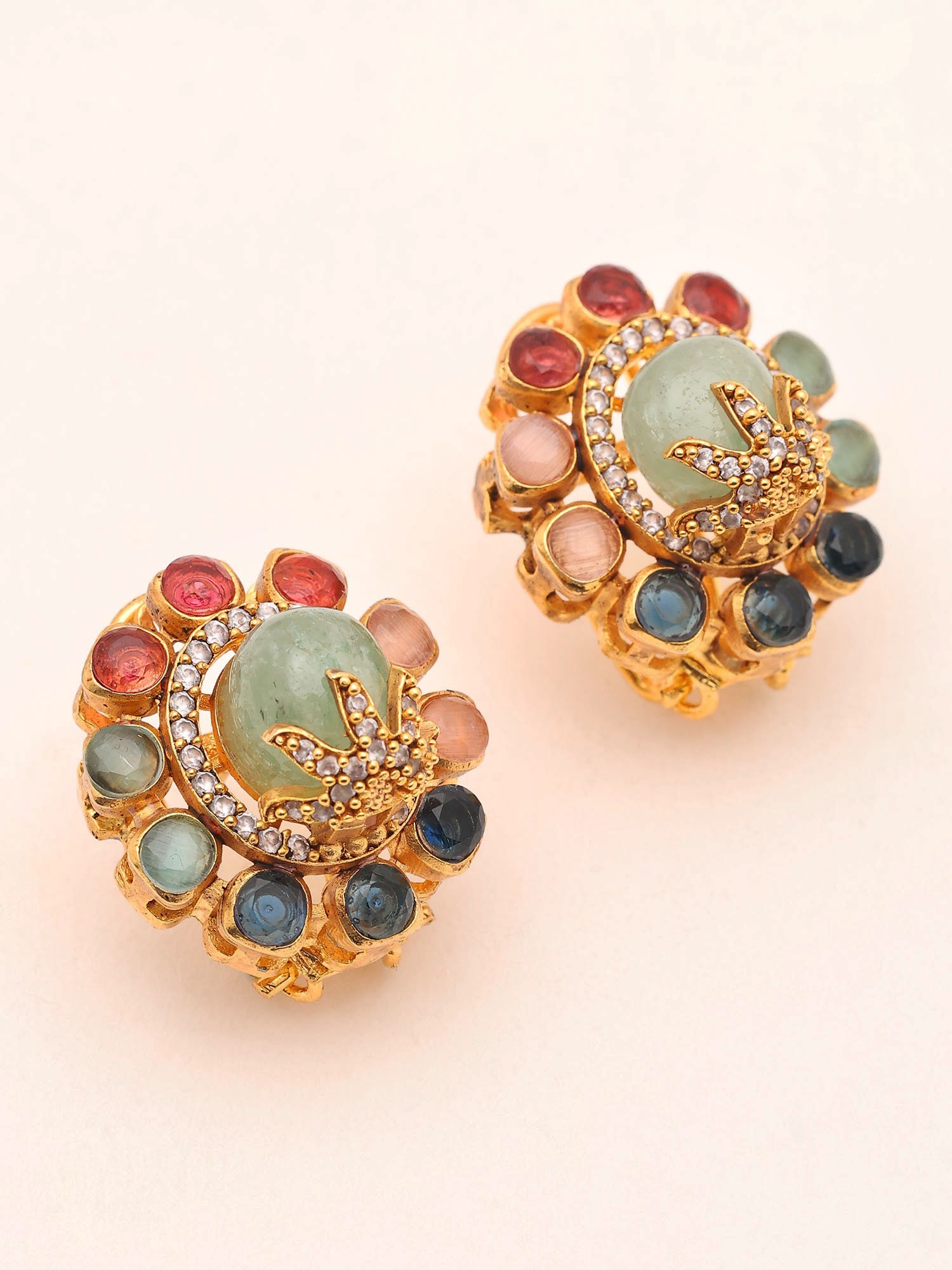 Multicolor Stone Studded Designer Necklace and Earrings Set