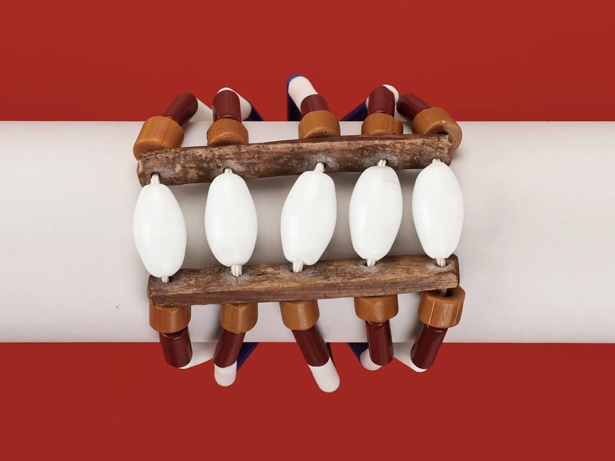 The design features a captivating array of beads, meticulously arranged to create a visually stunning pattern. The bracelet incorporates a variety of shapes and textures, from smooth, oval beads to cylindrical shapes, creating a dynamic and engaging aesthetic. The bracelet's construction showcases a blend of natural and refined materials. The combination of contrasting colors and finishes adds depth and dimension to the piece, making it a truly eye-catching accessory. The sturdy structure of the bracelet ensures both comfort and durability.